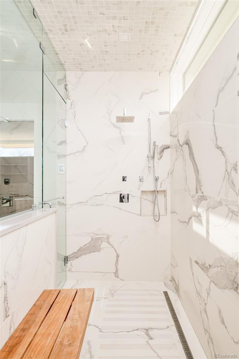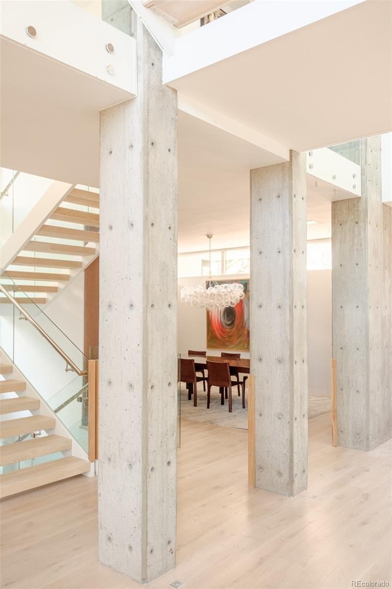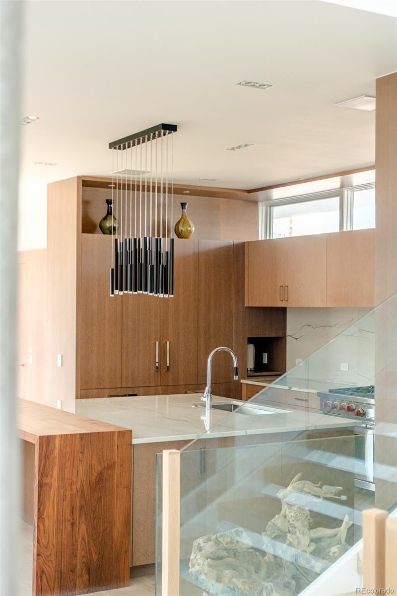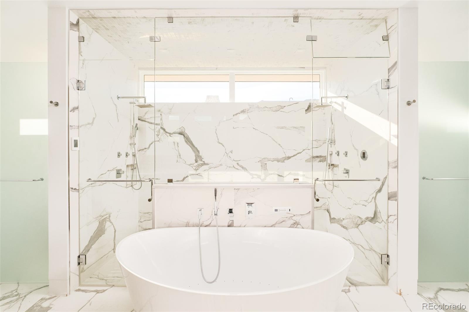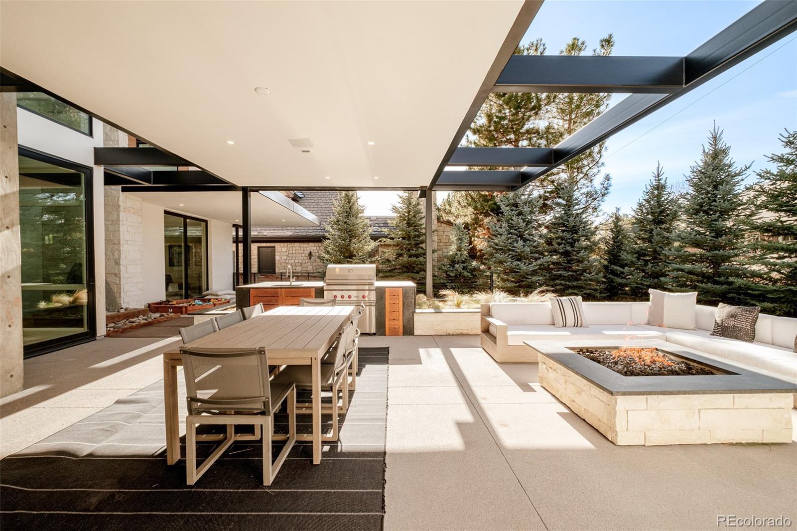 An exceptional modern residence in Denver’s coveted Hilltop neighborhood, this architecturally striking home offers over 10,000 square feet of refined living defined by volume, light, and intentional design. Created by Nest Architectural Design, the home is anchored by soaring glass walls, exposed concrete, and a dramatic central atrium with suspended bridges that connect two private wings. The main level is designed for effortless entertaining, featuring expansive open living and dining spaces, a statement chef’s kitchen with premium integrated appliances, generous pantry, and seamless indoor-outdoor flow to a resort-style terrace. A serene main-level primary suite opens directly to the backyard and includes a spa-inspired bath with heated floors. A second primary suite on the upper level offers the same level of privacy and luxury, perfect for hosting guests. Above, a glass-enclosed retreat includes a private office, living area, kitchenette, and an expansive terrace with sweeping mountain and neighborhood views—ideal for entertaining or quiet retreat. The finished lower level extends the living experience with multiple guest suites, a full home theater with Dolby Atmos, fitness room, wine room, and flexible recreation spaces filled with natural light. Outdoors, layered terraces, an outdoor kitchen, fire features, and thoughtfully designed landscaping create a private urban oasis with pool-ready infrastructure. Completing the home are a Crestron smart home system, two elevators, radiant-heated baths, and a heated three-car garage and driveway. Bold, sculptural, and impeccably executed, this is a rare offering for those seeking modern design without compromise.