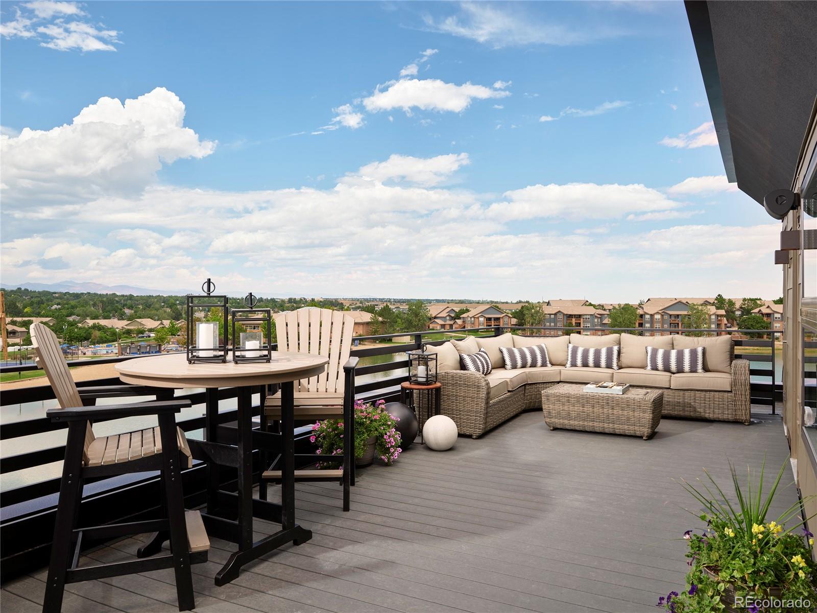 Welcome to Montmere at Autrey Shores, where elevated design meets exclusive waterfront living framed by breathtaking mountain views. This Suncrest B plan model home offers refined townhome living in the sunny and sought after town of Superior. Offered fully furnished and loaded with designer upgrades, this residence delivers exceptional functionality and style across every level.The entry level features a versatile flex space ideal for a home office, media room, or guest retreat, enhanced by inspiring views of the mountains and Autrey Reservoir. Enjoy the convenience of both a private elevator and stairs leading to the main living level, where a show stopping chef’s kitchen takes center stage. Highlights include a dramatic ten foot quartz waterfall island, built in cooktop with hooded vent, double ovens, and generous seating, perfect for entertaining and everyday living. The open concept living area is anchored by a gas fireplace with an elegant dark tile surround and showcases the home’s signature water and mountain views. A spacious dining area with distinctive ceiling and wall details completes this inviting space for gatherings.The third level is dedicated to rest and retreat, featuring a generously sized primary suite with a striking shiplap accent wall, five piece spa inspired bath, upgraded built in closet storage, and sweeping views of the water and mountains. Guests will appreciate the thoughtfully designed secondary bedroom options, offering both plush carpeted comfort or hardwood flooring with a unique designer wall feature.Enjoy one of a kind water and mountain views from the living room, primary suite, and rooftop deck. Ideally located within walking distance to the Broomfield Outlets, Flatiron Crossing Mall, Life Time Fitness, dining, and entertainment. Downtown Superior is just seven minutes away and features Target, Costco, Whole Foods, and more. This exceptional home delivers the perfect balance of luxury, convenience, and Colorado lifestyle living.