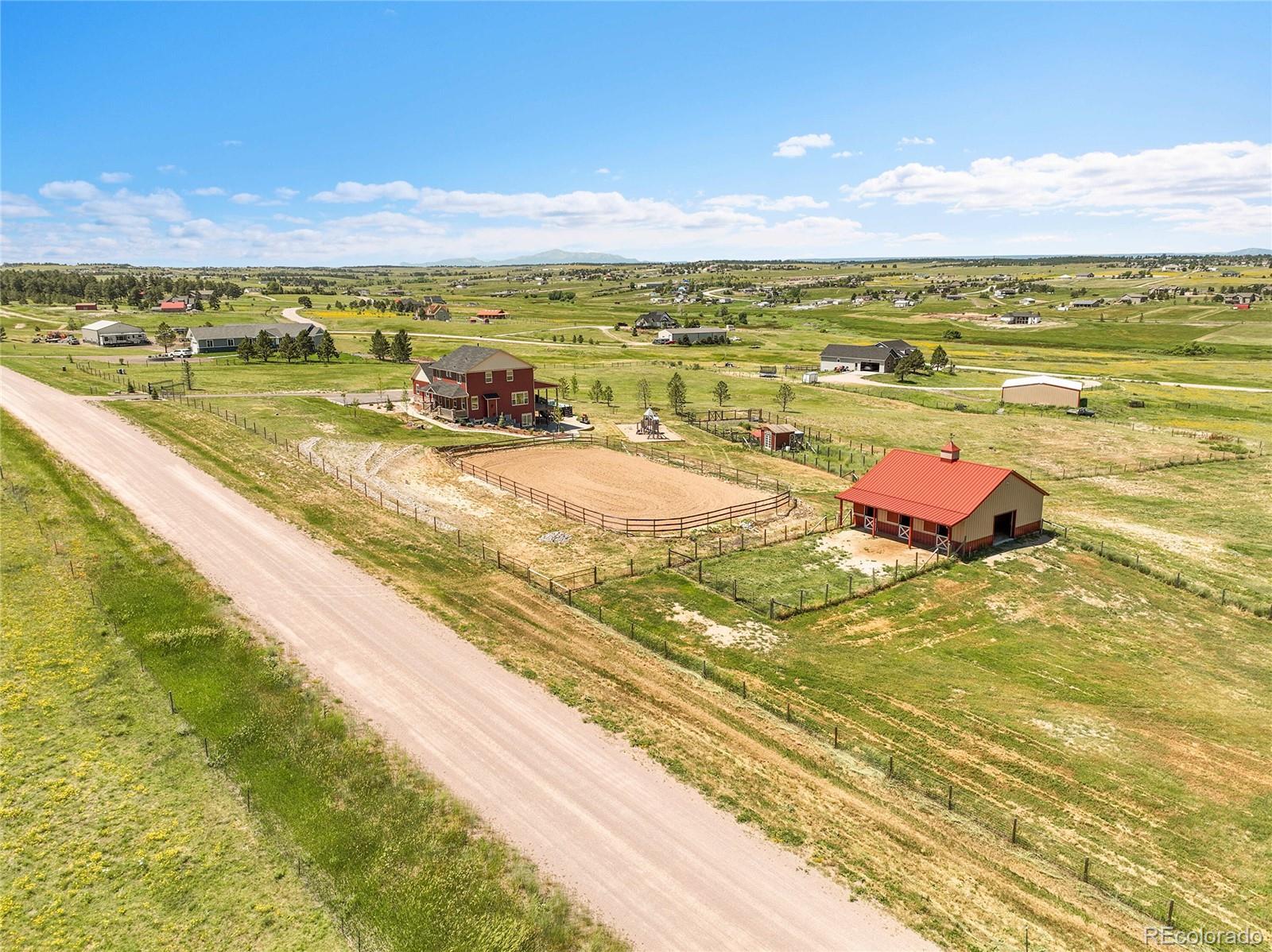 Spacious Horse Property on 10+ Acres with Stunning Views! Enjoy the best of Colorado country living in this beautiful 10+ acre property with unbeatable mountain views. Designed for comfort and convenience, this horse property has everything you need, from open living spaces to great outdoor features. Inside, you'll find hickory wood floors throughout the main level, leading to an updated kitchen with big windows overlooking the property. The living room features a cozy gas fireplace and custom built-ins. A main-floor bedroom can be used as a guest room or office. Upstairs, the primary suite includes a walk-in closet, 5-piece bath, and a reading nook. Two more bedrooms offer plenty of space, all with great views. The finished walk-out basement features a separate studio apartment with a kitchenette, fireplace, full bath, washer/dryer (included), and French doors to the backyard—perfect for guests or multigenerational living. If you love horses, you’ll appreciate the 3-stall Morton barn with water, electricity, a tack room, and a feed room, plus two fenced pastures and a 66' x 132' outdoor riding arena visible from the house. Outside, enjoy a covered Trex deck, a stamped concrete patio with a fire pit, and natural gas hookups throughout (no propane needed!). A fenced garden with a chicken coop and rabbit hutch is perfect for hobby farming, and the 10x12 multipurpose shed is great for a green house, extra storage or animals. Other Features: - No HOA or covenants – Horses & 4-H welcome! - Smart Home features – Keyless entry, Nest CO/smoke alarms & security cameras - Infinity swim spa & large playground - Landscaped yard with sprinkler & drip irrigation - Great location – just off Hwy 86, 10 minutes to Kiowa, Elizabeth & shopping - Fast internet & close to Elizabeth schools This property is ready to go—just move in and enjoy! https://justpendeddenver.hd.pics/34698-Southern-Cross-Loop-1