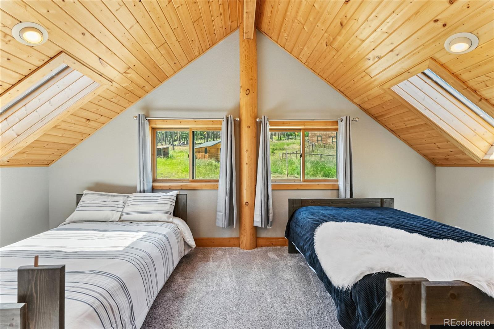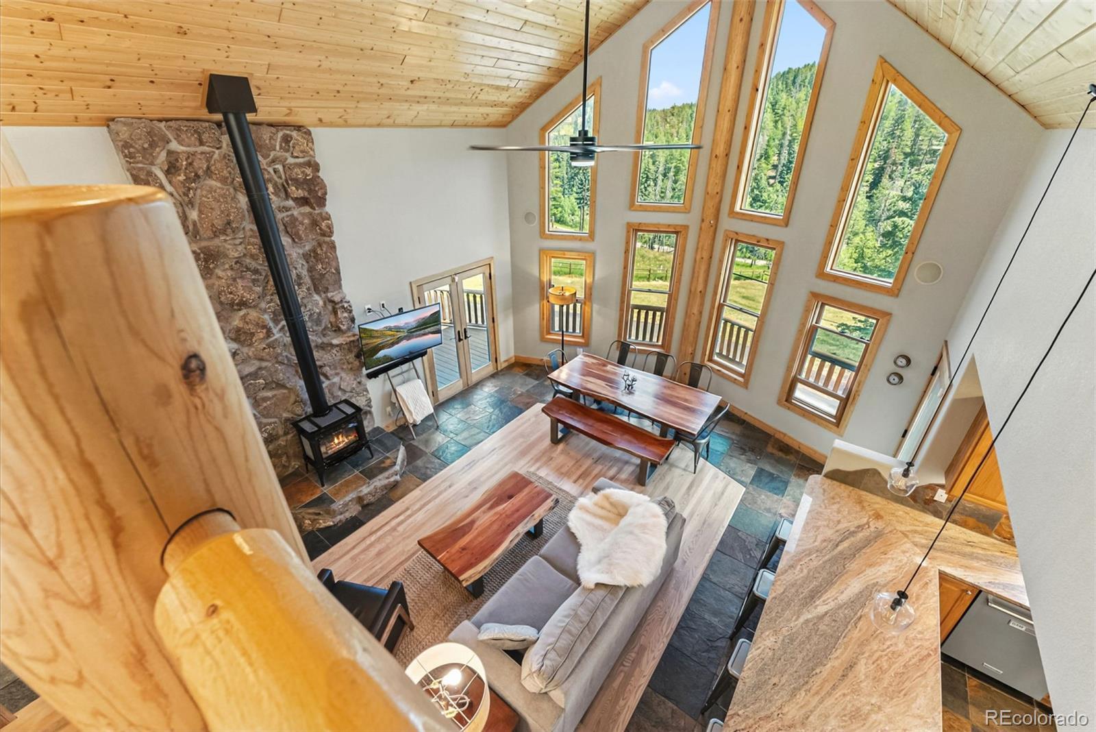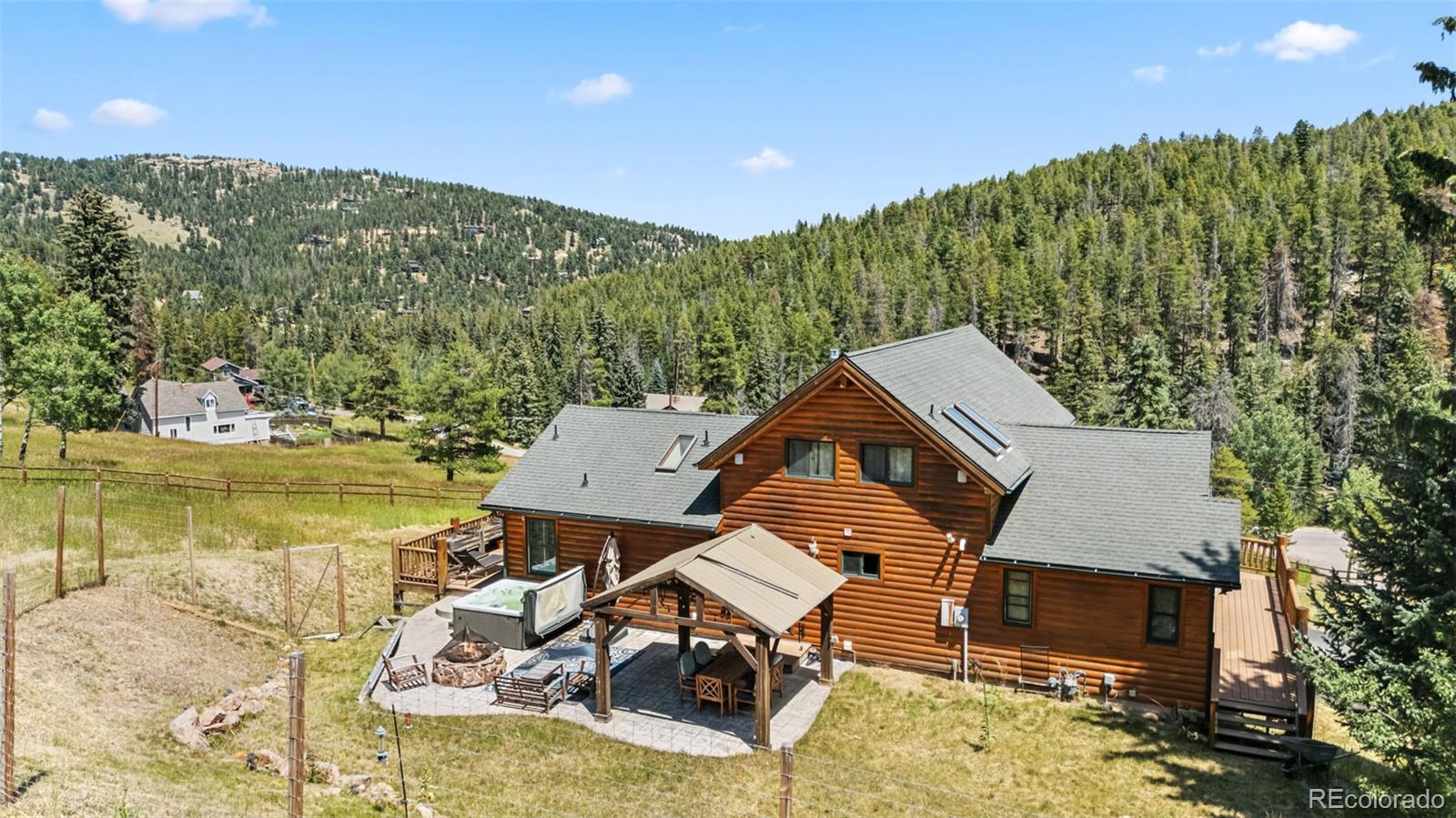 Welcome to your dream mountain retreat in the highly desirable Brook Forest neighborhood! Set on 2 beautiful acres and just a short walk to Cub Creek and the Maxwell Falls trailheads, this animal-friendly 3-bedroom + loft furnished home offers the perfect blend of nature, comfort, and convenience. Step inside to find a warm, updated interior featuring oak hardwood floors, vaulted ceilings, and a cozy gas fireplace. The gourmet kitchen is equipped with stainless steel KitchenAid appliances, oversized granite countertops, and plenty of space for entertaining. Relax outdoors on the expansive wrap-around deck with stunning views in every direction, or soak in the private hot tub under the stars. The gated property includes grassy front yard—perfect for pets or play—and a super sunny driveway that easily accommodates trailers and ATVs. The landscaped grounds are adorned with hundreds of tulips, daffodils, and roses, creating vibrant seasonal color. In the back, you'll find an animal barn with 3–4 pens and hay storage—ideal for those looking to keep a horse or two, goats, or other livestock. Zoned A-2 with a domestic well and septic system and no HOA, this property offers true freedom and flexibility. Whether you're seeking a full-time family home with room for animals, or a turn key short-term rental mountain getaway just 15 minutes from downtown Evergreen, this home checks every box.