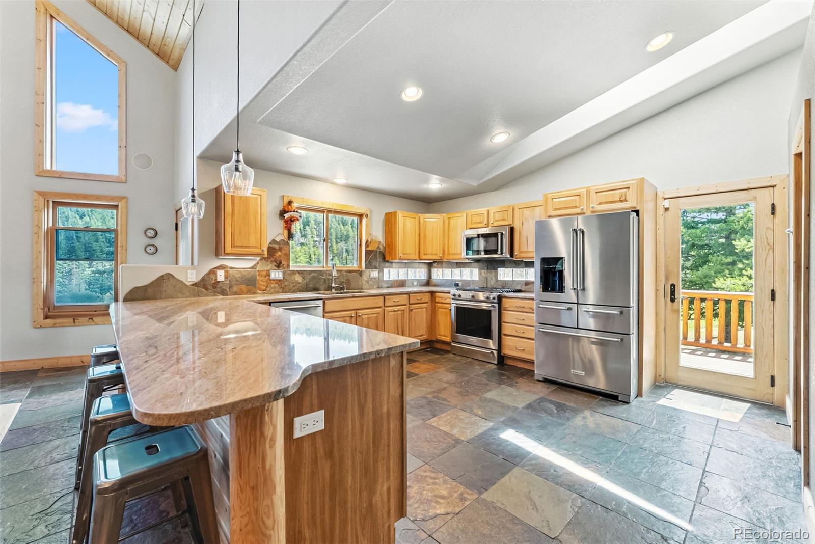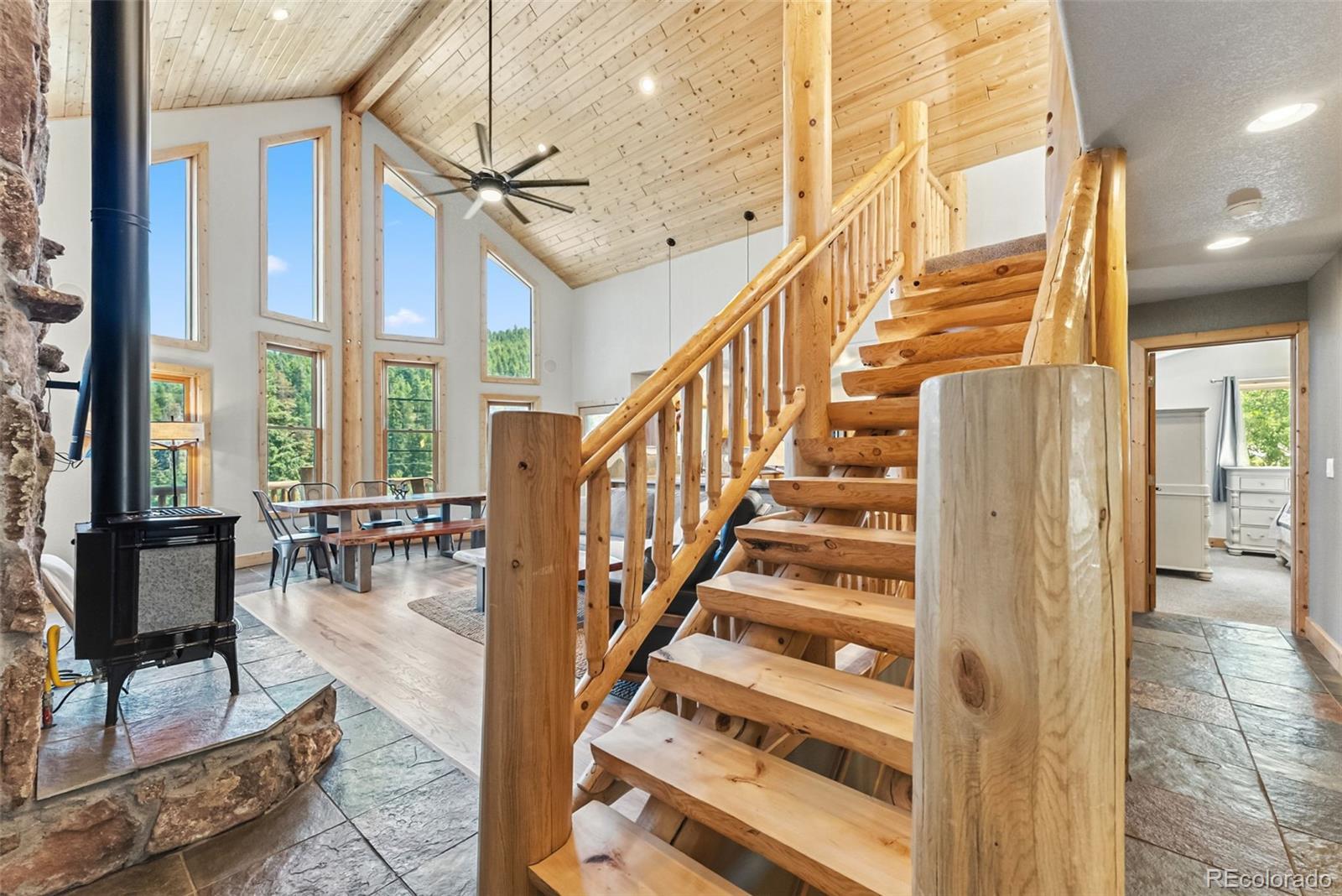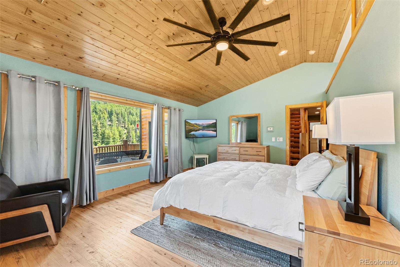 Welcome to your dream mountain retreat in the highly desirable Brook Forest neighborhood! Set on 2 beautiful acres and just a short walk to Cub Creek and the Maxwell Falls trailheads, this animal-friendly 3-bedroom + loft furnished home offers the perfect blend of nature, comfort, and convenience. Step inside to find a warm, updated interior featuring oak hardwood floors, vaulted ceilings, and a cozy gas fireplace. The gourmet kitchen is equipped with stainless steel KitchenAid appliances, oversized granite countertops, and plenty of space for entertaining. Relax outdoors on the expansive wrap-around deck with stunning views in every direction, or soak in the private hot tub under the stars. The gated property includes grassy front yard—perfect for pets or play—and a super sunny driveway that easily accommodates trailers and ATVs. The landscaped grounds are adorned with hundreds of tulips, daffodils, and roses, creating vibrant seasonal color. In the back, you'll find an animal barn with 3–4 pens and hay storage—ideal for those looking to keep a horse or two, goats, or other livestock. Zoned A-2 with a domestic well and septic system and no HOA, this property offers true freedom and flexibility. Whether you're seeking a full-time family home with room for animals, or a turn key short-term rental mountain getaway just 15 minutes from downtown Evergreen, this home checks every box.