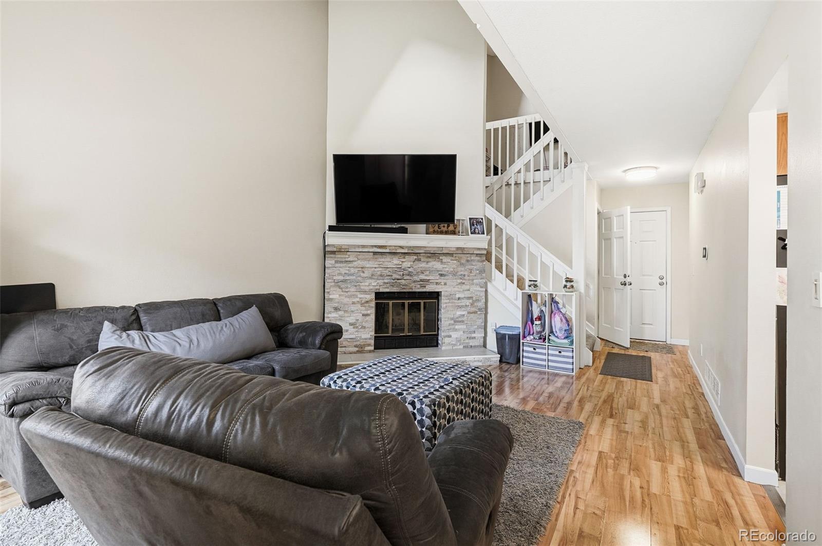 Welcome home to this beautifully updated townhome offering the perfect blend of modern style, generous space, and peaceful privacy in the Cherry Creek School District, one of Colorado's most desirable. Step through the inviting entry into a bright, airy main living area where soaring high ceilings create an impressive sense of openness. Along the vaulted ceiling, the skylight pours in abundant natural daylight, while a handsome stone fireplace serves as the warm, elegant focal point of the open-concept layout—ideal for cozy family evenings or effortless entertaining with friends. The kitchen impresses with sleek quartz countertops, a stylish undermount sink, and fresh contemporary cabinetry paired with crisp, modern finishes. Whether you’re preparing quick weekday meals or hosting weekend gatherings, this space delivers both beauty and function. Retreat upstairs to generously sized bedrooms designed for comfort and flexibility. The primary suite offers a serene, light-filled sanctuary to unwind, while the additional bedroom provides ample room and versatile use, perfect as a guest room, home office, or personal retreat. Downstairs, an unfinished basement featuring an egress window awaits your personal touch. Easily transform this blank canvas into additional bedrooms, a dedicated home office, media room, recreation area, or whatever fits your lifestyle best. Residents enjoy fantastic community amenities, including two sparkling swimming pools (one with a shallow baby pool perfect for little ones) and two tennis courts for year-round recreation and relaxation. This prime location puts you just minutes from the Denver Tech Center (DTC), scenic Cherry Creek Reservoir, miles of greenbelts and trails, beautiful parks, top-tier shopping, and Denver’s finest dining destinations—everything you need is right at your fingertips. Schedule your private showing today and make this wonderful townhome yours.
