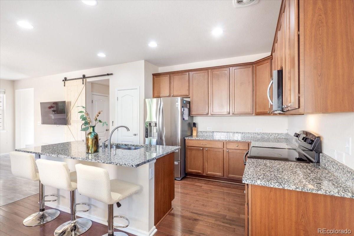 This move-in ready Aurora home in the sought-after Copperleaf community offers a perfect blend of comfort, function, and convenience. The open-concept layout is filled with natural light and features a kitchen island, granite countertops, stainless steel appliances, newer water-resistant laminate flooring, and beautiful hardwood floors in the kitchen. A stylish custom barn door separates the living room and kitchen area from the hallway to the garage, adding both charm and privacy to the main level. The living room also features a cozy fireplace, creating a warm and inviting centerpiece for gatherings and relaxation. Upstairs, you’ll find a spacious primary suite with a large walk-in closet, a 2nd bedroom with its own walk-in, a 3rd bedroom, an upstairs laundry, and a large loft that can be used as an office, playroom, gym, or additional living space. The fully finished basement provides incredible versatility with a kitchenette setup that includes cabinets, a sink, microwave, and dishwasher, along with laundry hook-ups. Complete with it's own living space, a space to use as a kitchen, laundry hook ups, a bedroom, and a full bathroom, it’s ideal for a mother-in-law suite or a rental unit—just add a fridge and cooktop! Recent updates include a new roof (2024), exterior paint (2023), upstairs carpet (2024), new washer (2024), new carpet in the basement (2025), a whole-house fan, and a new deck with pergola (2023). The deck offers added privacy with blinds and is a perfect spot to relax or entertain. Copperleaf is a wonderful community with a clubhouse, pool, baskeball court, and parks. It’s conveniently located within the Cherry Creek School District, close to Southlands shopping and dining, Quincy Reservoir, and several parks & trails. Commuting is easy with quick access to E-470, just 20 minutes to DTC or DIA and about 30 mins to Downtown Denver. *THIS PROPERTY QUALIFIES FOR A FREE 1 YEAR 1% BUYDOWN THROUGH PREFERRED LENDER. CONTACT AGENT FOR DETAILS*