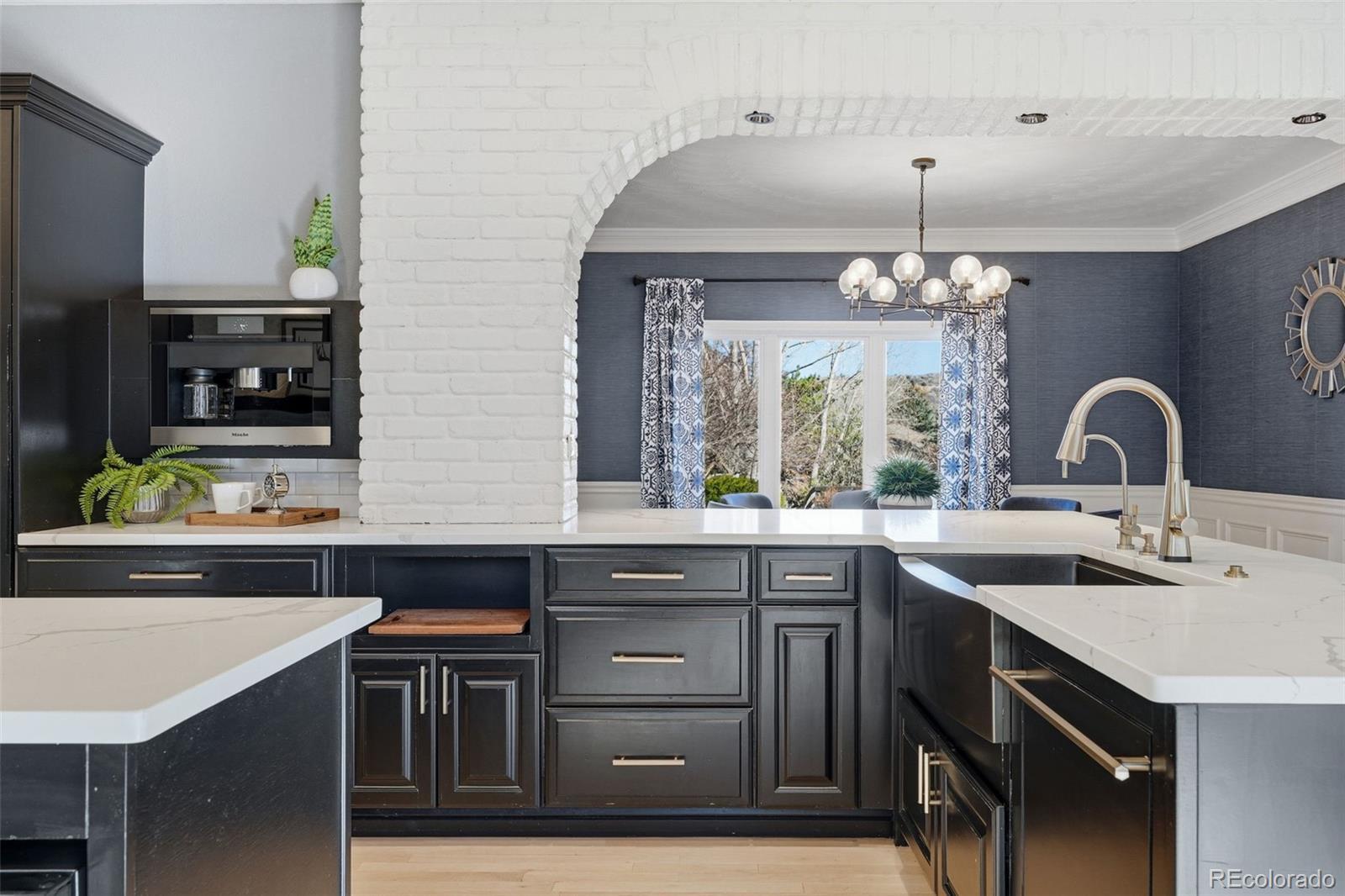 Experience the pinnacle of Ken Caryl living in this stunning brick Tudor, perfectly positioned on an oversized corner lot in the prestigious North Ranch neighborhood. Situated on a quiet, low-traffic street just steps from Bradford Park, pools, and tennis, this ~5,400 sq. ft. residence seamlessly blends classic elegance with modern functionality. Step through the welcoming foyer with its signature curved staircase into a home defined by newer oak hardwoods and a crisp, neutral palette. The layout offers effortless flow between the formal living and dining rooms, a dedicated private office with custom built-ins, and a soaring family room anchored by a floor-to-ceiling brick fireplace. The gourmet kitchen features premium Thermador appliances, a built-in Miele espresso station, a central island with seating, and a walk-in pantry. Whether hosting a dinner party or a casual breakfast in the sun-drenched dining room, this space delivers. Upstairs, the primary suite includes a five-piece bath with soaking tub, shower, and generous storage. Three additional bedrooms offer ample space for desks and storage. A separate bonus room over the garage includes its own private staircase and full bath, making it well-suited for an additional bedroom, a playroom, exercise space, or multi-generational living. Enjoy mountain views from your spacious backyard, complete with a new fire pit for enjoying Colorado evenings or enjoy the sunrise from the covered front porch. The coveted south-facing driveway ensures easy winters, while the 3-car garage and large unfinished basement provide limitless storage. Unrivaled community amenities include 45+ miles of private trails, equestrian facilities, and award-winning schools. From sunset hikes on private trails to morning coffee with mountain views, this North Ranch gem offers more than just a home—it offers the quintessential Ken Caryl lifestyle. Don’t miss your chance to own in one of Colorado’s premier foothill communities.
