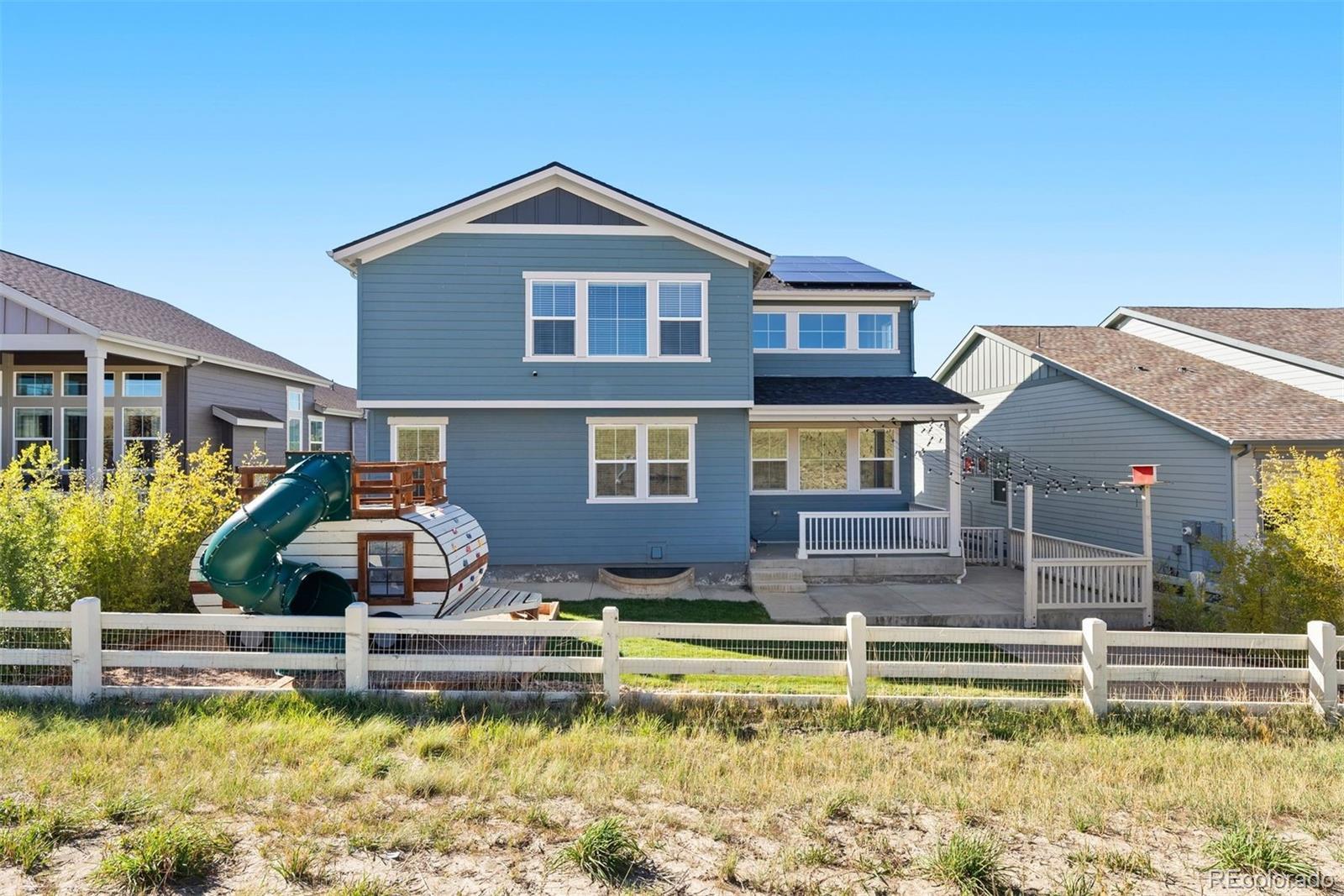 This 4 bed, 4 bath Southshore home has it all: open floor plan, 3-car garage, and two main-floor offices. The chef’s kitchen features quartz countertops, a large island, and stainless steel appliances. It is equally suited for culinary creativity or quiet evenings in, with ample counter space and a functional layout that makes cooking a joy. Move seamlessly from the kitchen into a bright family room with soaring two-story ceilings and cozy fireplace. Two rooms on the main floor are perfect for offices, but the opportunities are endless! Upstairs, the luxurious primary suite offers serene views of the open space. In the primary bath, you will find dual walk-in closets and a five-piece bath with modern finishes. Completing the second floor are three additional bedrooms, two bathrooms, and laundry room. With an unfinished basement full of potential and a private backyard backing to open space, this home is perfect for entertaining and everyday living. Just beyond the open space behind the home, you’ll find a recently updated dog park and playground—perfect for outdoor fun and community connection. In the winter months, the open area transforms into a favorite neighborhood sledding hill, offering year-round enjoyment right outside your door. Enjoy the best of modern sustainability with fully owned Namaste solar panels, UV coated windows, a built-in EV charging plug in the garage. Enjoy all that Southshore has to offer, including two clubhouses, trails, and easy access to Aurora Reservoir. Don’t miss this one—schedule your showing today!
