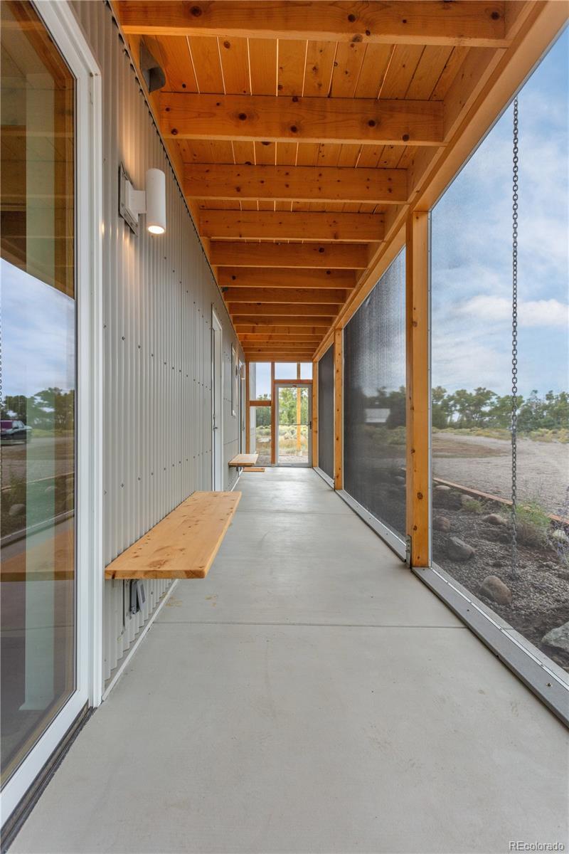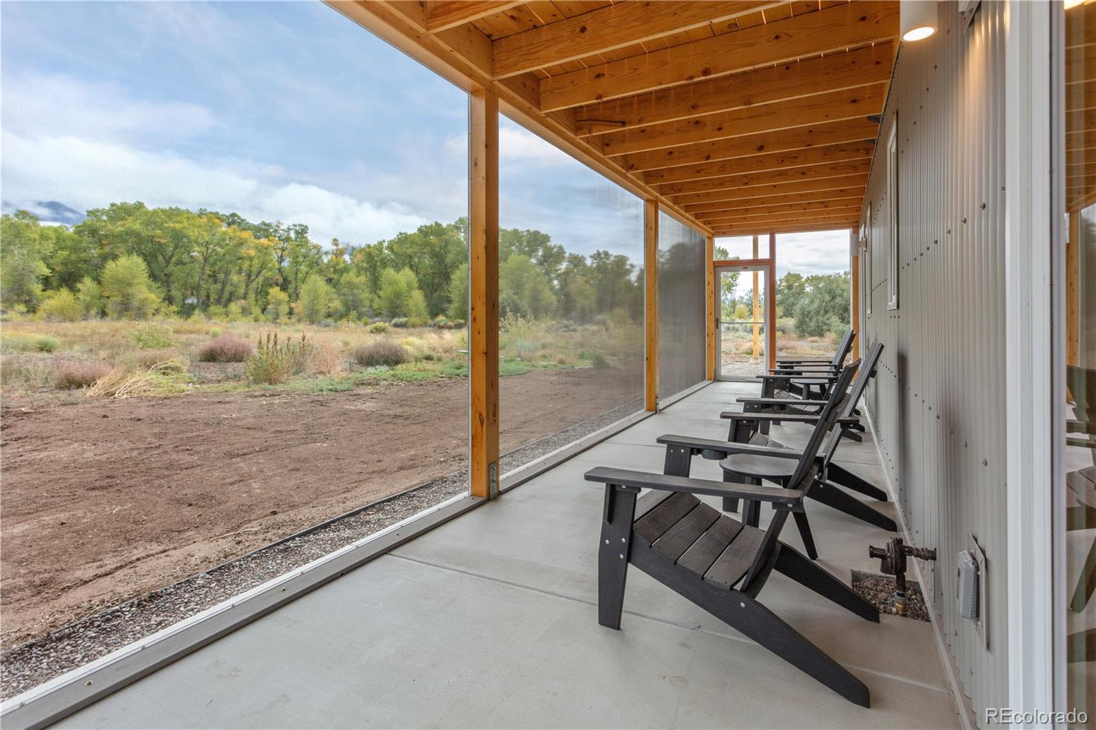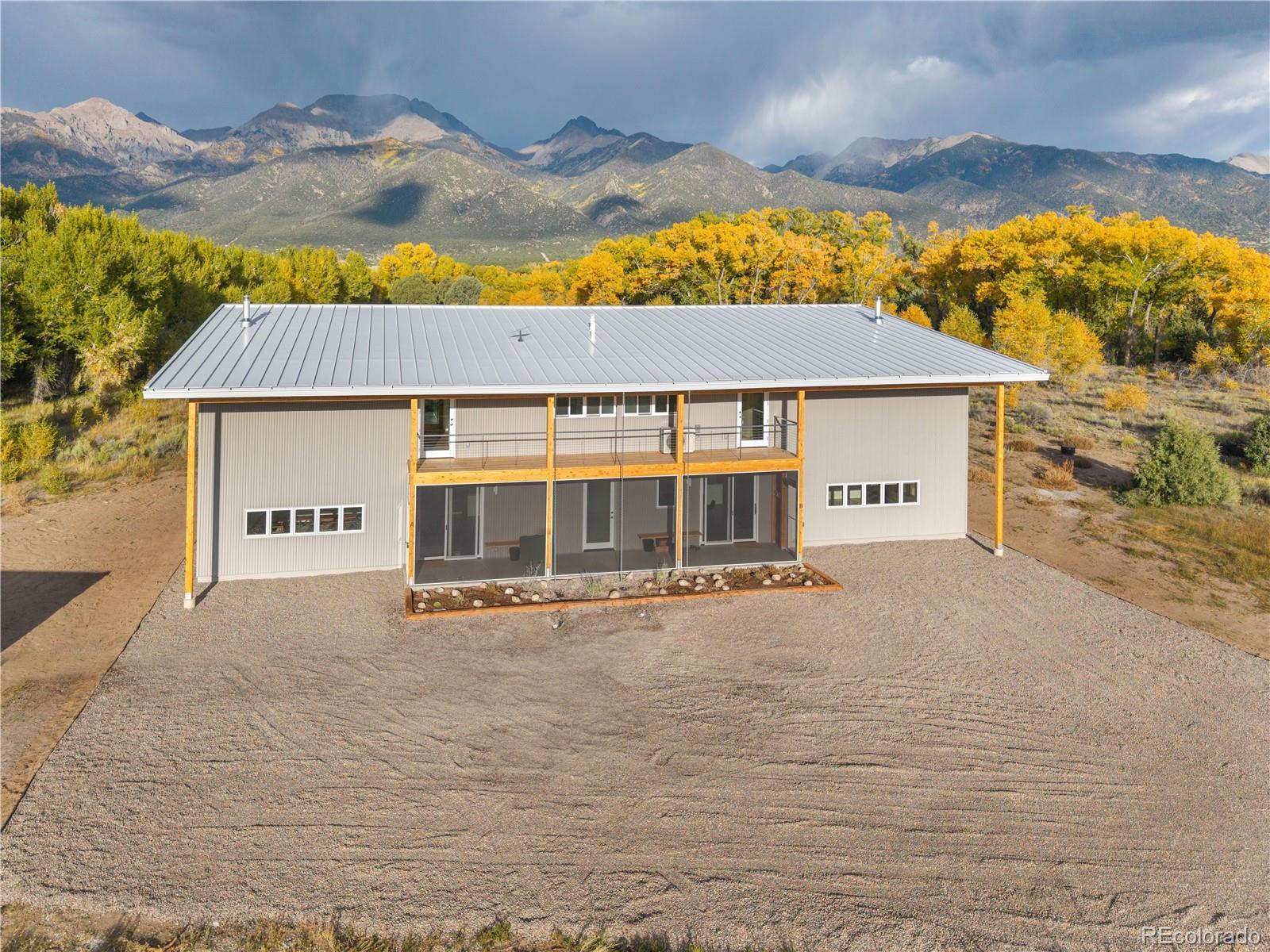 Modern Minimalist Mountain Retreat located in Crestone. Set on a quiet and private 1.64-acre lot backing to seasonal Spanish Creek, this exceptional residence offers a rare blend of luxury design, energy efficiency, and awe-inspiring mountain scenery. Designed as a dual-unit concept, this property is ideal for multi-generational living or investors seeking flexibility and income potential. Both enjoy unobstructed views of three fourteeners and a site orientation that floods the interiors with natural light. Unit 1 has 1,000 sq. ft. with a sleek kitchen design and large dining area. Upstairs, is a lofted living room, bedroom with access to both decks and full bath with an oversized soaking tub. Unit 2 has 1,350 sq. ft. with a large living room, kitchen with an island and a half bath. Upstairs includes 2 bedrooms, access to both decks and full bathroom with oversized tub. Each include a Daikin mini split for heating & cooling, radiant in-floor heat, and modern wood-burning stoves. A shared laundry room is located in a separate, lockable room between the units. Each unit has a designated hot water holding tank and separately metered electric facilitating two fully independent residences under one striking architectural form. Interior highlights include Birchwood cabinetry, high-end appliances, pull-down window shades and wood-clad Sierra Pacific windows that add to the quality of finish. Screened-in patios offer outdoor living space for all-day enjoyment. The covered decks feature Alaskan Cedar posts and decking with stainless steel railings. This home implements R-42 insulation for superior energy performance, 24-gauge fire-resistant steel roof and siding. It is wired for solar and connected to a private well and septic. Designed for durability and comfort this one-of-a-kind property combines refined modern living and resilient construction. A rare opportunity to own a turnkey property with versatility and investment appeal. Being sold furnished for added convenience.