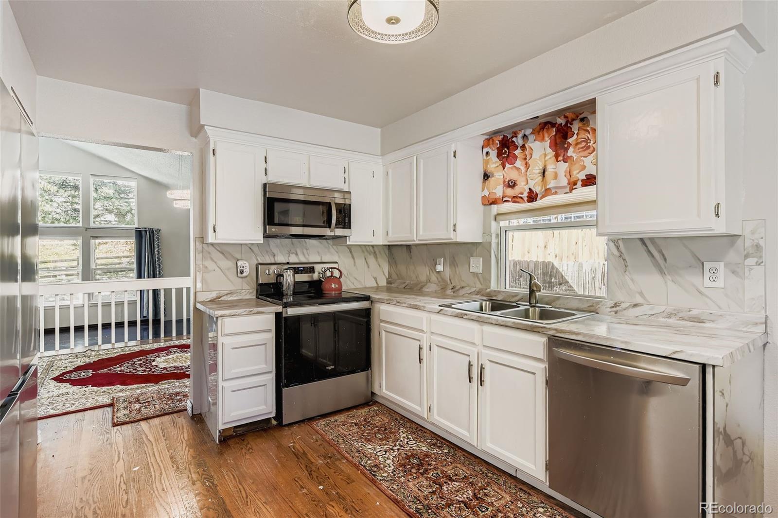 WELCOME HOME!! THIS IS KEN CARYL!! Backs to a Greenbelt!! Live the dream in this beautiful neighborhood. So much to love about this neighborhood and this home. Walk thru the entrance foyer to the sprawling Great Room, Living Room, and Dining Room. Double-sided fireplace between the Great Room and the Dining Room perfect for the Colorado chilly winter nights sure to arrive soon. Kitchen filled with new appliances, tile backsplash, and room to sit and enjoy your morning coffee looking out your large kitchen window. Three bedrooms and two bathrooms upstairs. Basement is finished and can serve as a fourth bedroom. Quite a few improvements and upgrades have been done. New roof, exterior and interior paint; windows; 50-gallon water heater; kitchen appliances; countertops; interior and exterior lights; and baseboards; just to name a few. Wood floors on the main level recently sanded. Wired for BAM Fiber Optics. You have to see this home to believe it. Mature trees have been trimmed away from the house and provide a canopy to marvel at throughout the year. Home backs to a greenbelt and the backyard beckons for you to make memories that will last a lifetime. Hard to put into words what living in the Ken Caryl area is like - just feels like home the moment you turn into the neighborhood and onto your massive tree lined street. Very dog friendly neighborhood. Enjoy all that the Ken Caryl area has to offer. Shopping; Restaurants; Parks; and Trails close by. The incredible Red Rocks Amphitheatre is only a 15-minute drive. Easy access to C-470 and Colorado's beautiful mountains on I-70. Home feeds into the highly sought after Jefferson County School District. This is the one - MUST SEE ASAP!!
