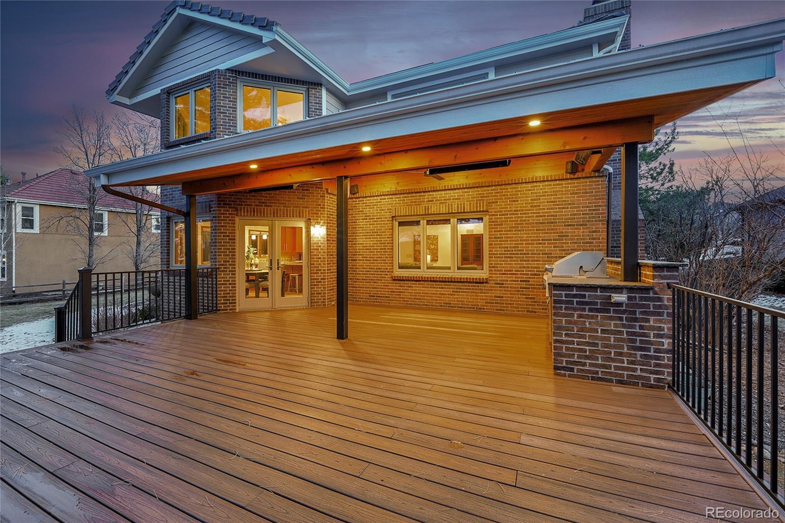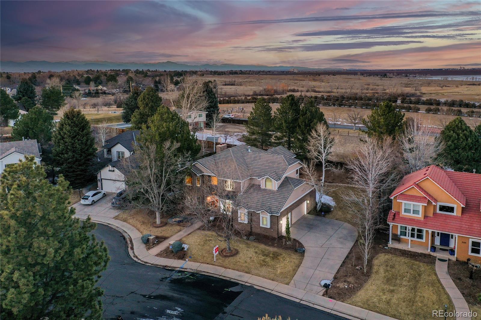*OPEN HOUSE Saturday 1/31/26 1-3 PM* Find yourself at home in this single-owner Lakeview at The Hills gem, set on a generous .31-acre lot steps from Cherry Creek State Park! This 5-bed, 5-bath home offers soaring ceilings, thoughtful updates, and an open layout designed to entertain. Inside, enter formal living and dining spaces that flow into the eat-in kitchen, where stainless-steel Wolf appliances, a Sub-Zero refrigerator, dedicated pantry, and a spacious island create a true chef’s kitchen. Enjoy casual meals in the eat-in dining space, which opens to a warm family room anchored by a gas fireplace. Just beyond, a large covered Trex deck—complete with a built-in grill and ceiling-mounted heaters – extends the living space outdoors, allowing indoor and outdoor entertaining to flow seamlessly year-round. A dedicated office with wet bar, mud and laundry room, and half-bath complete the main level. Upstairs, the airy primary suite is an enviable retreat with a bright bay window overlooking the reservoir beyond, oversized walk-in closet, and a 5-piece en suite bath with jetted tub, while a second private suite, two additional bedrooms, and a shared jack-and-jill bath offer ample space for guests. The finished basement adds versatility with a comfortable family room, bedroom, ¾ en suite bath, office nook, and an impressive 1,000 sq. ft. storage area for gear, hobbies, or long-term organization. With an EV-ready oversized three-car garage, wide driveway, whole-home humidifier, smart Rachio sprinkler system, high-end Renewal by Andersen windows and doors, new carpet, and meticulously maintained systems throughout, this home offers space, substance, and a setting that continues to stand the test of time—ready to welcome its next chapter. Centrally located just minutes from award-winning Cherry Creek Schools, Cherry Creek State Park, Denver Tech Center and only 20 minutes to downtown Denver.