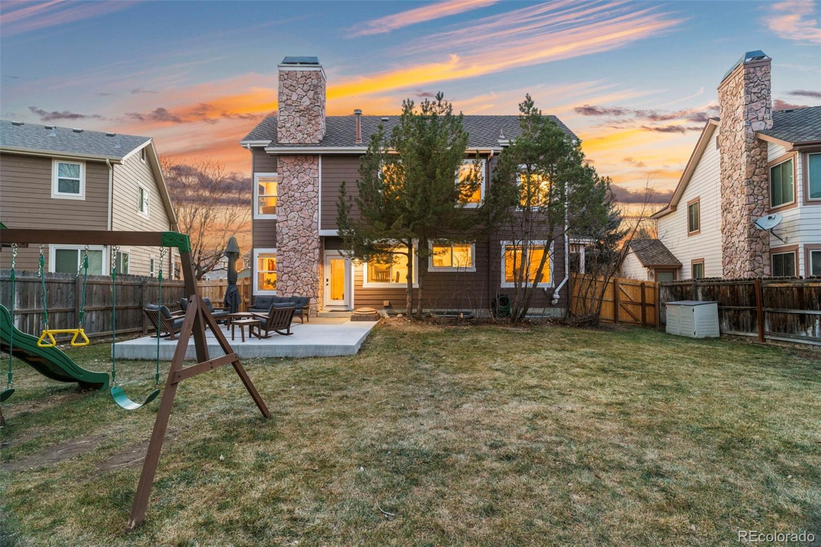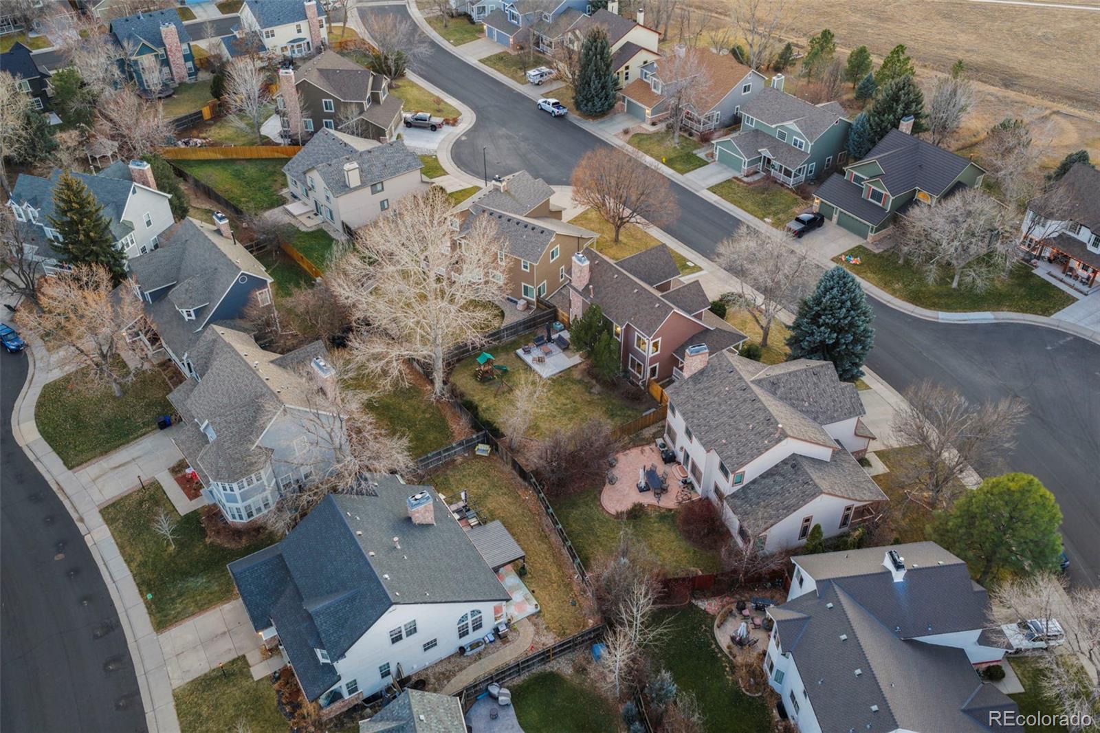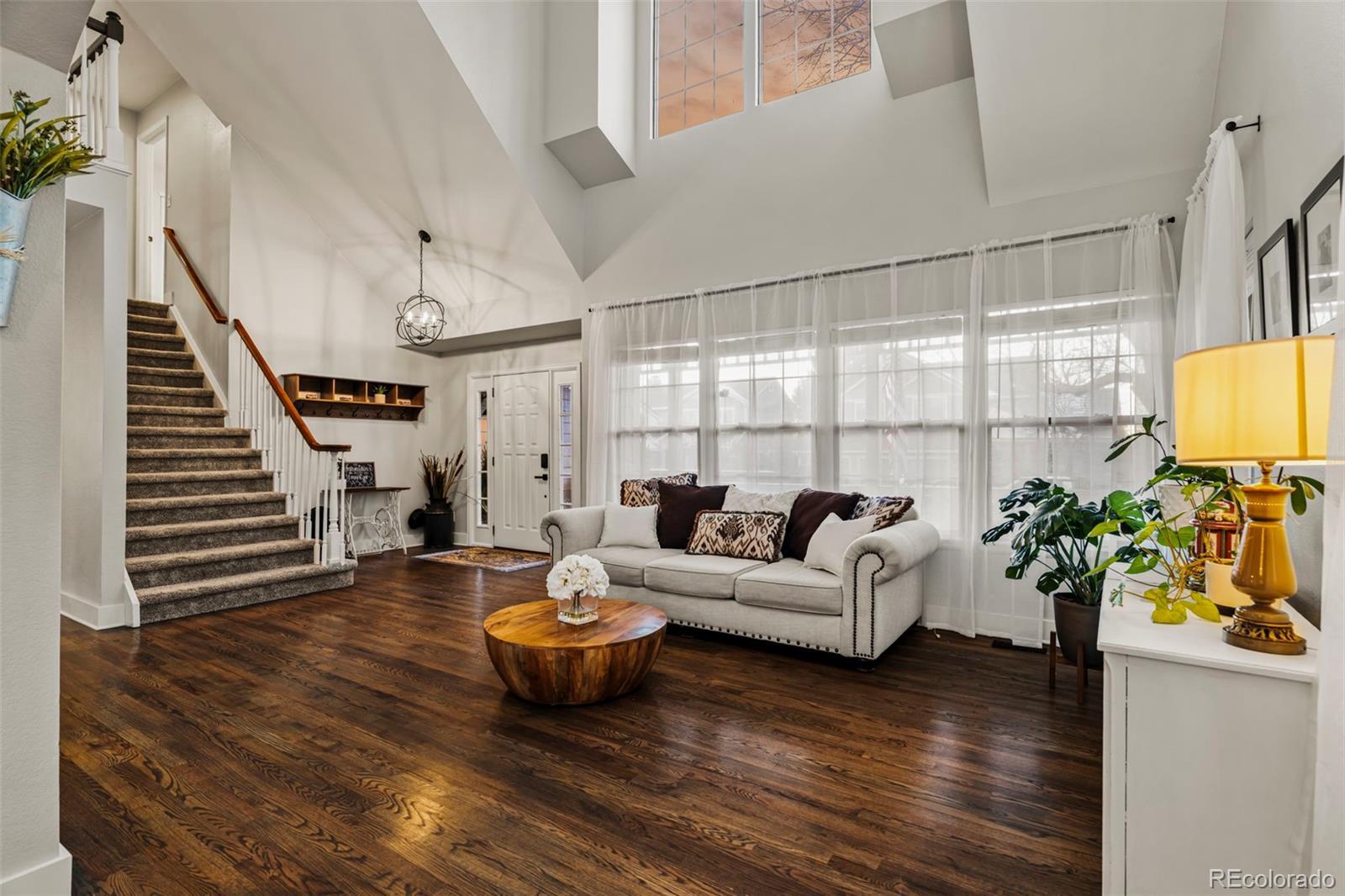 Beautifully updated and meticulously maintained, this exceptional 3-bedroom, 3-bath home is perfectly positioned on a large, private lot in the highly sought-after Stroh Ranch neighborhood—just steps from the Cherry Creek Trail and minutes to shopping, dining, and everyday conveniences. From the moment you arrive, the mature landscaping, fully fenced yard, charming covered wrap-around front porch, and oversized rear patio create outstanding curb appeal and effortless year-round outdoor living. Inside, the home impresses with hardwood floors, 6" baseboards, vaulted ceilings, and an abundance of natural light, highlighted by a dramatic formal living room with soaring 21½-foot ceilings that truly wow. The open, light, and bright kitchen features granite countertops, a center island, convection oven, R.O. water filtration system, and breakfast nook, flowing seamlessly into the inviting family room with gas fireplace—ideal for both everyday living and entertaining. A formal dining room anchors the main level for memorable holiday gatherings, while upstairs you’ll find a private primary suite with crown molding and a stunning, fully renovated spa-like bath complete with a stand-alone soaking tub, seamless glass shower, custom dual-sink vanity, marble floors, and designer tile. Two additional bedrooms are connected by a full Jack-and-Jill bath, and the 770-square-foot basement is open and ready for your custom finish. Recent major upgrades include a Presidential TL impact-resistant roof replaced in 2019, new furnace in 2024, and exterior paint in 2020, offering peace of mind for years to come. Just three blocks from the Stroh Ranch community pool, clubhouse, and fitness center and located within highly rated Douglas County Schools, this home delivers an unbeatable combination of location, lifestyle, and architectural drama—you’re going to fall in love the moment you walk in.
