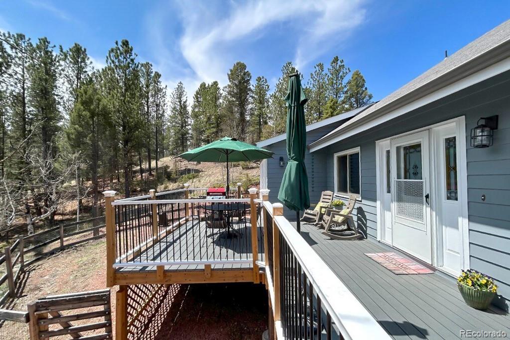 **Secluded Mountain Retreat **Turnkey, 5-Star Airbnb or **Private Home Discover this 2,381 sq. ft. mountain property tucked away on nearly 9 private, treed acres with stunning mountain views and abundant wildlife. This 3-bedroom, 2-bath home offers a functional layout with a private primary suite on its own floor, complete with en suite bath and a balcony. The spacious kitchen features 2 ovens, a breakfast bar and lots of counter space. A huge deck extends your living space for entertaining. Overlooking the surrounding forest, enjoy your morning coffee with breathtaking sunrises. Finish your day with cozy evenings by the wood-burning stoves in both the living room and basement. Currently operating as a 5-star rated Airbnb, this home can continue as a proven income-producing, short-term rental or serve as your private mountain escape. With the right offer, the property can be sold fully furnished and turnkey for an effortless transition. Outdoor enthusiasts will love the proximity to 11 Mile Canyon fishing, Florissant Fossil Beds, nearby hiking trails, and the Colorado Wolf and Wildlife Center—For a night out, Cripple Creek’s casinos are just 30 minutes away. The 28x39 metal garage/shop will accommodate all of your outdoor toys and more!! This is mountain living at its finest — whether as an investment property or your own secluded retreat.