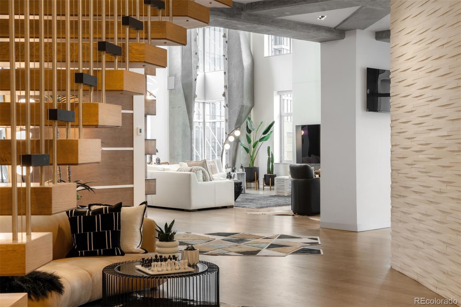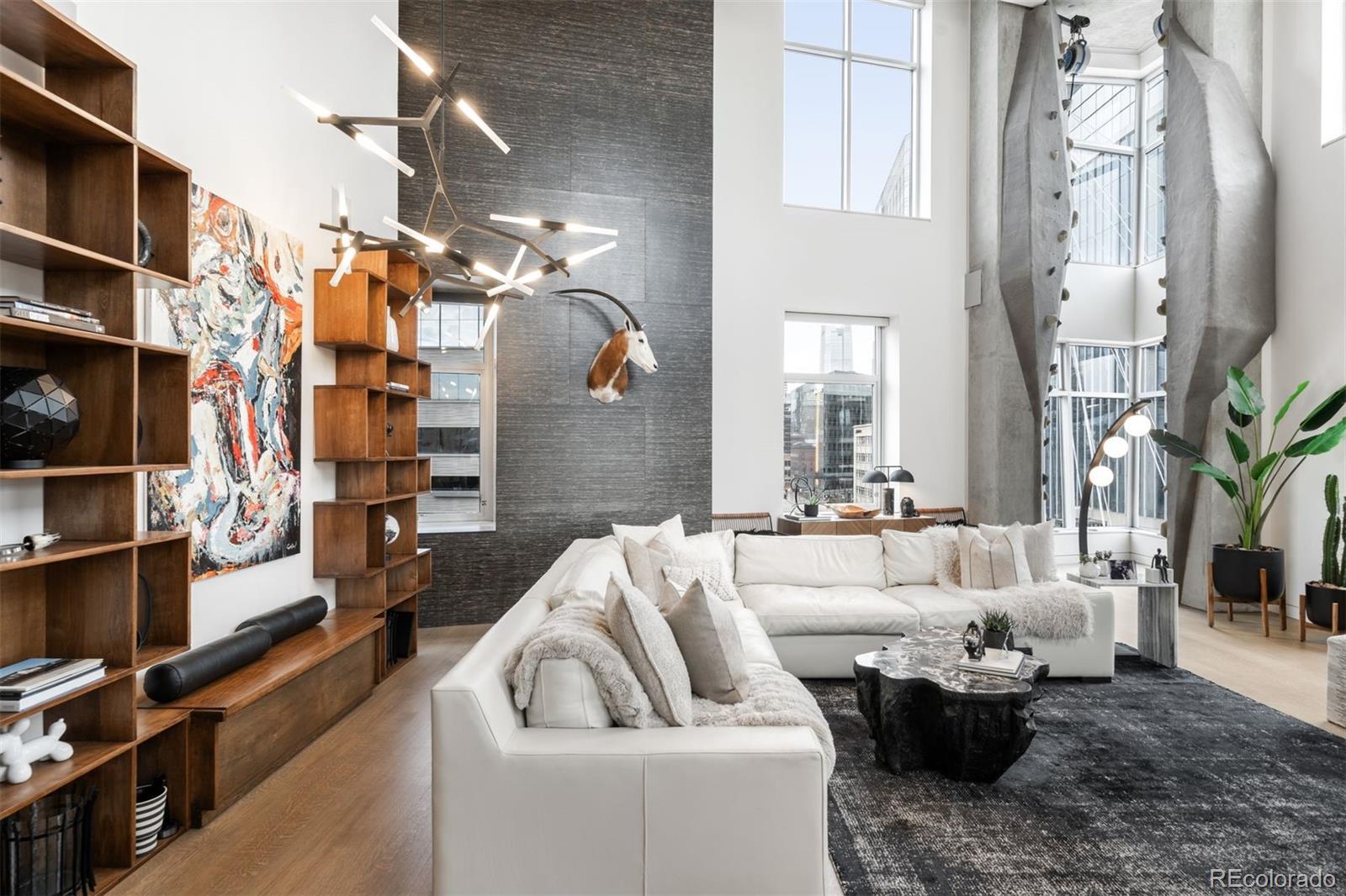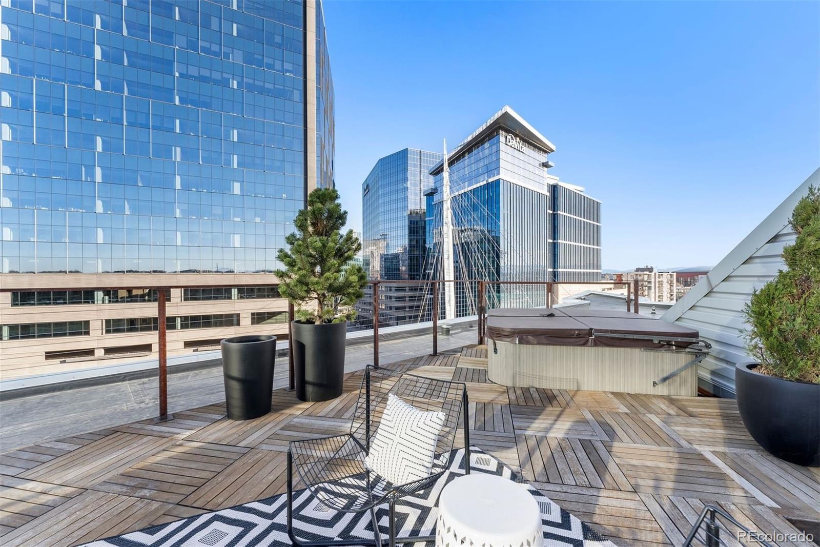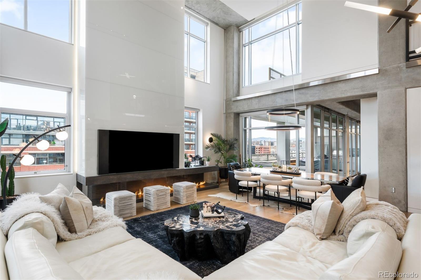 Perched atop one of the most desirable buildings in Downtown Denver, Penthouse 6 is a rare opportunity to own a custom-designed, multi-level residence in the heart of Riverfront Park, arguably the city’s most walkable neighborhood. Encompassing over 4,000 square feet of artfully curated interiors, this penthouse offers a rare blend of architectural sophistication, privacy, and sweeping mountain-to-city views that frame every living space. Completely reimagined with no expense spared, the residence is anchored by a showstopping chef’s kitchen with Miele appliances, a built-in espresso machine and steamer, and striking leathered granite waterfall countertops, all flowing seamlessly onto a private terrace ideal for al fresco dining. The soaring living room impresses with a bespoke 12ft glass fireplace, a rock climbing wall, designer wall tile, and floor-to-ceiling windows. Additional main-floor highlights include a chic guest suite, a custom powder room, a cozy reading lounge beneath the architectural staircase, and a full-sized laundry room. Upstairs, the serene primary suite is a true sanctuary with a private balcony, spa-like five-piece bath, sauna, custom walk-in closet, and an additional washer/dryer. Two additional bedrooms and a loft lounge with outdoor access complete the upper level. This is the only residence in the building to offer a fully private rooftop deck, creating an exceptional outdoor retreat complete with a hot tub and sweeping panoramic views. The home is powered by a Savant automation system, giving you full control of lighting, climate, and media from your phone. Includes three oversized deeded garage spaces in a secure, heated building. Residents enjoy professional management, premium amenities, and direct access to Commons Park, Confluence Park, Union Station, Larimer Square, the Ballpark District, and Denver’s best dining and cultural venues. A lifestyle of elegance, privacy, and connection to the city’s very best.
