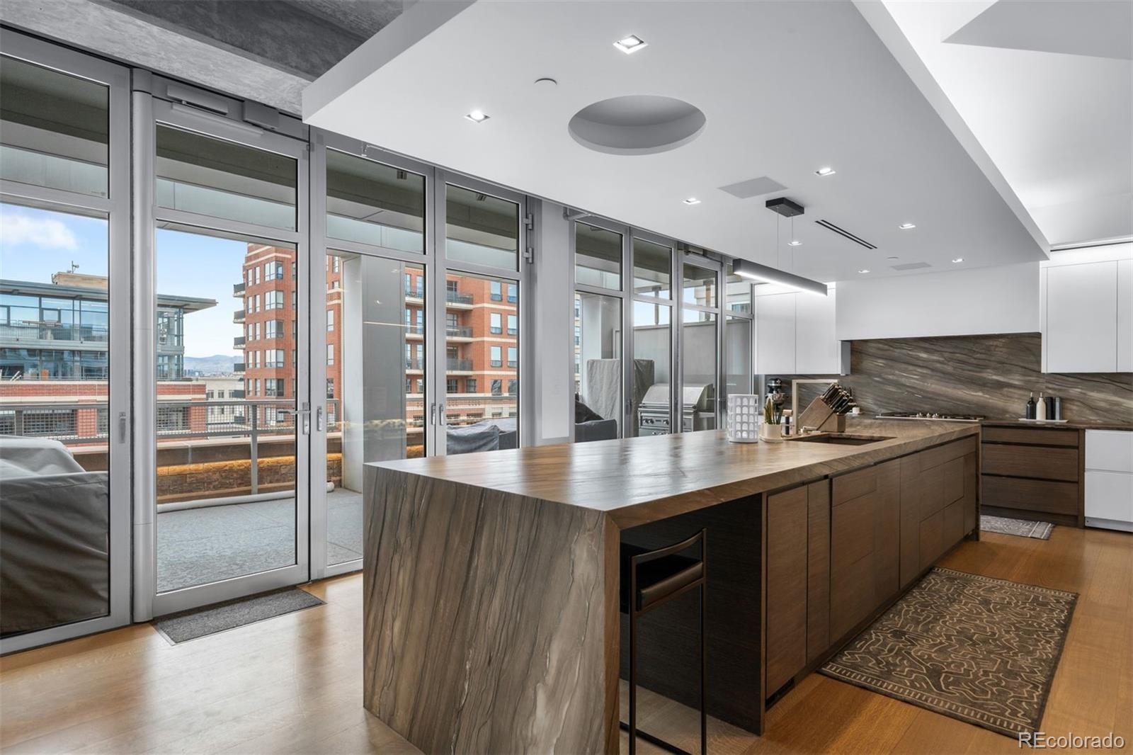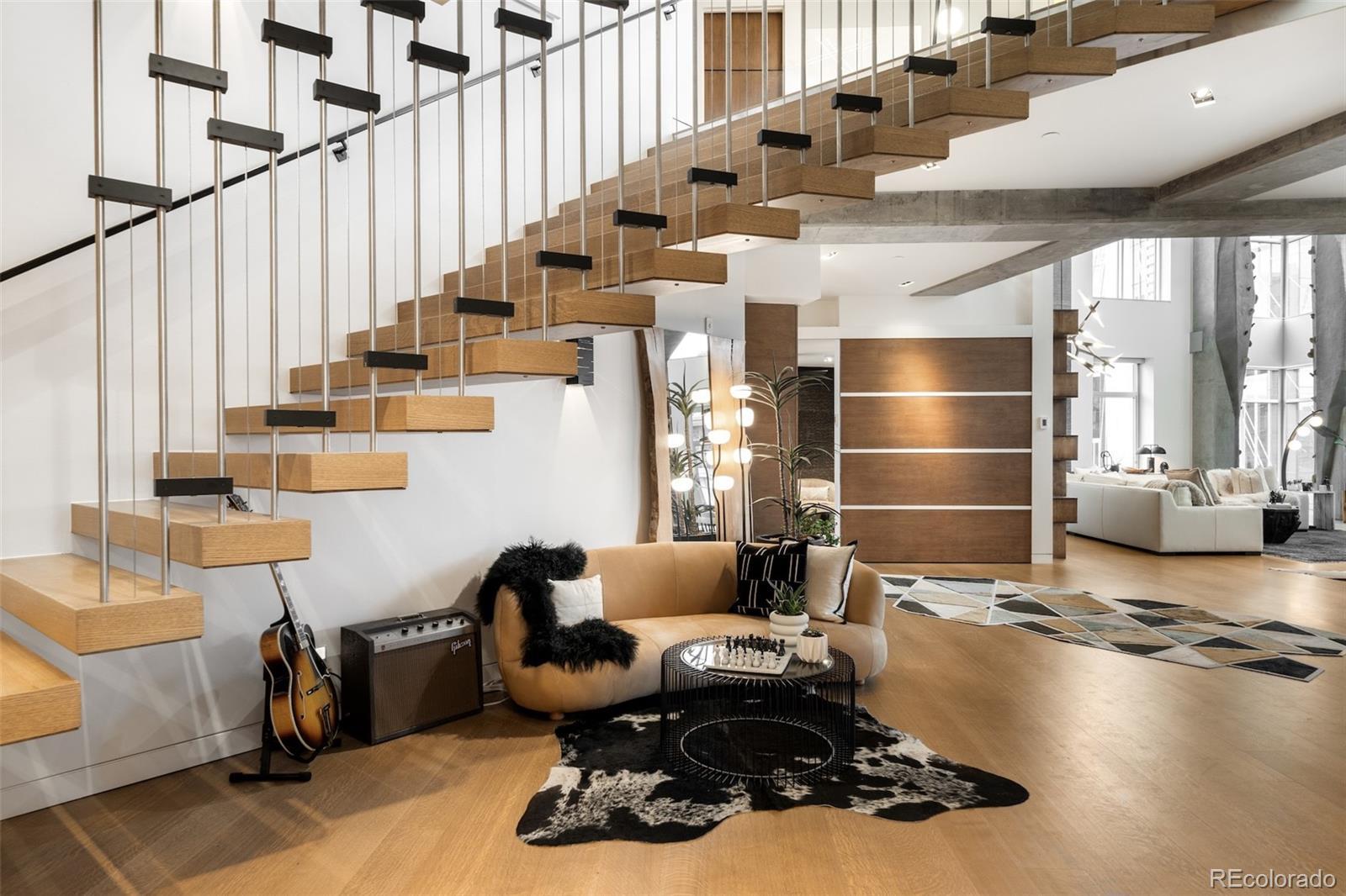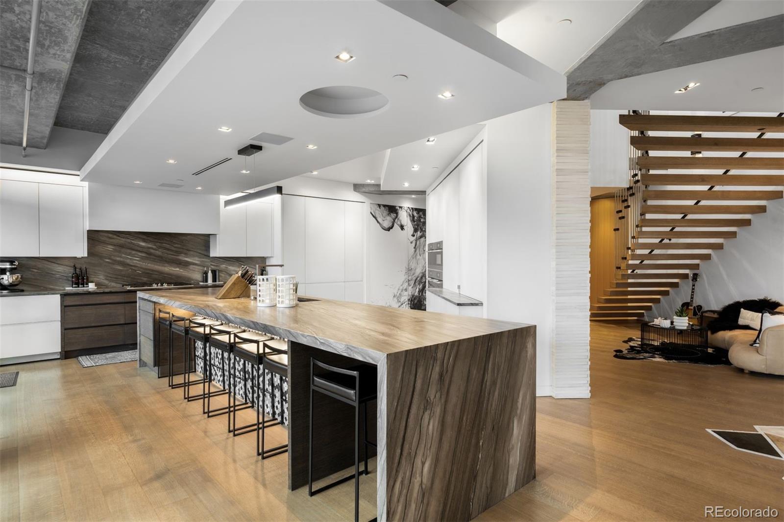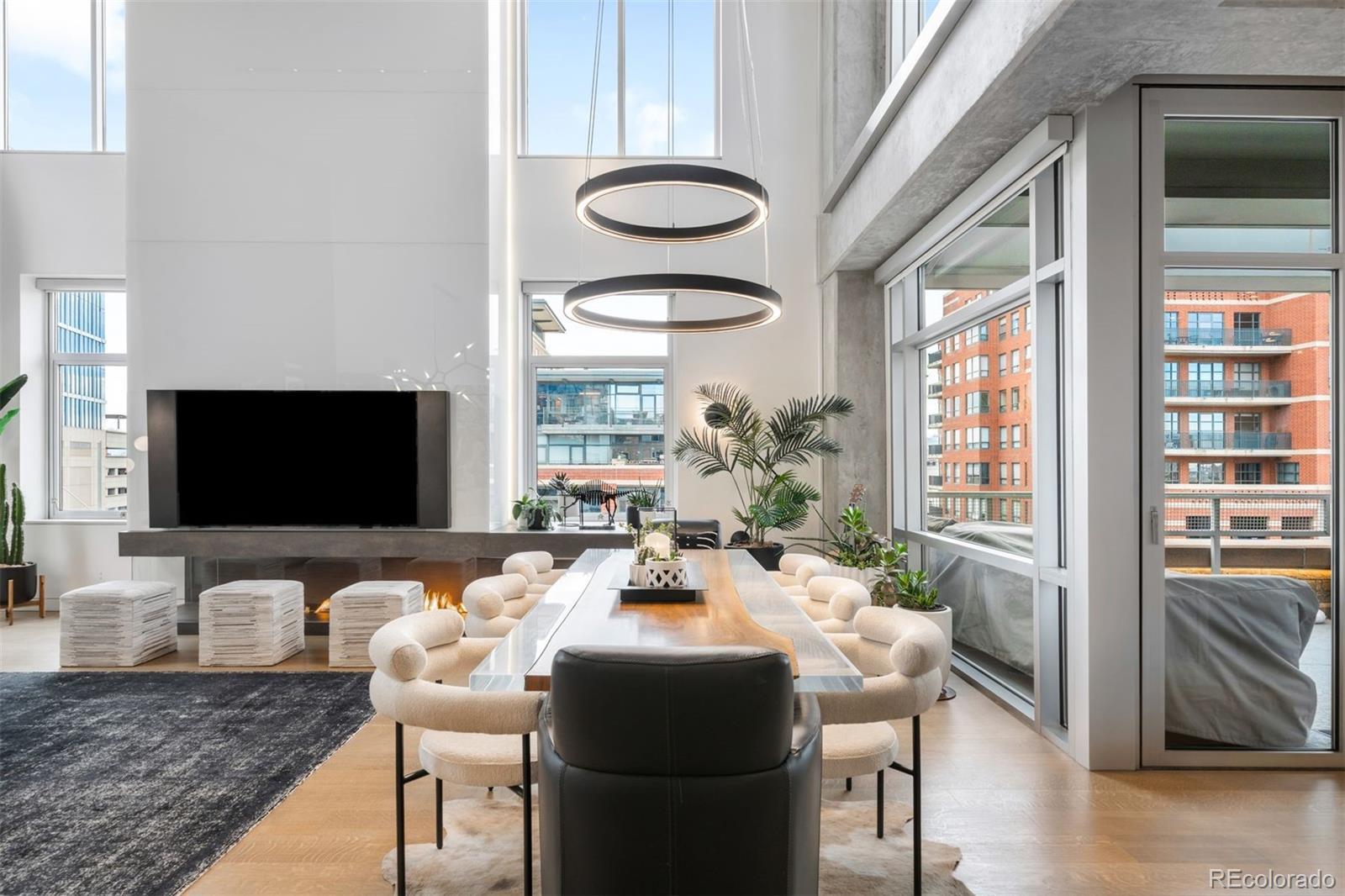 Perched atop one of the most desirable buildings in Downtown Denver, Penthouse 6 is a rare opportunity to own a custom-designed, multi-level residence in the heart of Riverfront Park, arguably the city’s most walkable neighborhood. Encompassing over 4,000 square feet of artfully curated interiors, this penthouse offers a rare blend of architectural sophistication, privacy, and sweeping mountain-to-city views that frame every living space. Completely reimagined with no expense spared, the residence is anchored by a showstopping chef’s kitchen with Miele appliances, a built-in espresso machine and steamer, and striking leathered granite waterfall countertops, all flowing seamlessly onto a private terrace ideal for al fresco dining. The soaring living room impresses with a bespoke 12ft glass fireplace, a rock climbing wall, designer wall tile, and floor-to-ceiling windows. Additional main-floor highlights include a chic guest suite, a custom powder room, a cozy reading lounge beneath the architectural staircase, and a full-sized laundry room. Upstairs, the serene primary suite is a true sanctuary with a private balcony, spa-like five-piece bath, sauna, custom walk-in closet, and an additional washer/dryer. Two additional bedrooms and a loft lounge with outdoor access complete the upper level. This is the only residence in the building to offer a fully private rooftop deck, creating an exceptional outdoor retreat complete with a hot tub and sweeping panoramic views. The home is powered by a Savant automation system, giving you full control of lighting, climate, and media from your phone. Includes three oversized deeded garage spaces in a secure, heated building. Residents enjoy professional management, premium amenities, and direct access to Commons Park, Confluence Park, Union Station, Larimer Square, the Ballpark District, and Denver’s best dining and cultural venues. A lifestyle of elegance, privacy, and connection to the city’s very best.