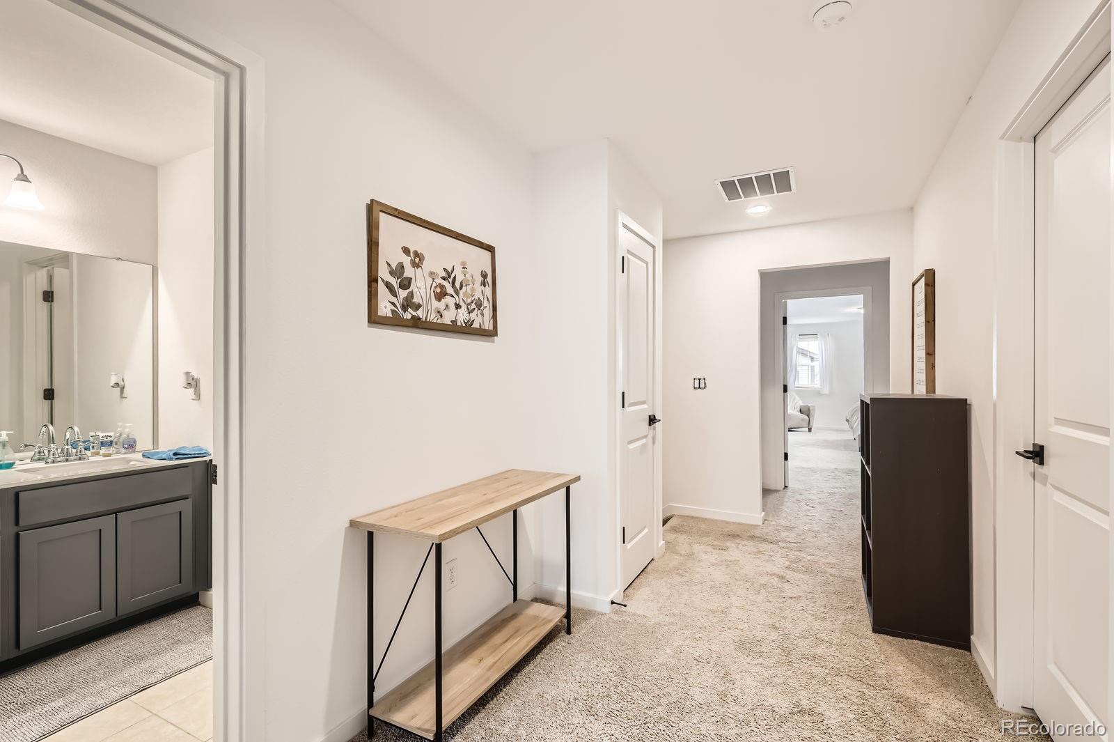 Spacious end-unit corner townhome located in the Prospect Village at Sterling Ranch! With almost 2,500 square feet, 4 bedrooms and 4 bathrooms, this home offers extra flexible living space for all residents & families. There is a main-level primary suite with a personal bathroom, which is great for in-laws and/or other guests, as the rest of the bedrooms are located upstairs. On the upper level, the primary suite features walk-in closets and a full bathroom to enjoy. The two other bedrooms, a full bathroom, and a laundry room completes the upper level space. Modern updates with 9’ ceilings, open concept amongst the kitchen and dining areas that flow nicely into the living area provide quality energy for entertaining or relaxing opportunities. There is nearby access to sweeping open space, mountain views, an amenity-rich town center with a small-town feel, and the opportunity to discover the great outdoors. Come see why this home offers some of the best of what Sterling Ranch has to offer!