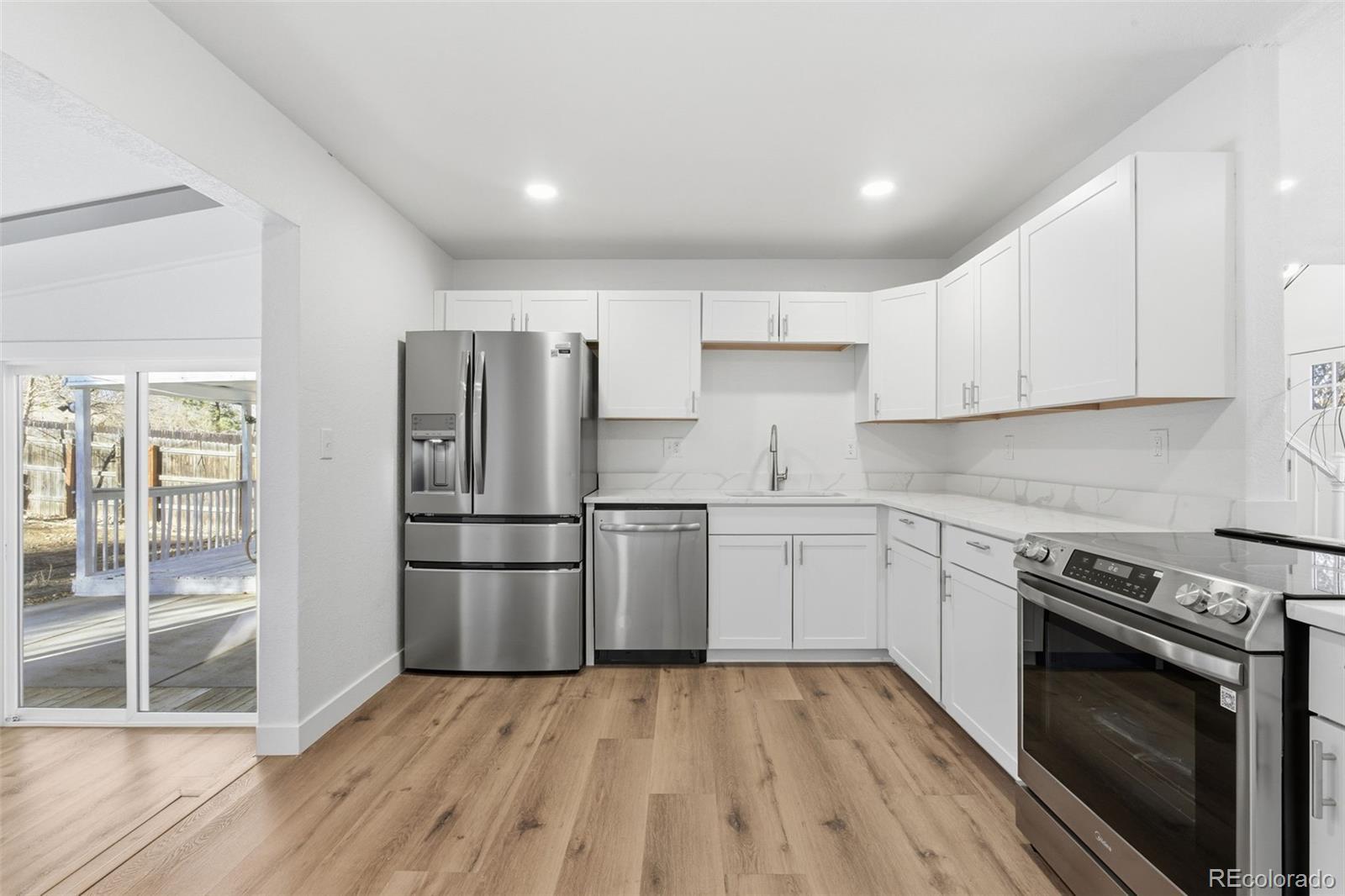 You don’t want to miss this fully renovated tri-level home offering a flexible layout and comfortable living in a quiet, established Aurora neighborhood with no HOA. With four bedrooms and two bathrooms thoughtfully arranged across multiple levels, this home provides separation of space ideal for a variety of lifestyles. The main level features a bright and welcoming living area with modern finishes, recessed lighting, and durable vinyl flooring that flows seamlessly into the kitchen and dining room. The updated kitchen showcases white cabinetry, stainless steel appliances, generous counter space, and an open connection to the dining area—perfect for everyday living and casual entertaining. Upstairs, two bedrooms are paired with a full bathroom, creating a functional upper-level retreat. The lower level adds valuable versatility with two additional bedrooms and a second bathroom with a walk-in shower, ideal for guests, home office use, or flexible living arrangements. Outside, enjoy a fully fenced yard with space to relax, garden, or host gatherings, along with a deck for outdoor enjoyment. A detached shed provides extra storage, and the attached garage offers everyday convenience. Ideally located near Meadowood Park, local schools, shopping, and dining, with quick access to Hampden Avenue, Tower Road, I-225, and E-470, this home offers an easy commute and strong day-to-day convenience. A smart opportunity to enjoy a versatile tri-level layout in a location that supports both comfort and long-term value.