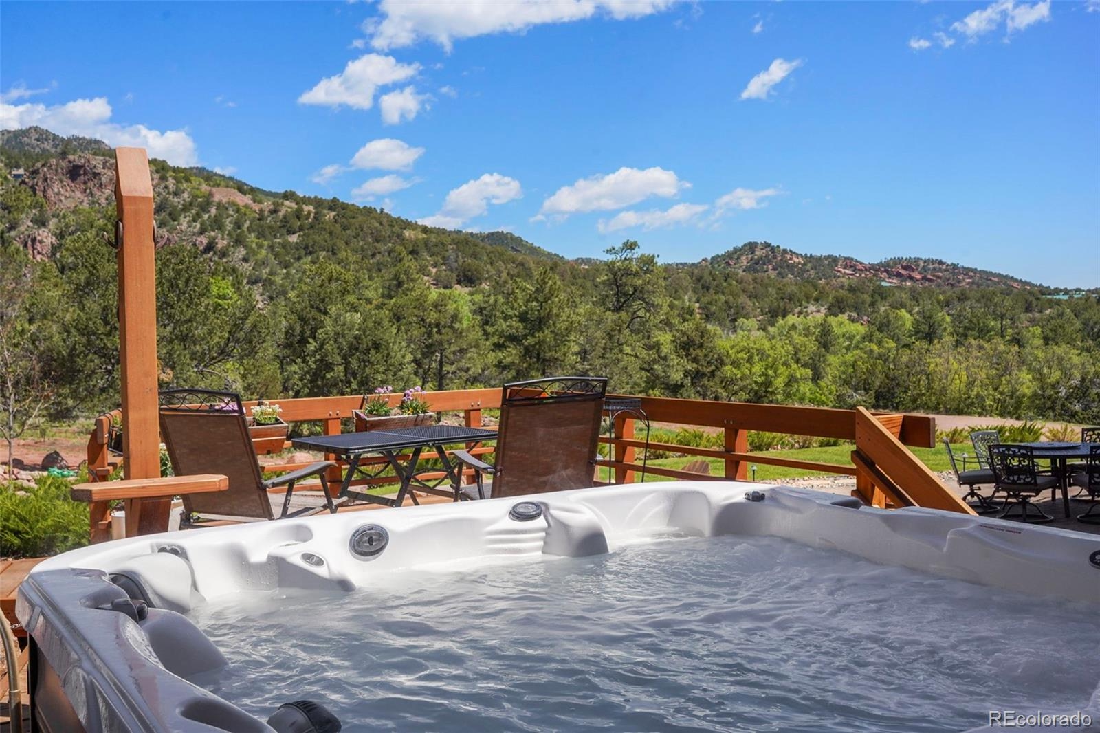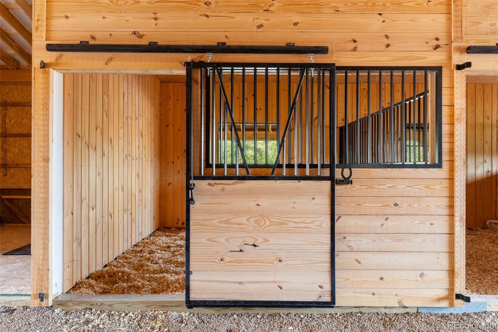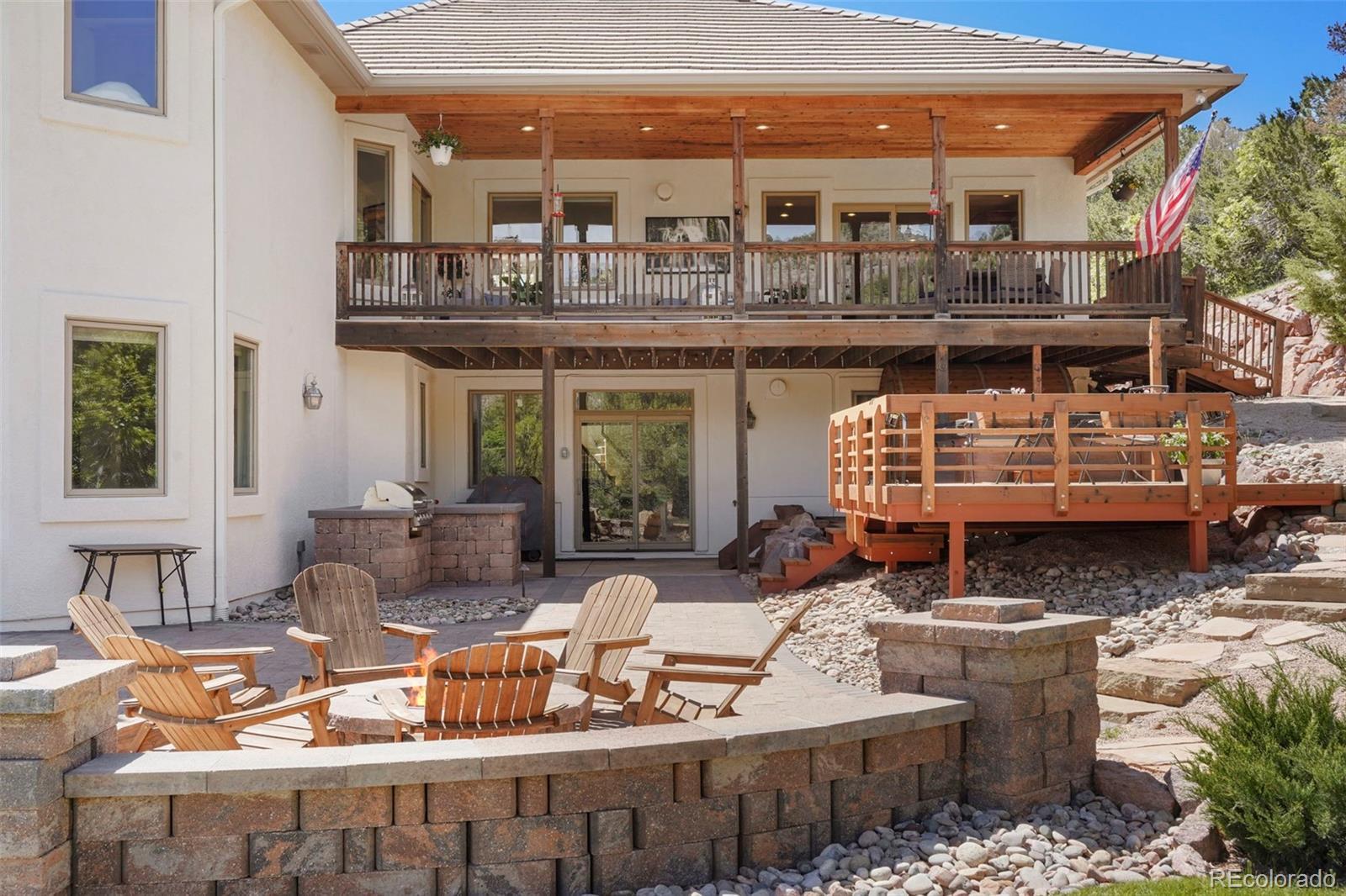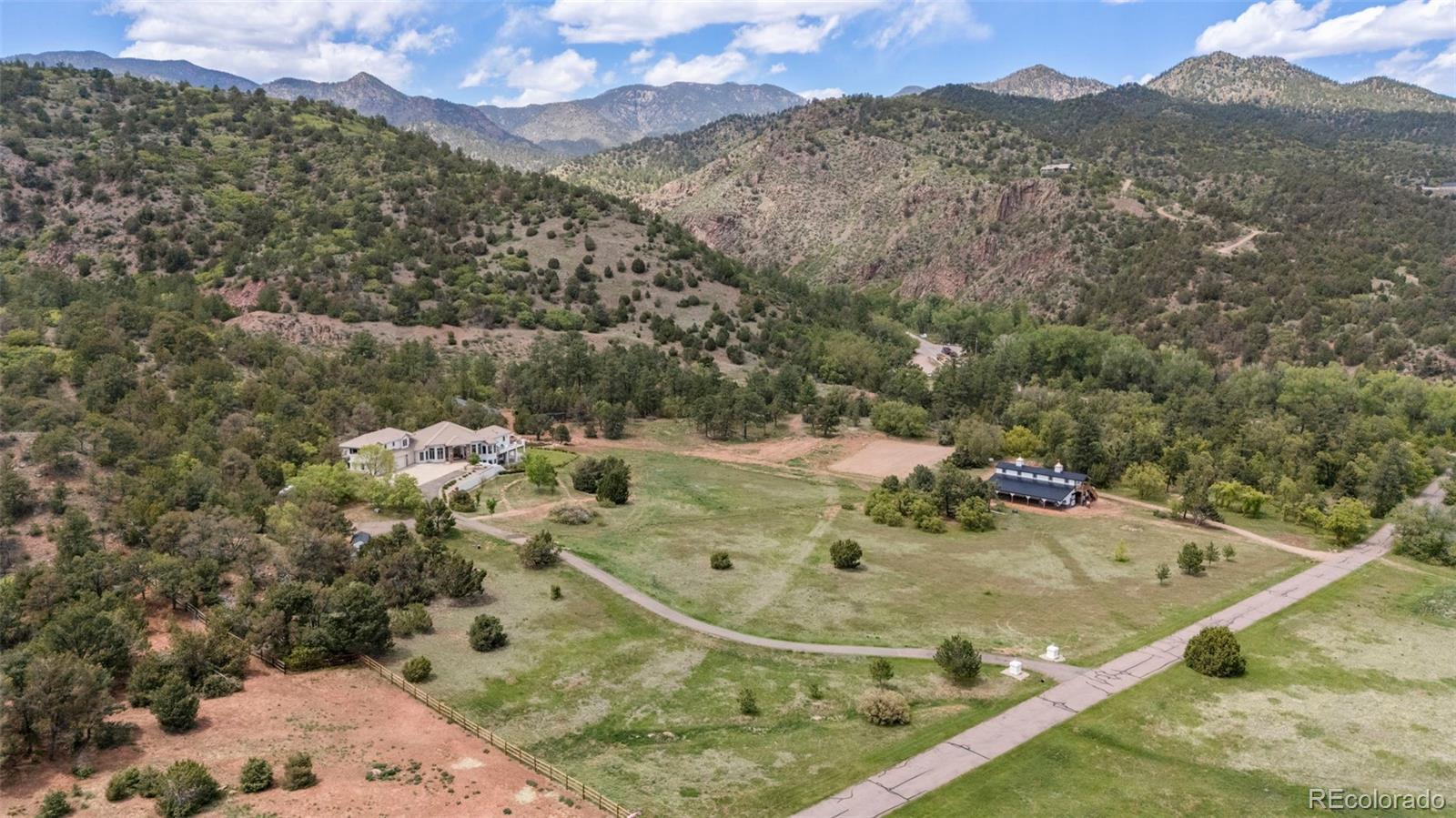 For those seeking a stunning and functional executive horse estate, this property will surely suit your needs. Red Rock Sterling Ranch is located 20 minutes southwest of Colorado Springs within the prestigious gated community of Turkey Canon Ranch Estates. Tucked up against the mountains, this area abounds with natural beauty and vistas of mountain peaks and red rimrock canyons. This property features a 6,372 square foot home set on 35.01 acres adorned with trees, scrub oak and open meadows. Offering the convenience of main floor living, the residence includes a five bed and six bath floor plan. The main floor primary suite is a true retreat, complete with a fireplace, sitting area, walkout to (2) decks, his/her closets and a five-piece bath. The living room flows into the gourmet kitchen that includes a large island, breakfast nook, fireplace sitting area and a walkout to an expansive covered deck – the perfect spot to relax and enjoy the surroundings. The upper level contains two additional bedrooms, each with its own private bath and a walkout to a private deck. The walkout basement boasts a fireplace, bar, gym and two additional bedrooms and bathrooms. Outdoors you will find a large patio complete with a hot tub, sauna, fire pit and grill area overlooking a pond and waterfall. A new 36X60, five-stall barn is a true highlight of the property. The horse enthusiast will appreciate automatic waterers inside stalls and in pasture areas, wash rack, rubber stall mats, ample feed storage, and a secure tack room. With a few final details needed, the end result will create a very functional setup. Above the barn, there is an unfinished 12x60 space that offers potential for customization into living quarters. Additional features are extensive solar panels for amazing utility costs, storage shed and chicken coop. Red Rock Sterling Ranch offers a unique opportunity for those seeking a luxurious home and exceptional equestrian facilities within an easy drive to amenities.