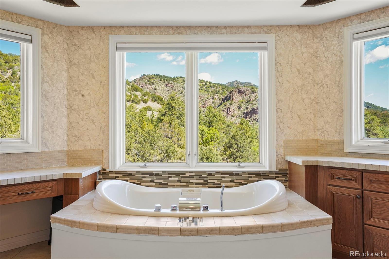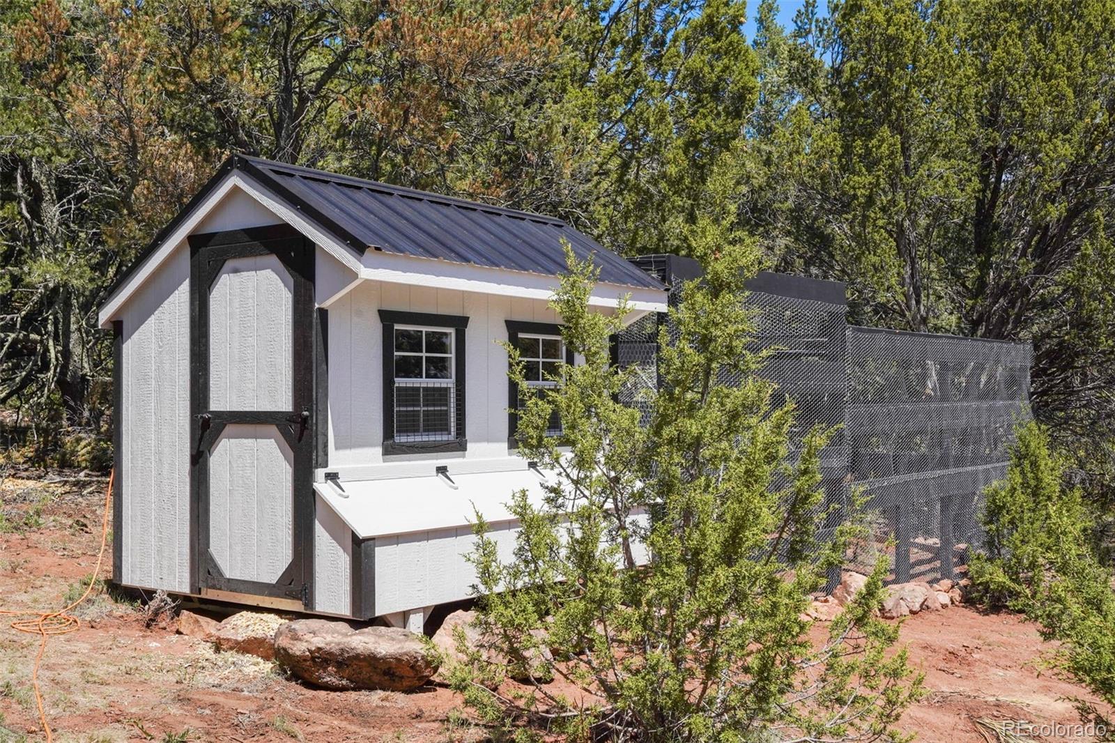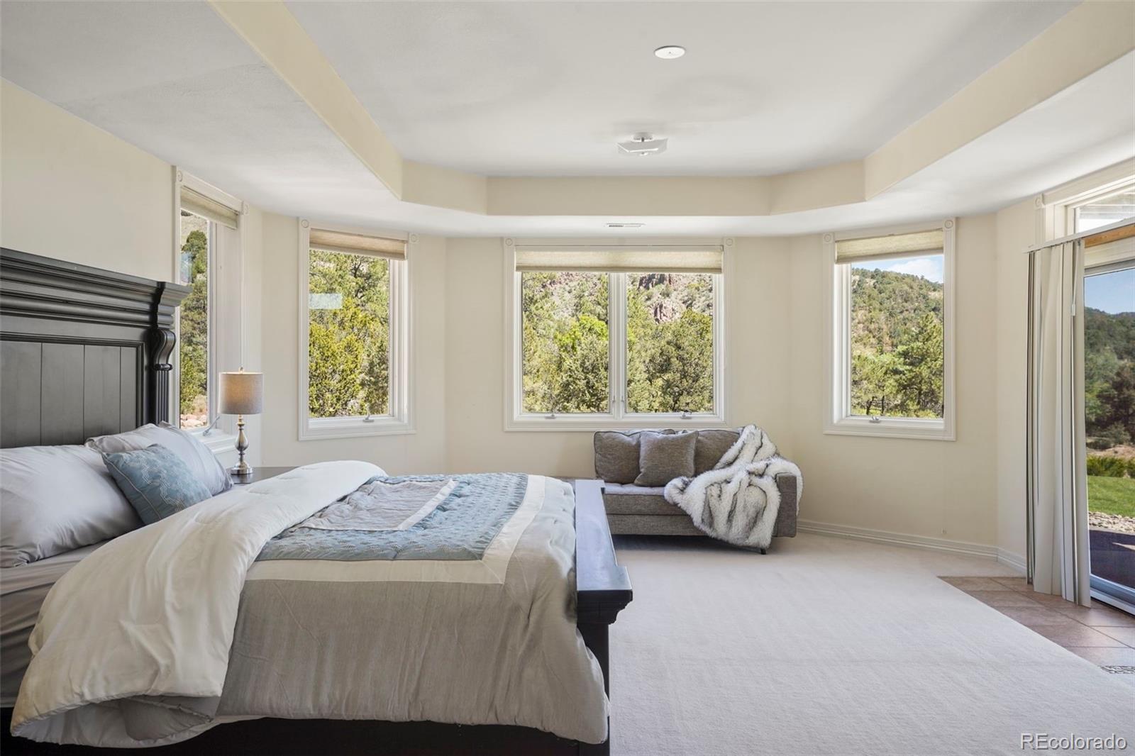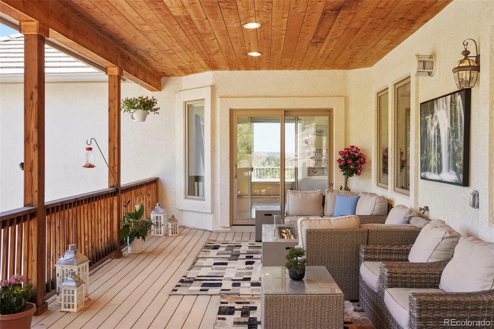 For those seeking a stunning and functional executive horse estate, this property will surely suit your needs. Red Rock Sterling Ranch is located 20 minutes southwest of Colorado Springs within the prestigious gated community of Turkey Canon Ranch Estates. Tucked up against the mountains, this area abounds with natural beauty and vistas of mountain peaks and red rimrock canyons. This property features a 6,372 square foot home set on 35.01 acres adorned with trees, scrub oak and open meadows. Offering the convenience of main floor living, the residence includes a five bed and six bath floor plan. The main floor primary suite is a true retreat, complete with a fireplace, sitting area, walkout to (2) decks, his/her closets and a five-piece bath. The living room flows into the gourmet kitchen that includes a large island, breakfast nook, fireplace sitting area and a walkout to an expansive covered deck – the perfect spot to relax and enjoy the surroundings. The upper level contains two additional bedrooms, each with its own private bath and a walkout to a private deck. The walkout basement boasts a fireplace, bar, gym and two additional bedrooms and bathrooms. Outdoors you will find a large patio complete with a hot tub, sauna, fire pit and grill area overlooking a pond and waterfall. A new 36X60, five-stall barn is a true highlight of the property. The horse enthusiast will appreciate automatic waterers inside stalls and in pasture areas, wash rack, rubber stall mats, ample feed storage, and a secure tack room. With a few final details needed, the end result will create a very functional setup. Above the barn, there is an unfinished 12x60 space that offers potential for customization into living quarters. Additional features are extensive solar panels for amazing utility costs, storage shed and chicken coop. Red Rock Sterling Ranch offers a unique opportunity for those seeking a luxurious home and exceptional equestrian facilities within an easy drive to amenities.