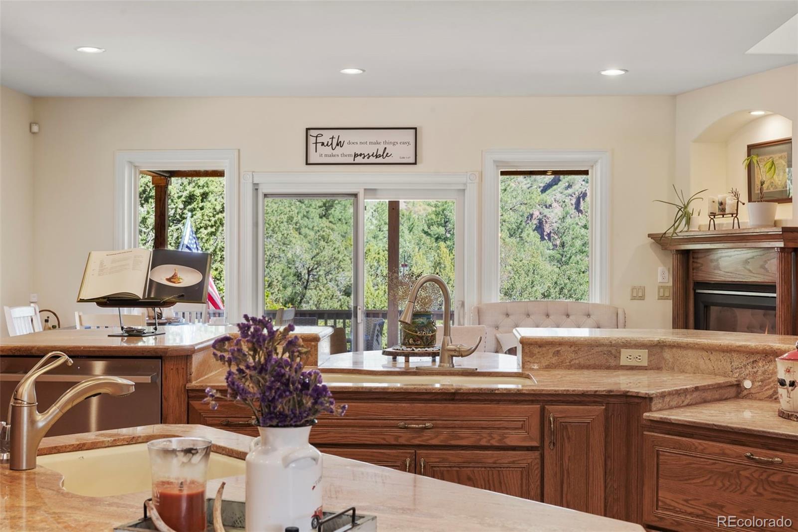 Breakfast Bar, Built-in Features, Ceiling Fan(s), Central Vacuum, Eat-in Kitchen, Five Piece Bath, Granite Counters, High Ceilings, High Speed Internet, In-Law Floorplan, Kitchen Island, Open Floorplan, Primary Suite, Radon Mitigation System, Sauna, Smoke Free, Hot Tub, Vaulted Ceiling(s), Walk-In Closet(s), Wet Bar