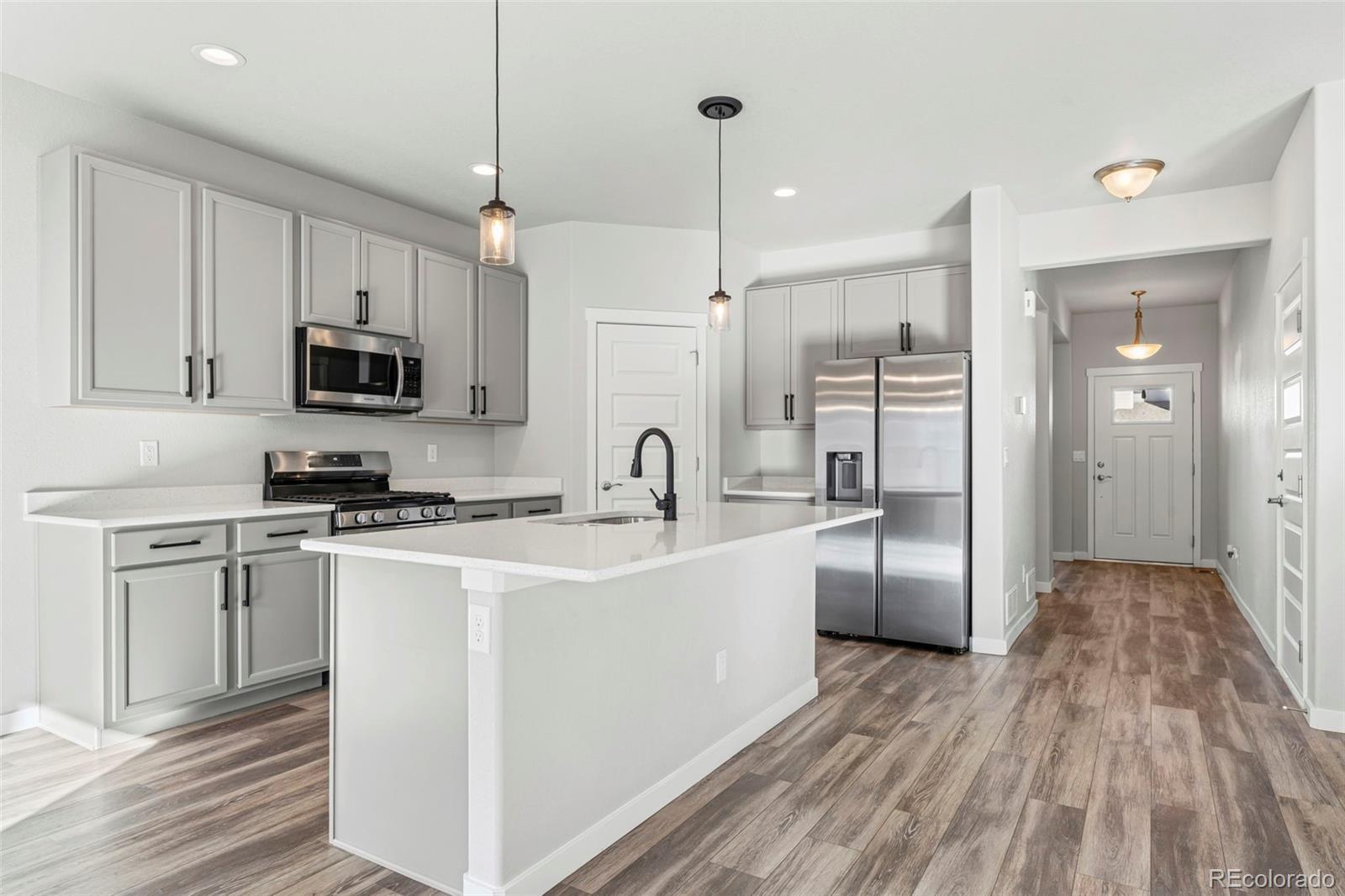 Check out this beautiful home in the Lochbuie Station community! This two-story residence offers 4 bedrooms, 2.5 bathrooms, a spacious loft, a 2-car garage, and a versatile flex room—ideal for a home office or additional living space. The light and bright open-concept floor plan features a large kitchen with an oversized island, pantry, and ample storage. The kitchen is fully equipped with stainless steel appliances, including a gas range, dishwasher, microwave, and side-by-side refrigerator. The primary suite includes a well-appointed bath and a large walk-in closet. Upstairs, the generous loft provides the perfect second living or entertainment area. Enjoy outdoor living in the finished backyard with a large patio, ideal for entertaining. This home fits all your needs while being turn-key ready.