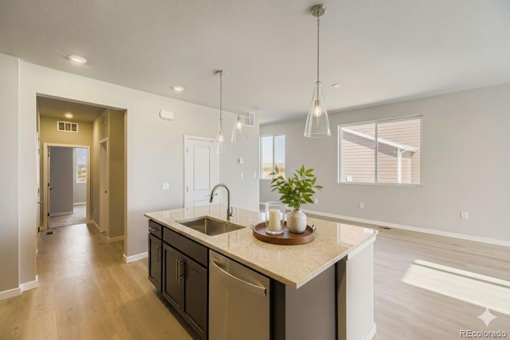 MOVE-IN DECEMBER! Ask about our special financing incentives starting at 1.99% first year when under contract by December 12th. Discover the Newport—a beautifully designed one-story home that seamlessly blends style, comfort, and functionality. Boasting an expansive open-concept floor plan, this residence is tailored for modern living and effortless entertaining. With four generously sized bedrooms and two full bathrooms, the layout offers exceptional versatility to suit a variety of lifestyles, whether you're hosting family gatherings, working from home, or simply enjoying a quiet evening in. Thoughtfully designed living spaces flow naturally, creating a warm and inviting atmosphere ideal for both daily life and special occasions. Experience the perfect balance of space, connection, and comfort in the Newport. Welcome to Spring Valley Ranch by Dream Finders Homes—a carefully crafted community where privacy, space, and natural beauty come together in perfect harmony. Nestled in the serene countryside just minutes from downtown Elizabeth, Colorado, Spring Valley Ranch offers a rare blend of rural tranquility and convenient access. With sweeping views of Colorado’s open skies and rolling hills, homeowners here enjoy generous homesites—many featuring front garages, optional basements, and expansive open areas. It’s the ideal setting for those who seek comfort, breathing room, and a true sense of escape. Just beyond your doorstep, you'll discover a vibrant blend of local amenities and small-town charm. Golf enthusiasts will love being moments away from Spring Valley Golf Club—an 18-hole public course celebrated for its scenic land laid-back vibe. A short drive brings you to Elizabeth Brewing Company, a favorite local hangout where neighbors connect over handcrafted beers and good conversation. The town’s western heritage shines each year during the Elizabeth Stampede Rodeo, a cherished tradition featuring parades, rodeo events, and family-friendly festivities.