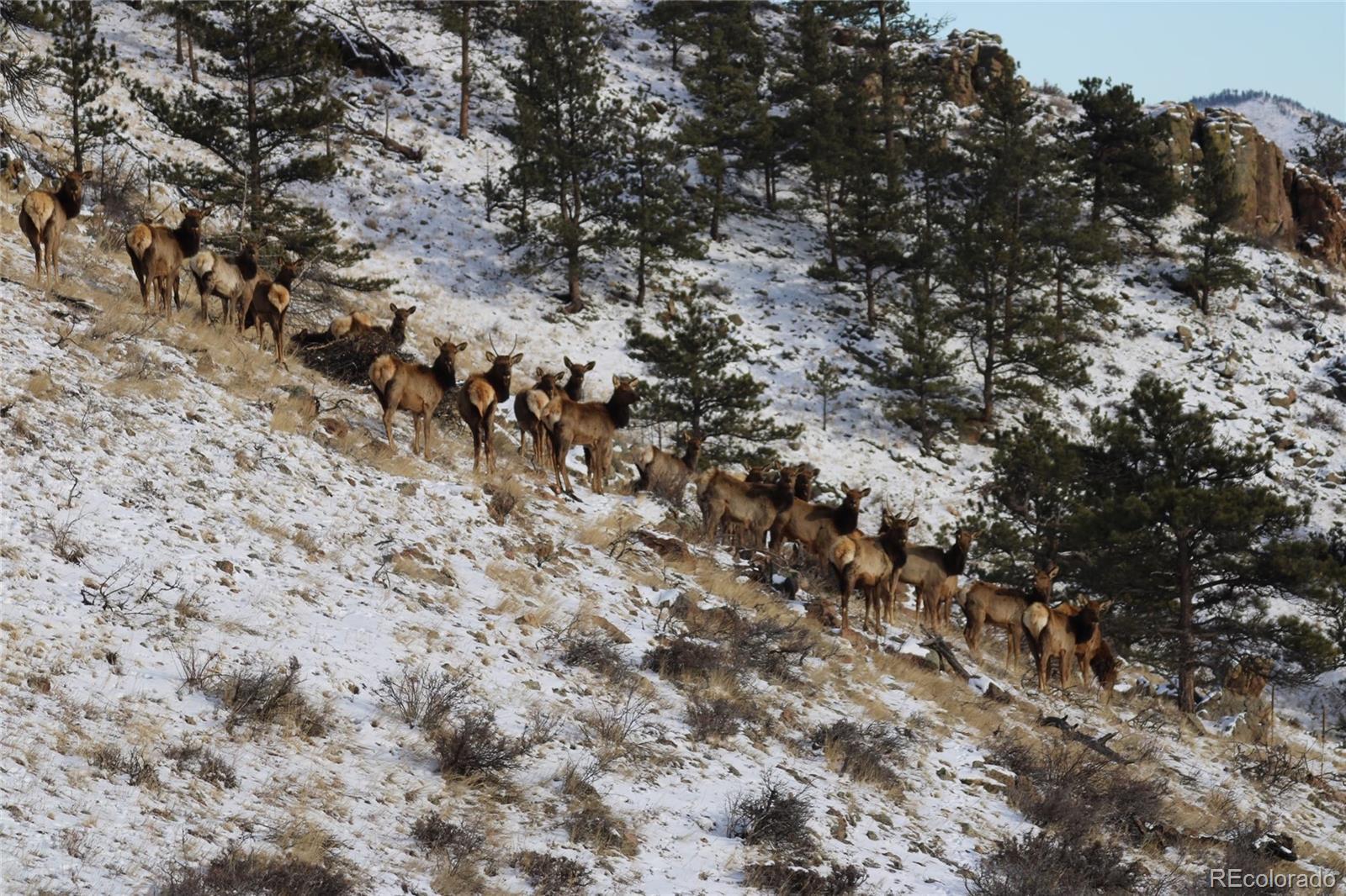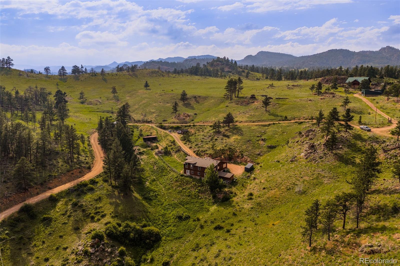 A rare opportunity to own a home on 36.15 acres in the Livermore w/ direct access to the Arapaho/Roosevelt Ntl Forests. Perched atop a pine-covered canyon with sweeping views of Elkhorn Creek Valley, this 5 bedroom home offers a true mountain retreat. Ideal for outdoor enthusiasts, the property provides direct access to hiking, off-roading and big game hunting. Set on the northern portion of the property, the 2-story, wood-sided 5-bedroom modular home offers sweeping views in every direction. The main level features south-facing windows that fill the kitchen, living, and dining areas with natural light, along with 3 bedrooms. The lower level has a spacious walk-out family room, 2 bedrooms, and a private study—perfect for working from home. Each level is equipped with a wood-burning stove, complementing the gas forced-air furnace for efficient year-round comfort. Adjacent, a loafing shed and fenced area provide secure shelter and grazing for horses or other livestock. A nearby chicken coop offers added convenience for hobby farming. The water source is a domestic/stock well and 1,800 gal in-ground cistern. From Elkhorn Creek below, the road climbs nearly 300 feet to an elevation of 7,520 feet, offering panoramic views. Pine trees dot the mountainside, a fenced pasture below the home provides natural grazing for horses, dramatic rock outcroppings frame the valley, creating shelter and scenic perches for local wildlife. Elkhorn Creek on the southern edge of the property, naturally draws big game. There are two parcels (35 acres and 1.15 acres) and no covenants. Photos of select rooms are virtually staged. Will transfer Starlink in-place. Seller has a VA loan at an attractive interest rate (2.25%) that may be assumable by a qualified VA-eligible buyer, subject to lender and VA approval. The assuming veteran must use their own VA entitlement points for the loan assumption. Flooring has been removed from basement. Seller to provide credit for new. See before/after pics.
