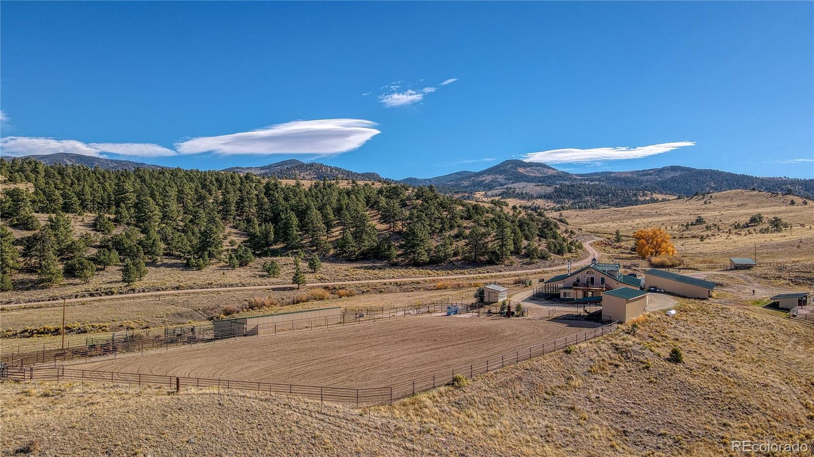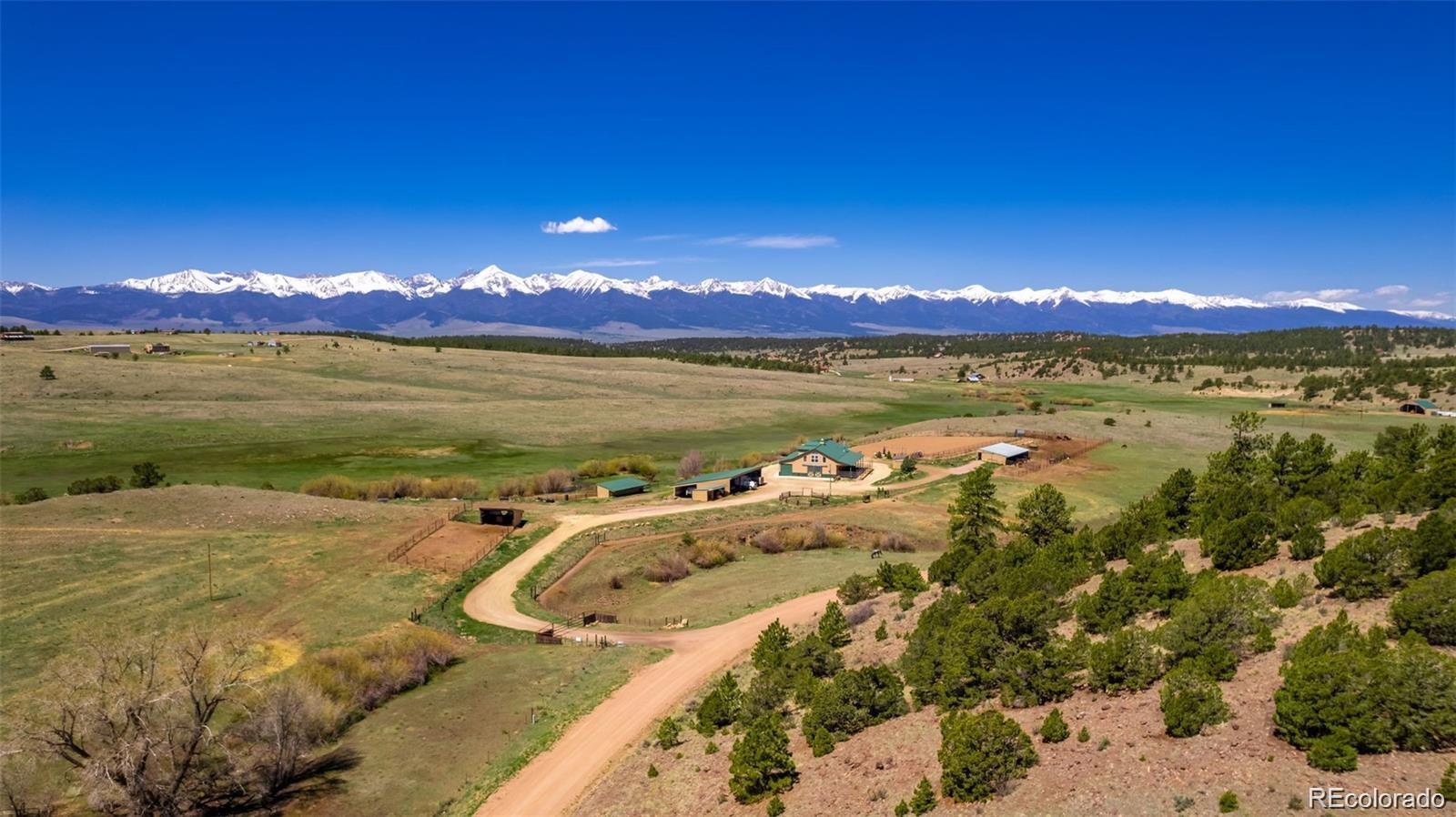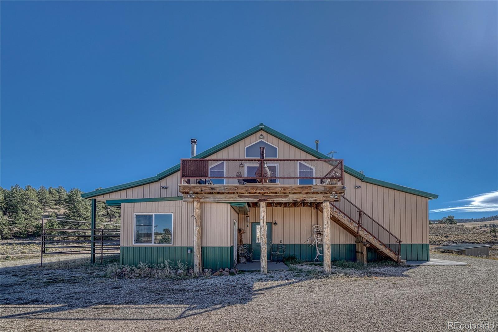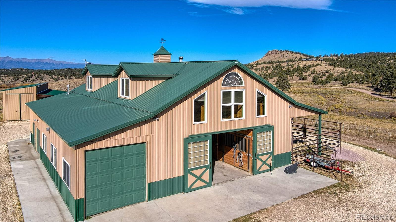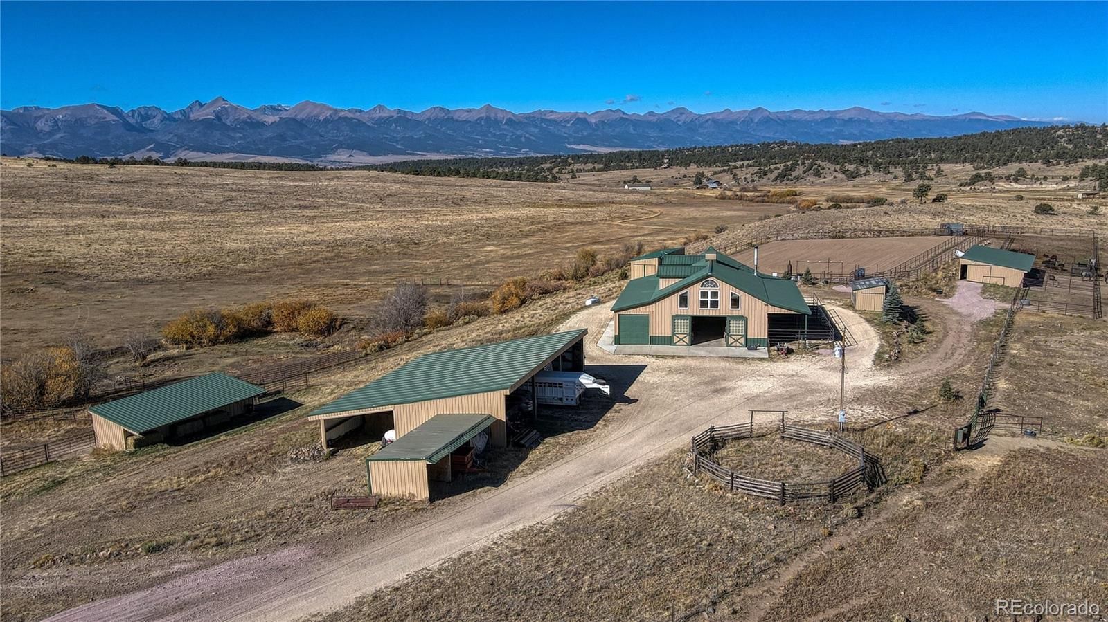 Discover a rare 70-acre equestrian estate nestled in the heart of Westcliffe, CO. This 1,800 sq ft barndominium seamlessly combines rustic charm with modern amenities, featuring two bedrooms and three bathrooms atop a fully equipped 5-stall barn. The interior boasts hardwood floors, cathedral ceilings, and a well-appointed kitchen, while the master suite offers full bathroom with tub & shower. Designed with the equestrian enthusiast in mind, the property includes a heated and insulated barn with five 12x12 stalls, a tack room, and additional metal outbuildings. These comprise a 40x12 RV/Horse Trailer storage with a concrete pad, a 50-amp RV hookup with sewer clean out, and a greenhouse. A 100x200 roping arena with a return alley, Antelope Creek, a spring-fed pond, and panoramic views of the Sangre de Cristo mountains enhance the property's allure. This exceptional horse property is close to national forest - Experience the perfect blend of comfort, functionality, and natural beauty in this unparalleled Westcliffe retreat.