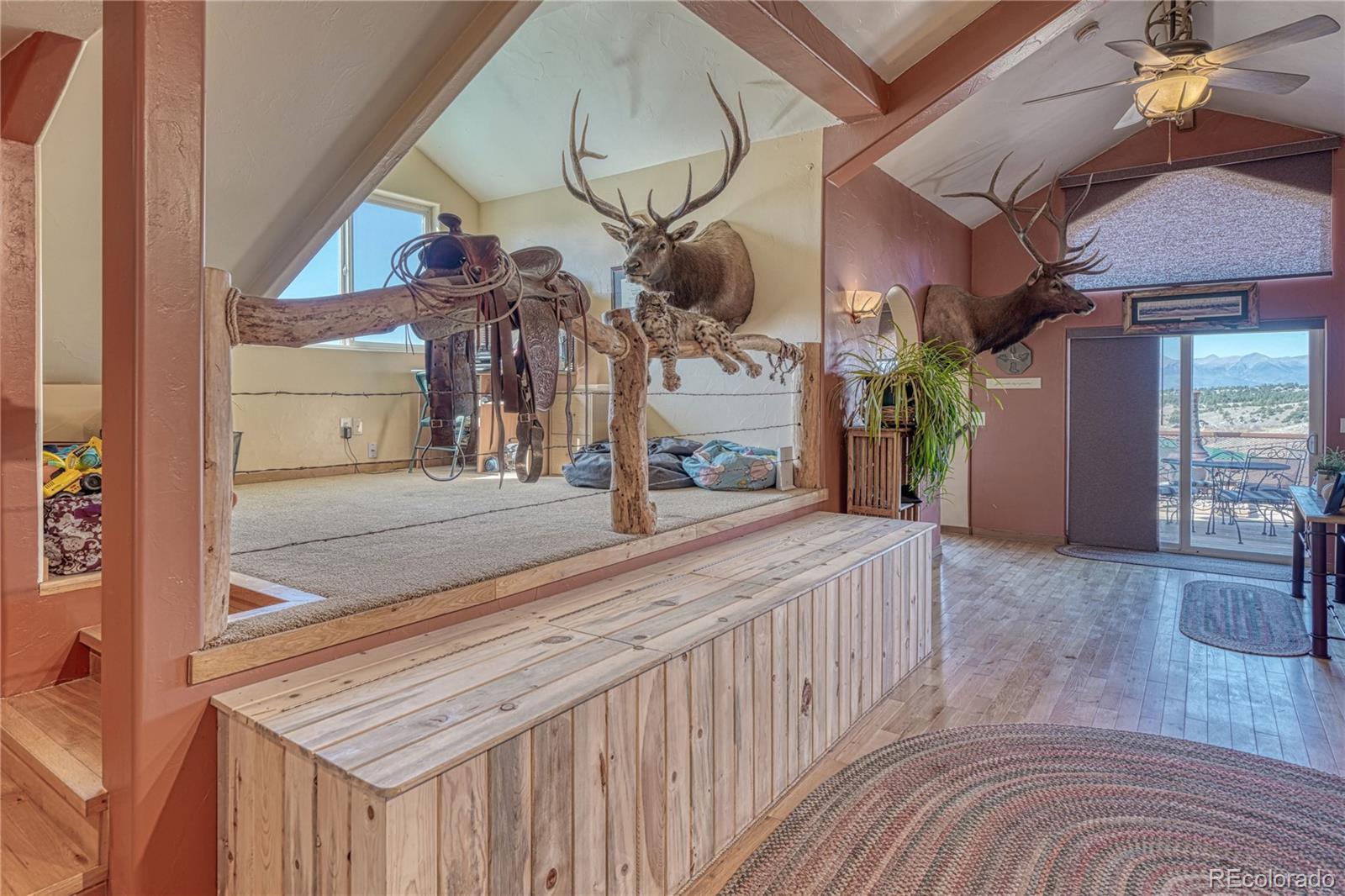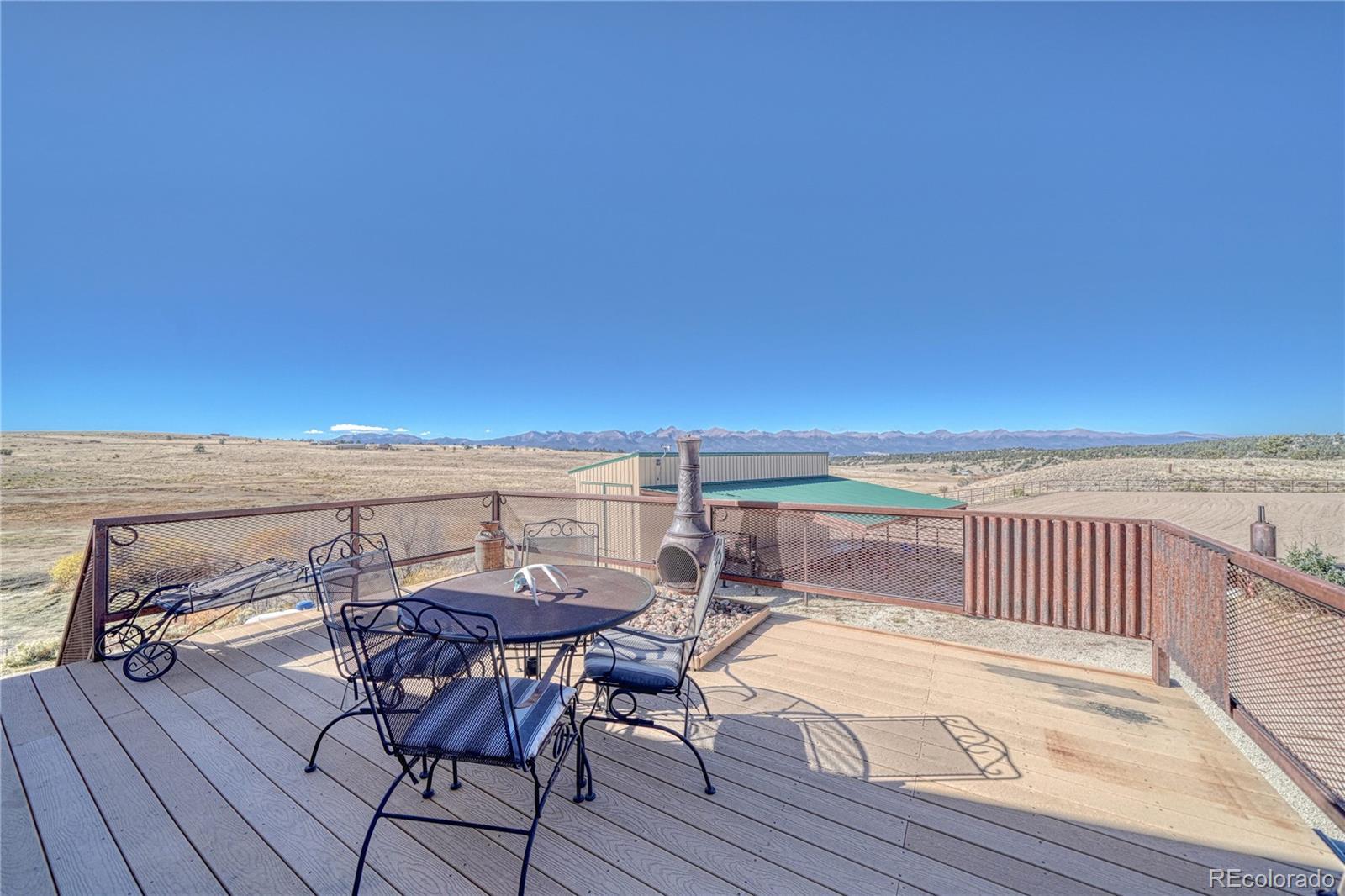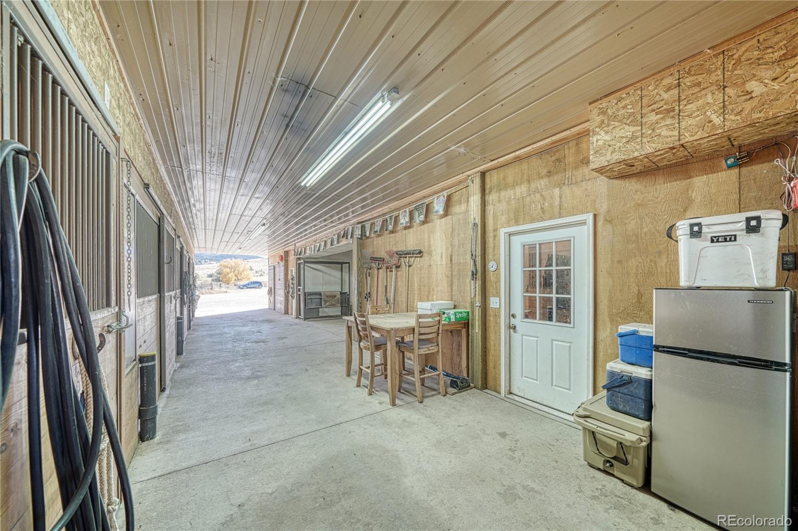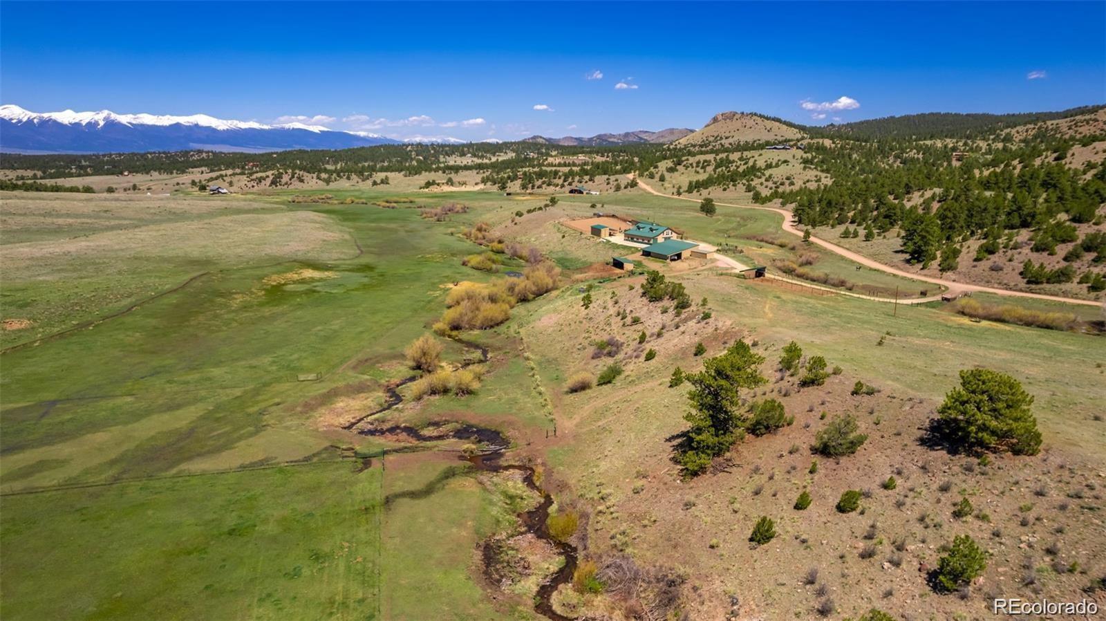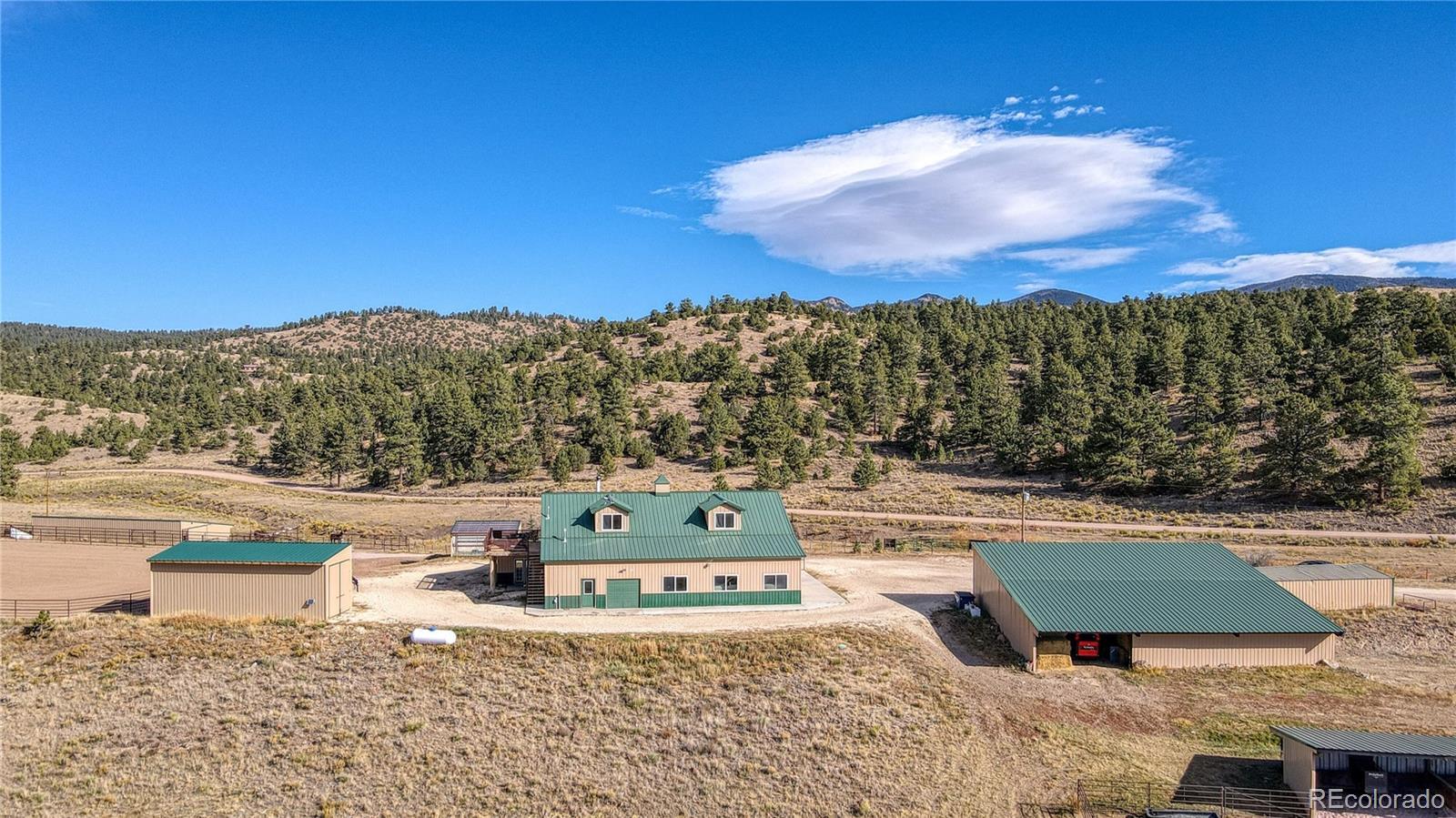 Discover a rare 70-acre equestrian estate nestled in the heart of Westcliffe, CO. This 1,800 sq ft barndominium seamlessly combines rustic charm with modern amenities, featuring two bedrooms and three bathrooms atop a fully equipped 5-stall barn. The interior boasts hardwood floors, cathedral ceilings, and a well-appointed kitchen, while the master suite offers full bathroom with tub & shower. Designed with the equestrian enthusiast in mind, the property includes a heated and insulated barn with five 12x12 stalls, a tack room, and additional metal outbuildings. These comprise a 40x12 RV/Horse Trailer storage with a concrete pad, a 50-amp RV hookup with sewer clean out, and a greenhouse. A 100x200 roping arena with a return alley, Antelope Creek, a spring-fed pond, and panoramic views of the Sangre de Cristo mountains enhance the property's allure. This exceptional horse property is close to national forest - Experience the perfect blend of comfort, functionality, and natural beauty in this unparalleled Westcliffe retreat.