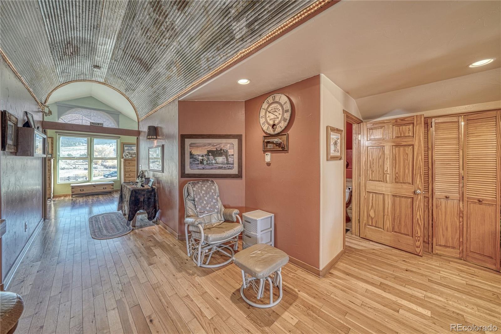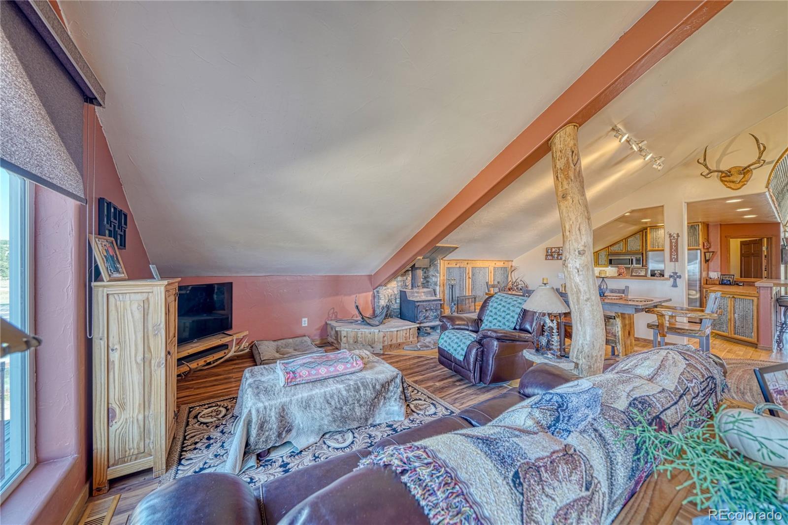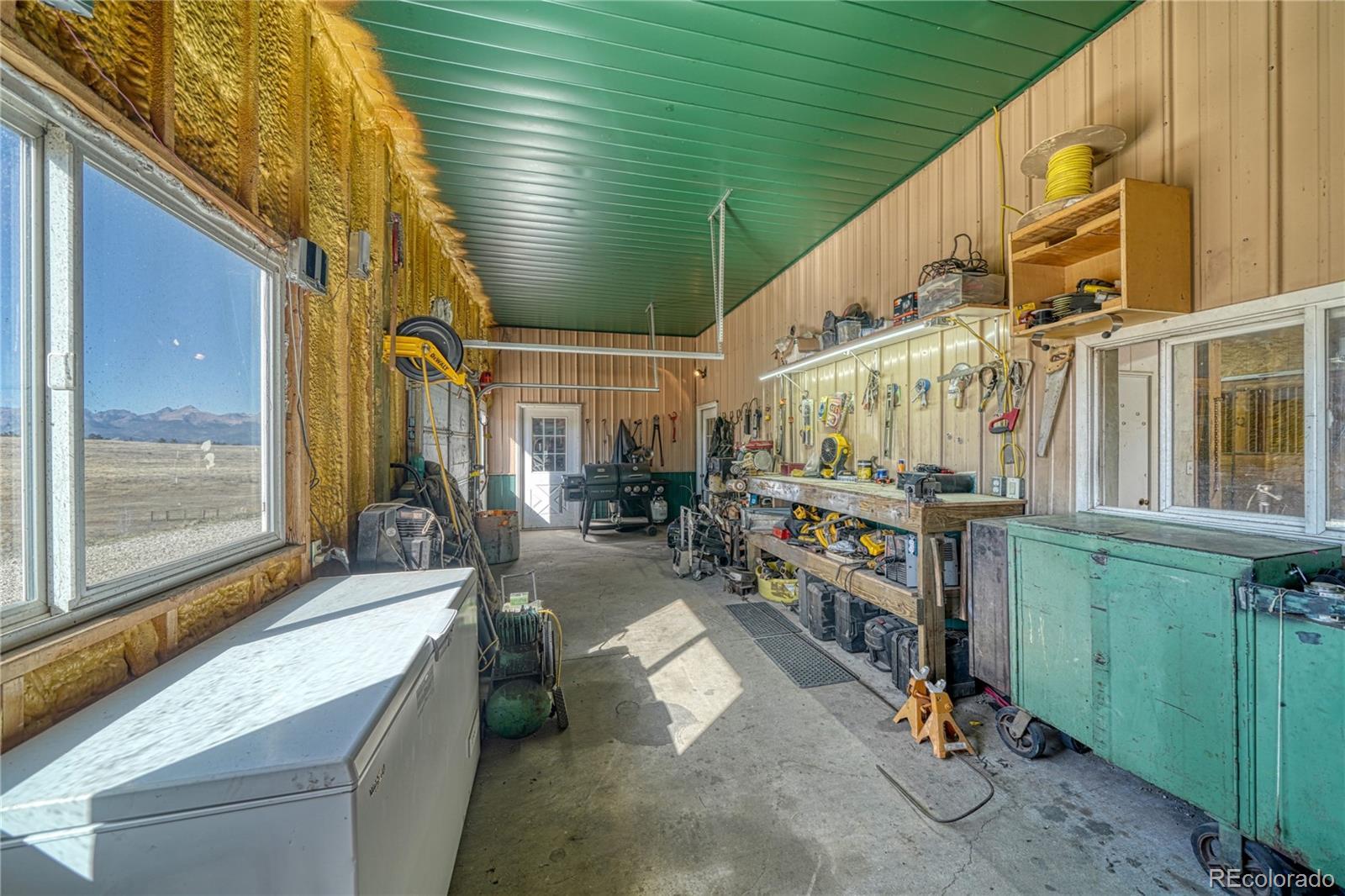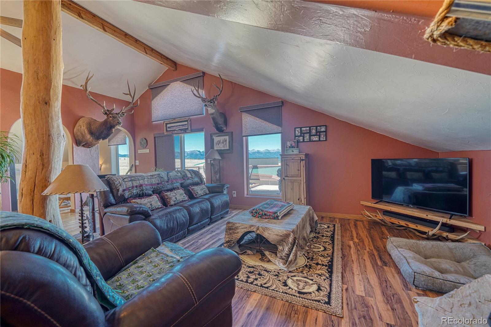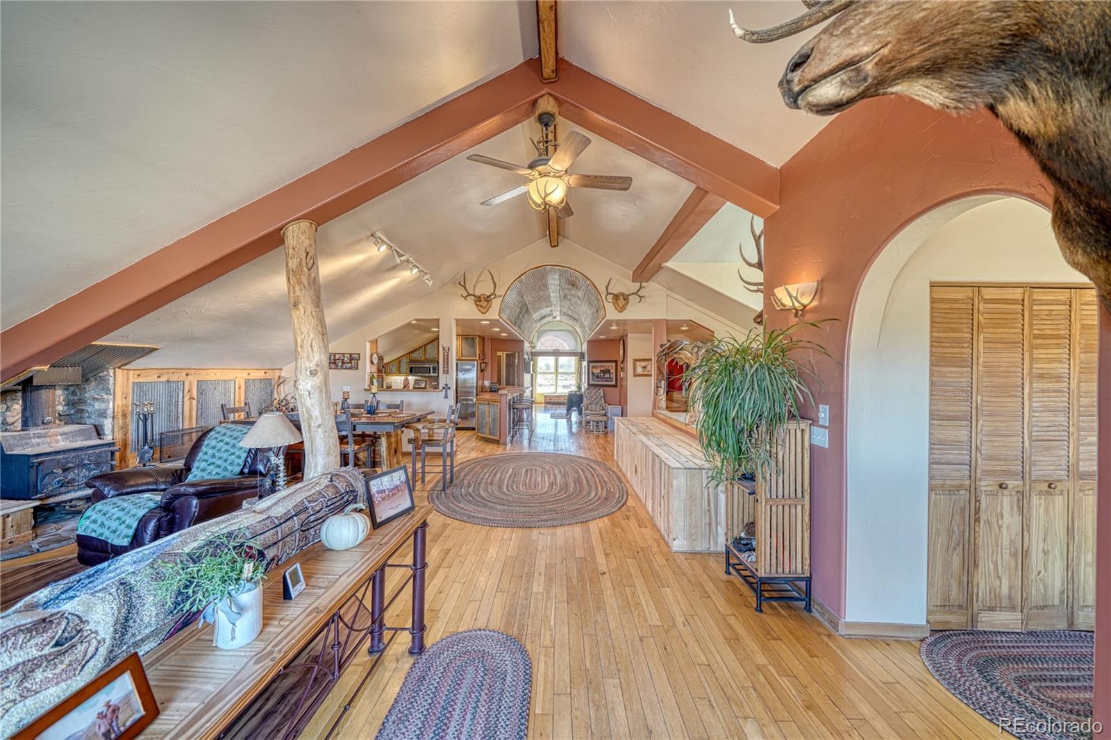 Discover a rare 70-acre equestrian estate nestled in the heart of Westcliffe, CO. This 1,800 sq ft barndominium seamlessly combines rustic charm with modern amenities, featuring two bedrooms and three bathrooms atop a fully equipped 5-stall barn. The interior boasts hardwood floors, cathedral ceilings, and a well-appointed kitchen, while the master suite offers full bathroom with tub & shower. Designed with the equestrian enthusiast in mind, the property includes a heated and insulated barn with five 12x12 stalls, a tack room, and additional metal outbuildings. These comprise a 40x12 RV/Horse Trailer storage with a concrete pad, a 50-amp RV hookup with sewer clean out, and a greenhouse. A 100x200 roping arena with a return alley, Antelope Creek, a spring-fed pond, and panoramic views of the Sangre de Cristo mountains enhance the property's allure. This exceptional horse property is close to national forest - Experience the perfect blend of comfort, functionality, and natural beauty in this unparalleled Westcliffe retreat.