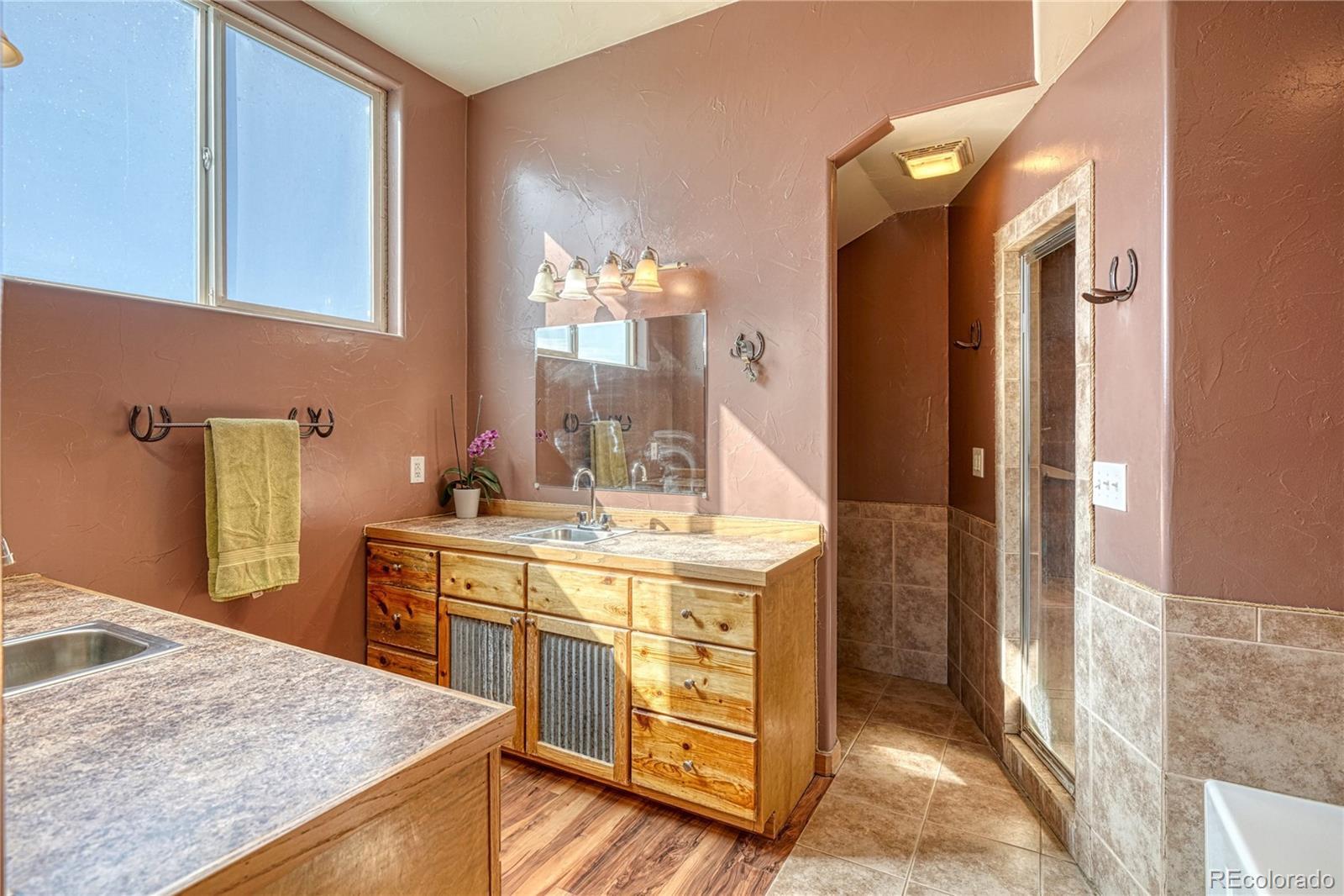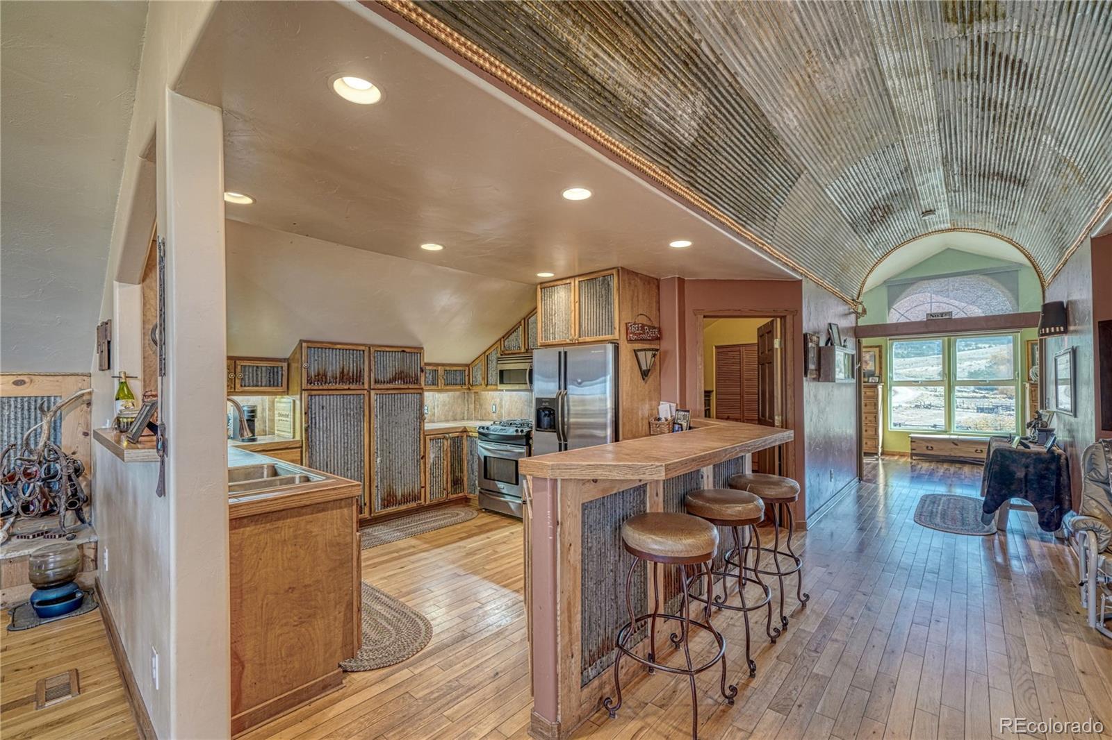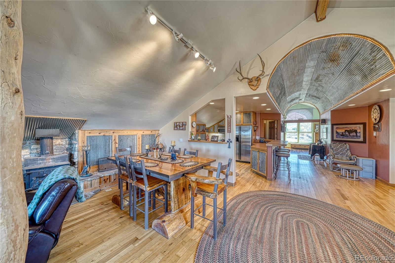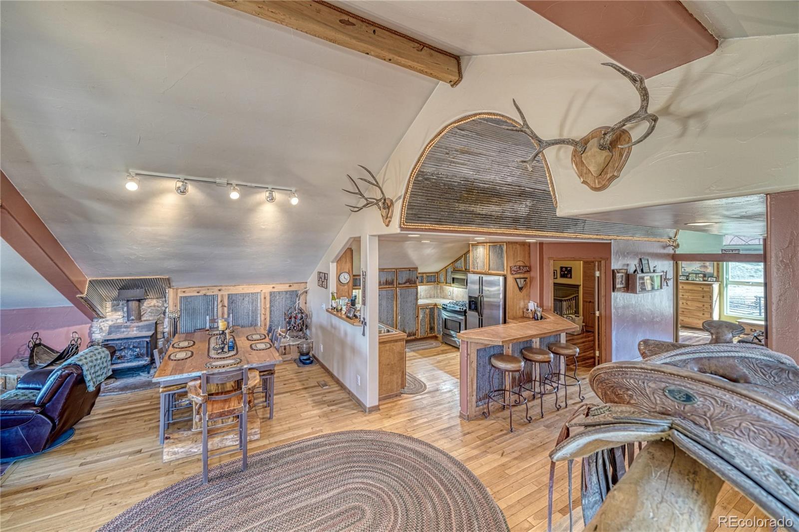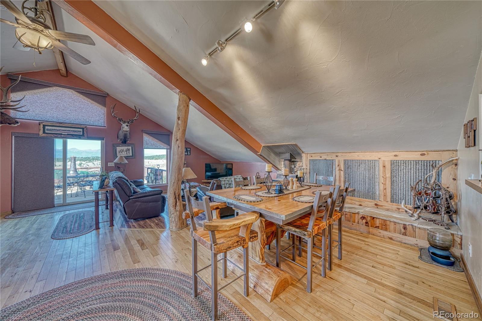 Discover a rare 70-acre equestrian estate nestled in the heart of Westcliffe, CO. This 1,800 sq ft barndominium seamlessly combines rustic charm with modern amenities, featuring two bedrooms and three bathrooms atop a fully equipped 5-stall barn. The interior boasts hardwood floors, cathedral ceilings, and a well-appointed kitchen, while the master suite offers full bathroom with tub & shower. Designed with the equestrian enthusiast in mind, the property includes a heated and insulated barn with five 12x12 stalls, a tack room, and additional metal outbuildings. These comprise a 40x12 RV/Horse Trailer storage with a concrete pad, a 50-amp RV hookup with sewer clean out, and a greenhouse. A 100x200 roping arena with a return alley, Antelope Creek, a spring-fed pond, and panoramic views of the Sangre de Cristo mountains enhance the property's allure. This exceptional horse property is close to national forest - Experience the perfect blend of comfort, functionality, and natural beauty in this unparalleled Westcliffe retreat.