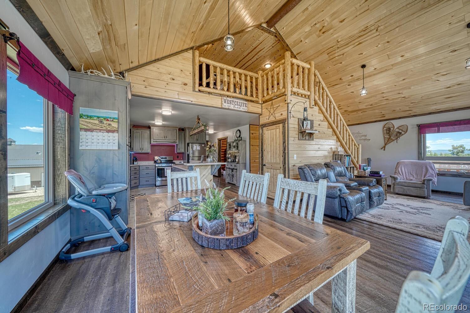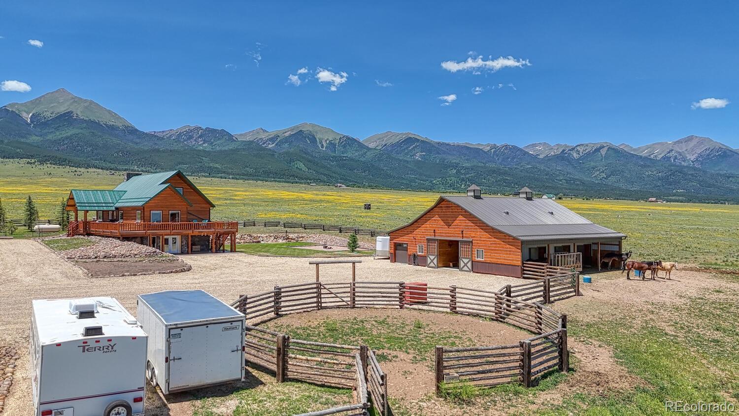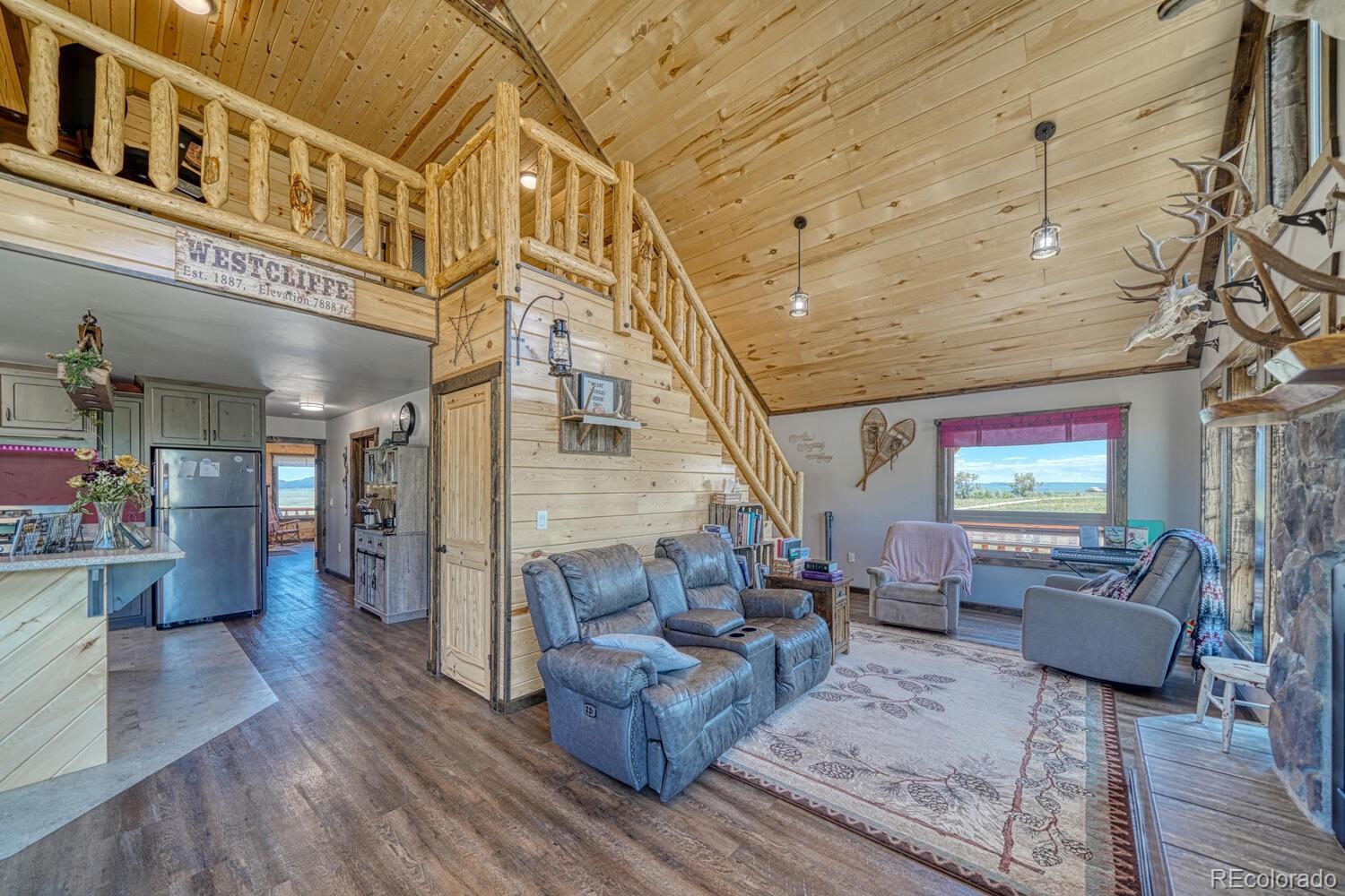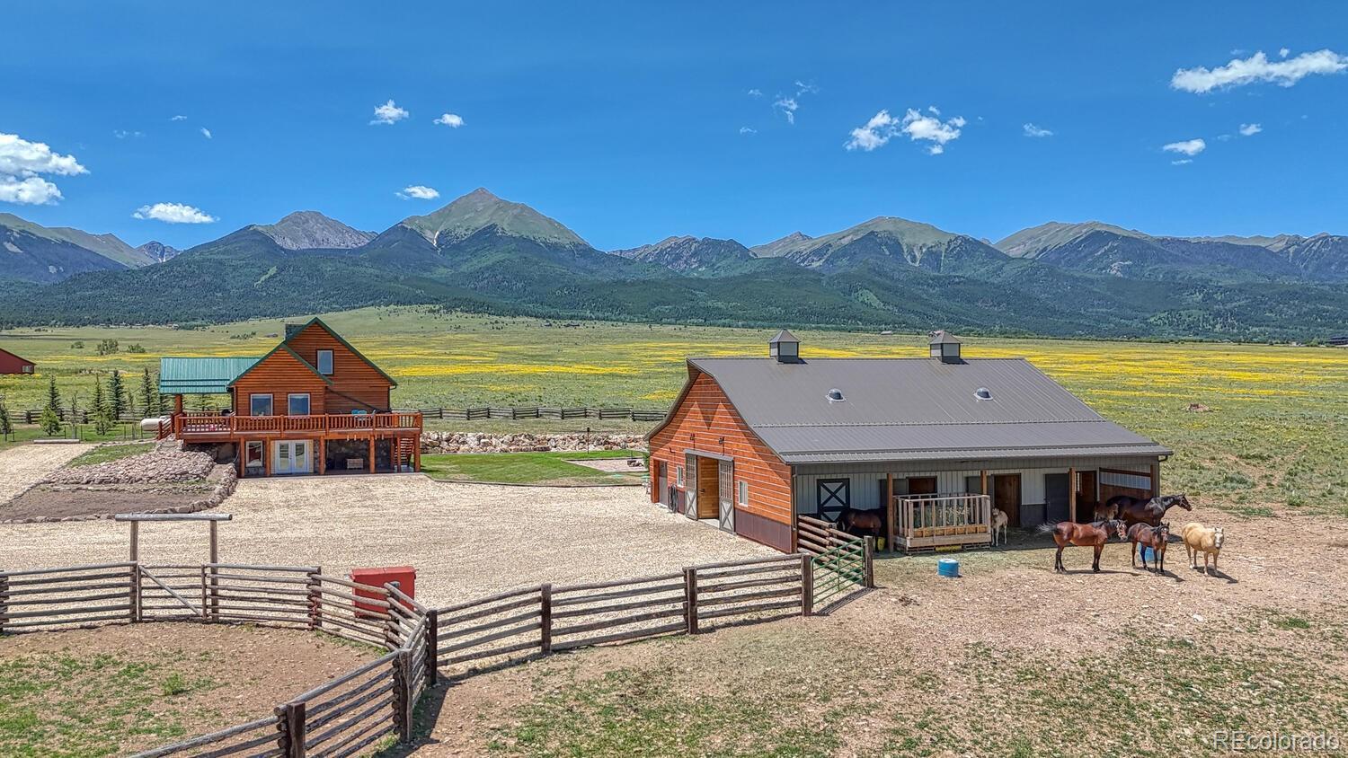 Welcome to a true Colorado masterpiece—an extraordinary 3,586 sq ft log home nestled on 35 pristine acres in the heart of the Wet Mountain Valley. Crafted for those who crave space, serenity, and spectacular views, this one-of-a-kind property delivers the ultimate in rustic luxury with all the amenities you could dream of. Whether you're gazing out at the snow-capped Sangre de Cristo Mountains from the wraparound deck, or riding across the lush, fenced pastures, this is the lifestyle you've been longing for. Step inside to soaring T&G vaulted ceilings, rich LVP flooring, and floor-to-ceiling windows that frame those iconic Colorado peaks like living artwork. The spacious living room centers around a massive stone gas fireplace, creating the perfect space to unwind or entertain in style. The kitchen offers custom cabinetry, soapstone countertops, and a layout that opens seamlessly into the dining room. Just down the hall, you'll find a private primary suite with direct access to the deck. The main level also includes a second bedroom and guest half bath. Head upstairs to a cozy loft and third bedroom, ideal for guests or a tucked-away office. Downstairs, the walk-out basement offers a world of possibilities. With a large multipurpose room, bonus room, full bath, laundry, ample storage, and a fully functional kitchenette, this space is tailor-made for a guest suite, in-law quarters, rec room, or home theater. But the appeal doesn’t end indoors. This property is an equestrian’s dream with a 4-stall stable featuring in-floor radiant heat, tack room, hay storage, and a loft space. A 30x40 garage/workshop provides ample room for tools, toys, or your next big project. The land is level and usable, complete with fenced pasture, a round pen, and excellent grazing. This is more than a home—it’s a legacy property. A place to gather, grow, and ground yourself in the beauty of the West. Call today to schedule a tour of this stunning property.