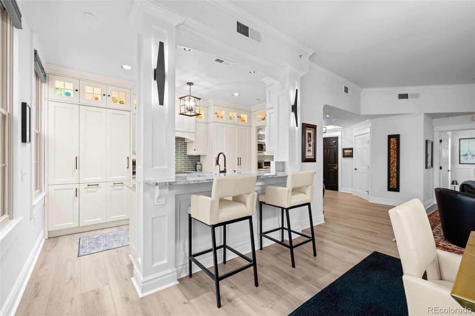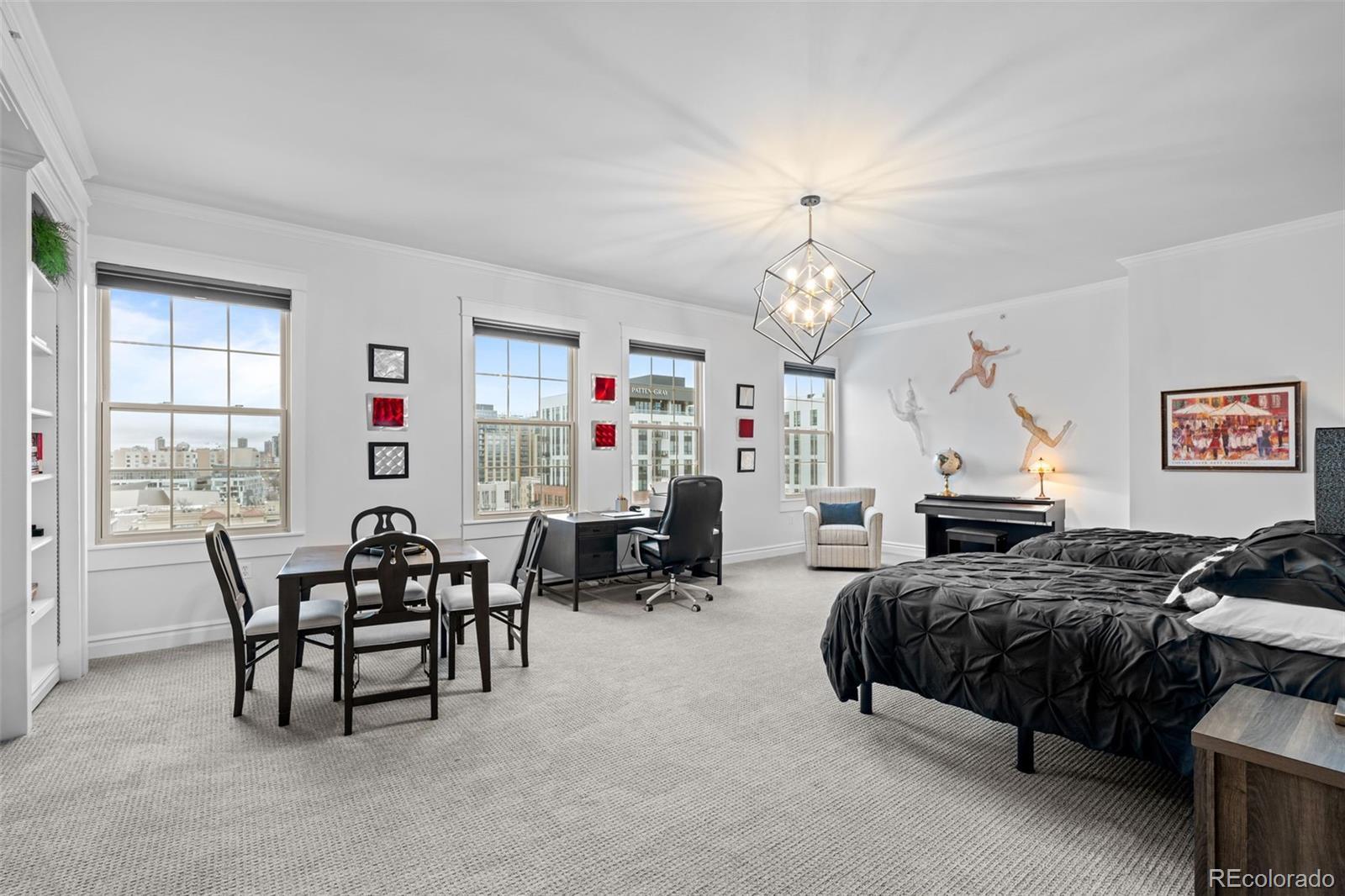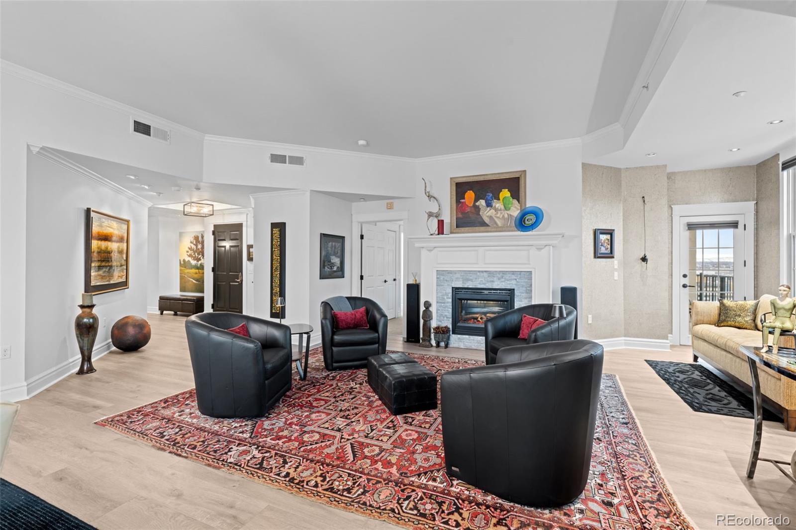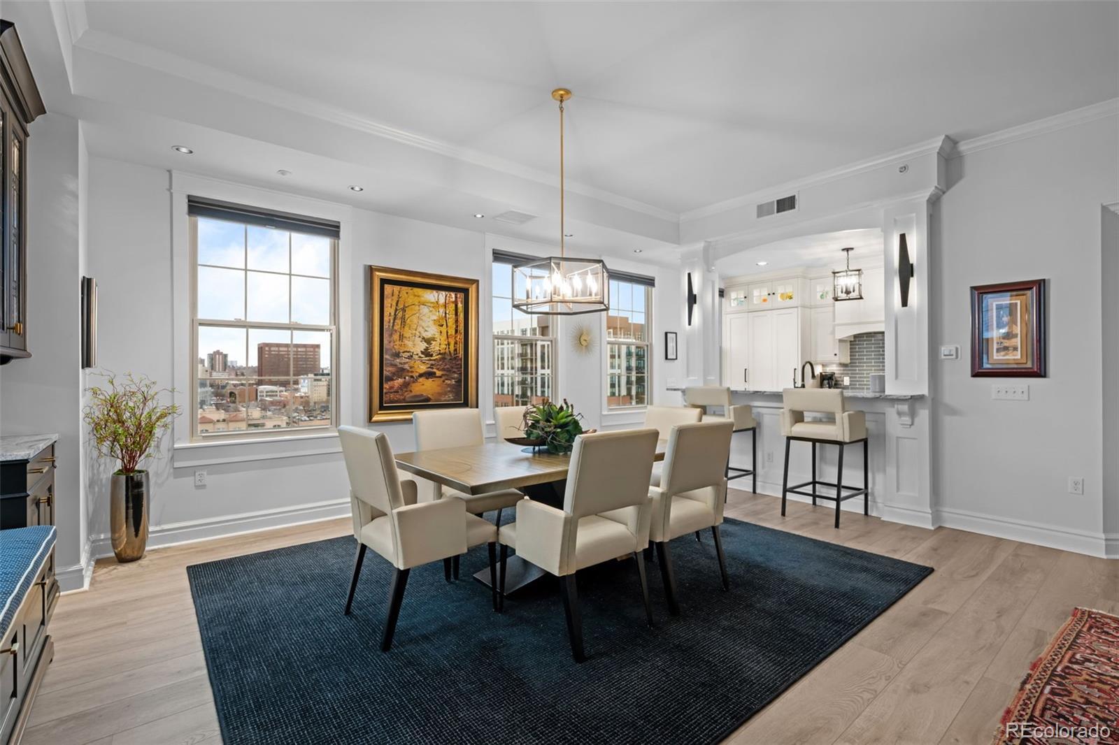 It's obvious the moment you step inside this home, nestled in the vibrant, eclectic Golden Triangle, that it has a different feel; it clearly stands apart from others. Swaths of sunlight flood the rooms, which are spotless and beautifully maintained. The views may catch your eye first—spacious and expansive, regardless of the time of day. High-quality, meticulous attention to detail is evident here. The William Ohs kitchen features top-tier appliances: Sub-Zero refrigerator drawers, a Thermador refrigerator and freezer, and a Fisher & Paykel 2-drawer dishwasher. Unique granite countertops, a Wolf oven and induction cooktop, and a convenient butler's pantry make this kitchen a chef’s dream. The adjoining dining room offers stunning views of the city and Denver’s finest museums. All eleven windows and one of the patio doors were replaced last year and include custom Hunter Douglas shades. The flooring was replaced throughout as part of an extensive remodel in 2024. The wide-open floor plan—perfect for showcasing art—is completed with crown moldings, deep baseboards, and custom woodwork throughout this gorgeous home. The lavish primary suite serves as a private sanctuary, with an oversized bedroom and a quiet sitting area. The expansive walk-in closet features rich custom cabinetry. The five-piece primary bathroom is a spa-like retreat, complete with a freestanding soaking tub, a rejuvenating steam shower, and exquisite countertops. A thoughtfully designed en-suite guest bedroom is comfortable and warm, featuring a stylish three-quarter bath and direct balcony access. The third bedroom, with a patio door to the balcony, is being utilized as a den/office by the current homeowners. Enjoy the close proximity to downtown—just blocks from the Kirkland, Clyfford, and Denver Art Museums—with everything you need: charming coffee shops, innovative galleries, gyms, and some of Denver’s favorite restaurants just steps away.