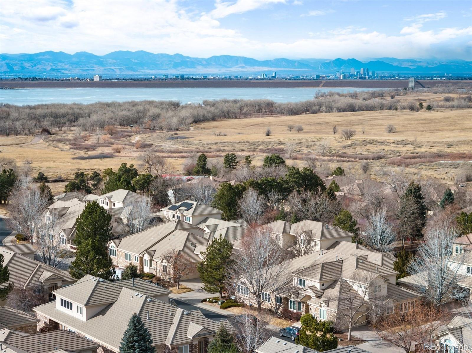 Set within one of the few gated communities that back directly to Cherry Creek Reservoir and only 30 minutes to DIA, this refined patio home offers a truly effortless lifestyle with rare access to open space. The residence includes 2,400 finished square feet plus an additional 1,800-square-foot basement, providing exceptional flexibility. Hardwood floors run throughout the main living areas, complemented by an updated kitchen with white cabinetry, quartz countertops, and tile backsplash that create a timeless, understated aesthetic. Vaulted ceilings and a fireplace anchor the living room, while plantation shutters add architectural polish. The main-floor primary suite features a five-piece bath and walk-in closet, with a second main-level bedroom ideal for guests or a home office. Upstairs, a secondary living room, guest bedroom, and bathroom offer a private retreat. A rebuilt deck, shaded by mature trees, extends the living space outdoors. HOA includes exterior maintenance, landscaping, snow removal, trash, recycling, and access to a clubhouse, pool, and hot tub. Step outside to direct reservoir trail access—a rare opportunity to find.