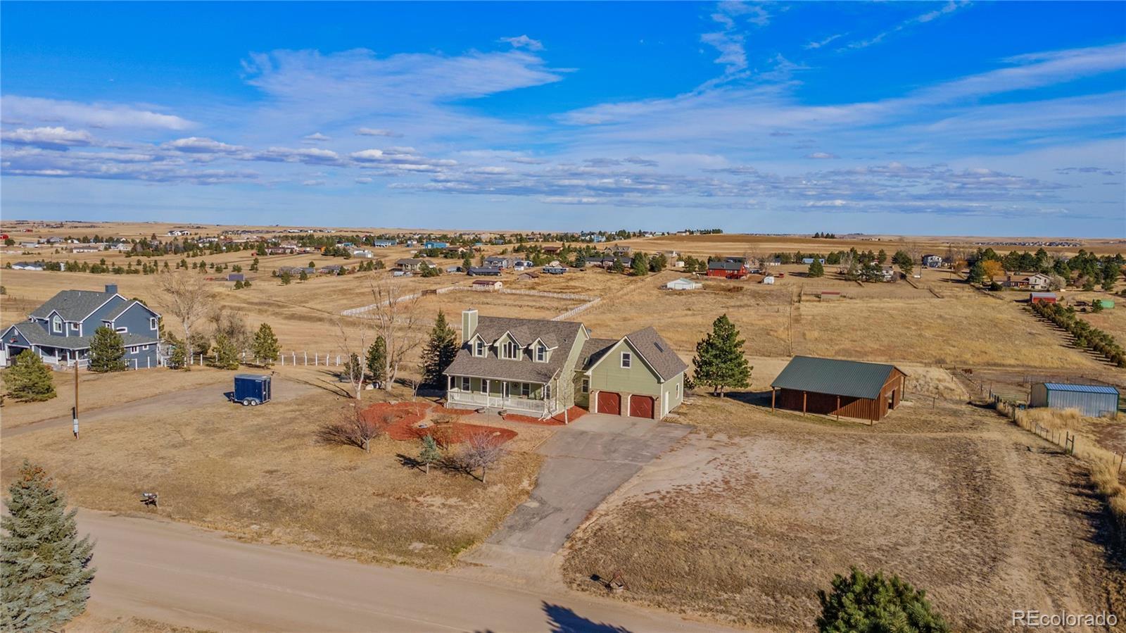 A rare find in Parker — nearly 4 acres with a 5-bedroom home, walkout basement, a large barn, Terraced Garden, and chicken coops, offering the space and freedom. Set on 3.89 acres with RA-2 zoning, this property delivers the perfect balance of privacy, flexibility, and everyday functionality. The 5-bedroom, 3+ bath layout provides room for home offices, guests, multi-purpose spaces, multi-generational living, or other extended living needs. The walkout basement creates natural separation for work, recreation, with full additional living areas. Over 3,800 finished square feet, this home lives large and adapts easily to modern lifestyles. Outside is where this property truly shines. The approx. 2,000 sq ft pole barn with 5 stalls and a tack room, pasture fencing, and a lean-to offers endless possibilities. From workshop space and equipment storage to hobby or recreational use. The land configuration allows you to explore possibilities such as gardens, small-scale agricultural use, animals, or other hobby farm elements, allowing you to fully explore the potential of the land. Enjoy the freedom of rural residential living while remaining within convenient reach of Parker amenities, shopping, dining, and major commuter routes. Served by well and septic and heated by propane, this property is ideal for buyers seeking space, privacy, and a lifestyle beyond traditional subdivisions. 5 bedrooms, acreage, a barn, and zoning flexibility — all in Parker. Properties offering this combination are increasingly rare. Experience the space, setting, and opportunity this home provides.