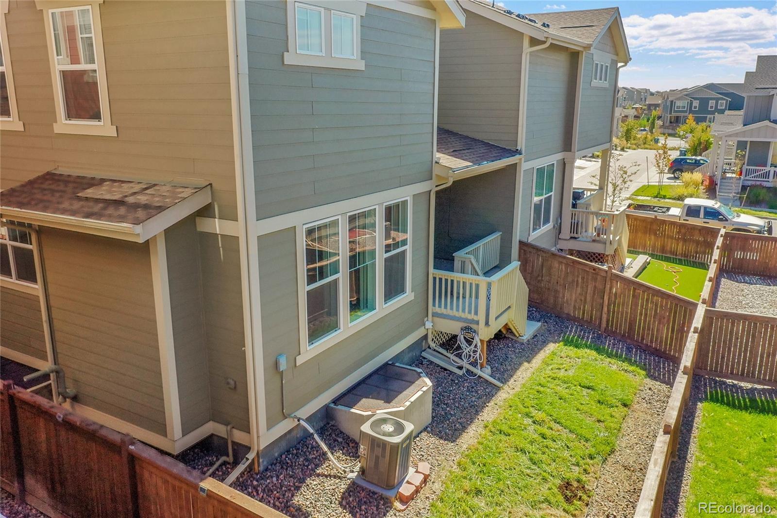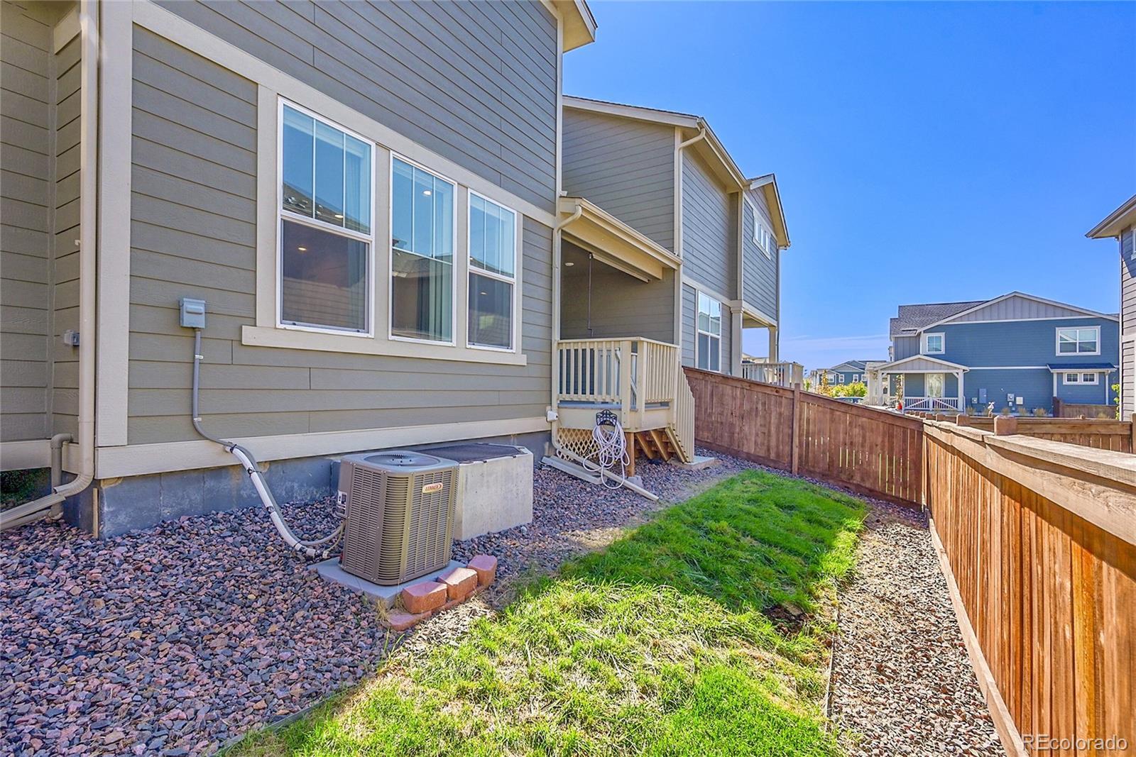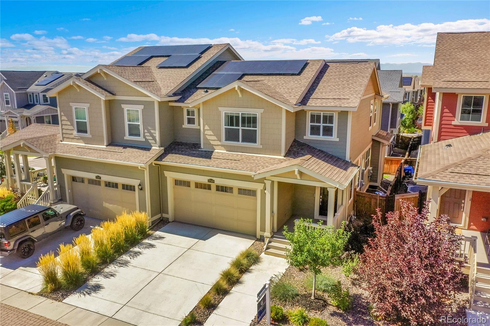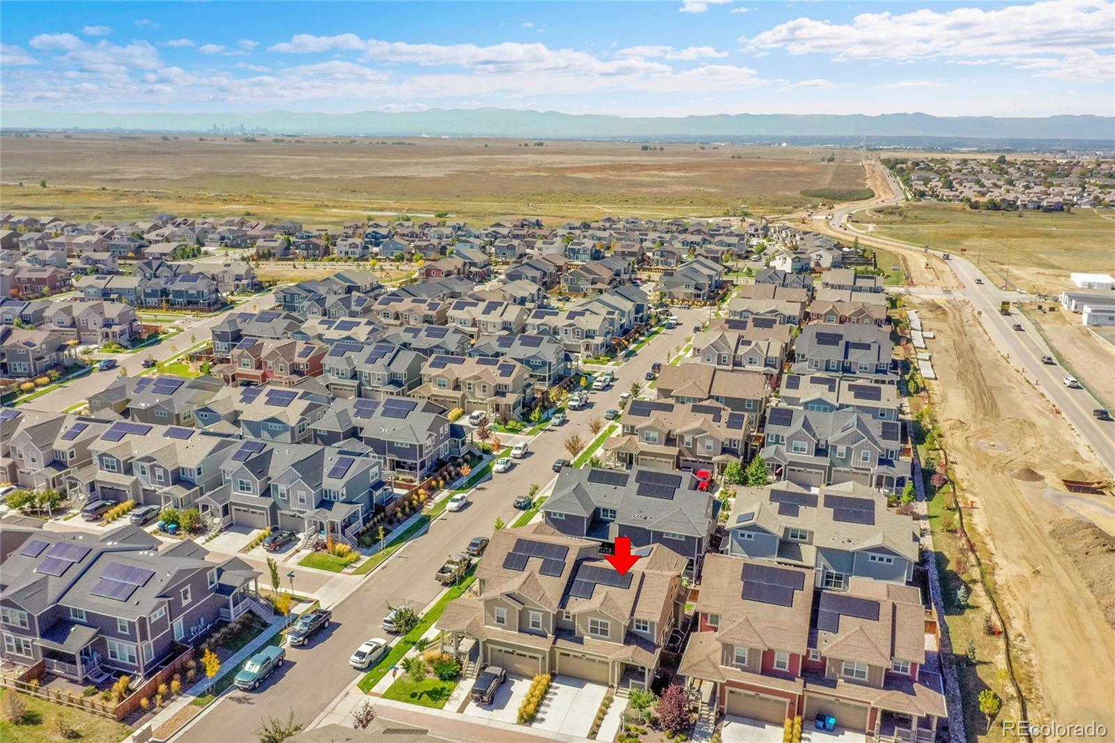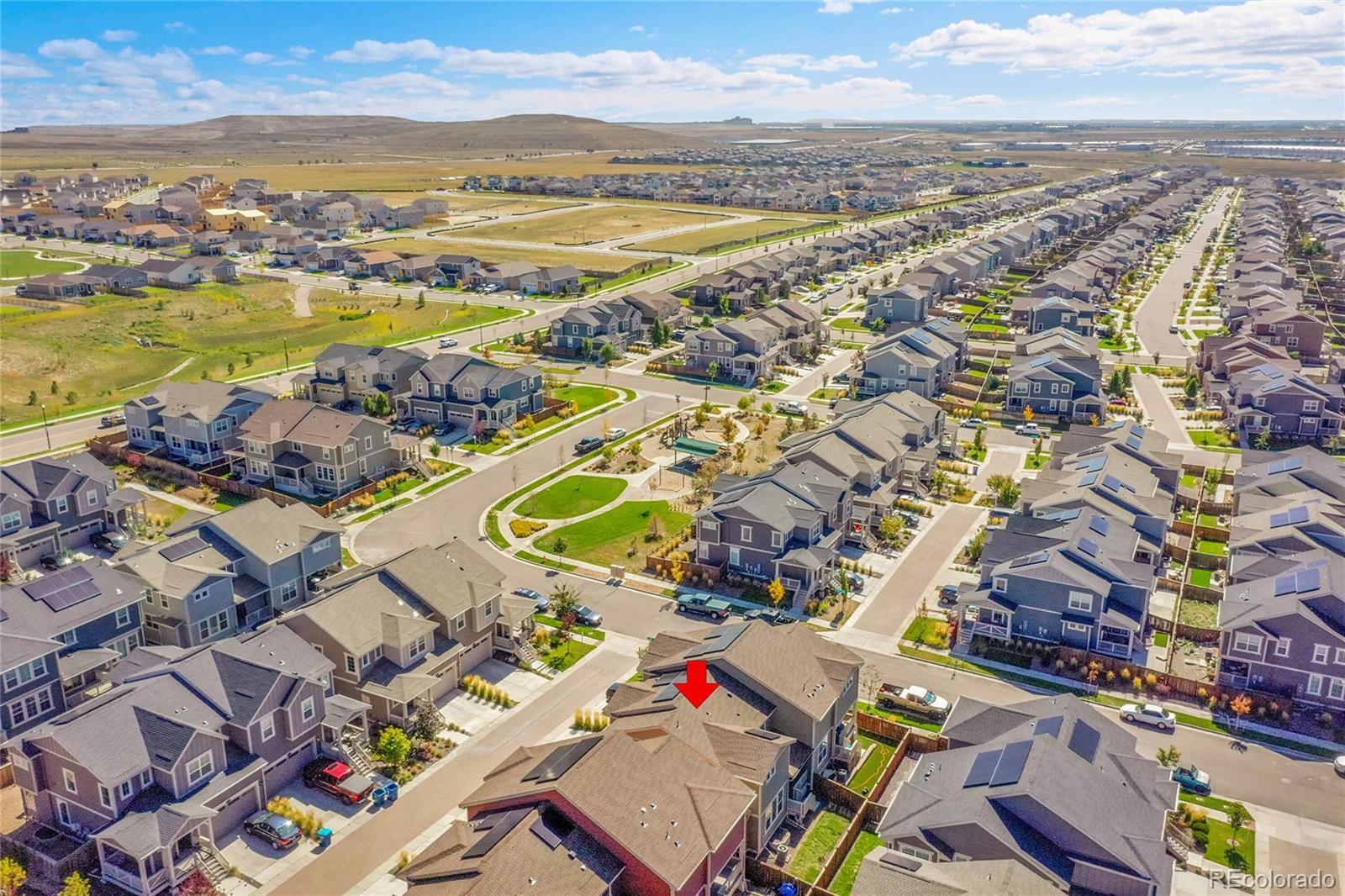 AMAZING DEAL! Like new and loaded with upgrades, this stunning 3-bedroom, 3-bath home in Buffalo Highlands blends modern style, smart design, and low-maintenance living—all with the privacy and feel of a single-family home. From the inviting front porch, step into an airy main level with soaring ceilings, oversized doors, abundant natural light, and sleek custom window coverings. The gourmet kitchen is the centerpiece, featuring a massive granite island with breakfast bar and sink, white shaker cabinets, granite countertops, glass tile backsplash, walk-in pantry, and pendant lighting. Stainless steel appliances include a gas range and upgraded refrigerator with interchangeable panels. High-grade luxury vinyl plank flooring flows throughout, while the main level also offers a spacious living room, powder bath, mud area, and extra storage. Upstairs, the primary suite is a private retreat with a tray ceiling, smart lighting, ceiling fan, and a huge walk-in closet. The en-suite bath is spa-inspired with dual granite vanities and a tiled shower with built-in seating. Two additional bedrooms, each with walk-in closets and ceiling fans, share a full bath, and the laundry is conveniently nearby. The unfinished basement, with two egress windows, offers endless possibilities for a rec room, office, or gym. Outdoor living shines with a covered Trex deck with shades, sprinklers, grass, and serene greenbelt views. Additional features include a fully drywalled 2-car garage, fully owned solar panels for energy savings, and a low-maintenance HOA. Located near parks, trails, Capstone K–8 Charter, Prairie Center shopping, DIA, and major routes—plus the new Rocky Vista High School coming soon across 96th. A pocket park with playground is just around the corner. This home is move-in ready, stylish, and designed for today’s lifestyle.