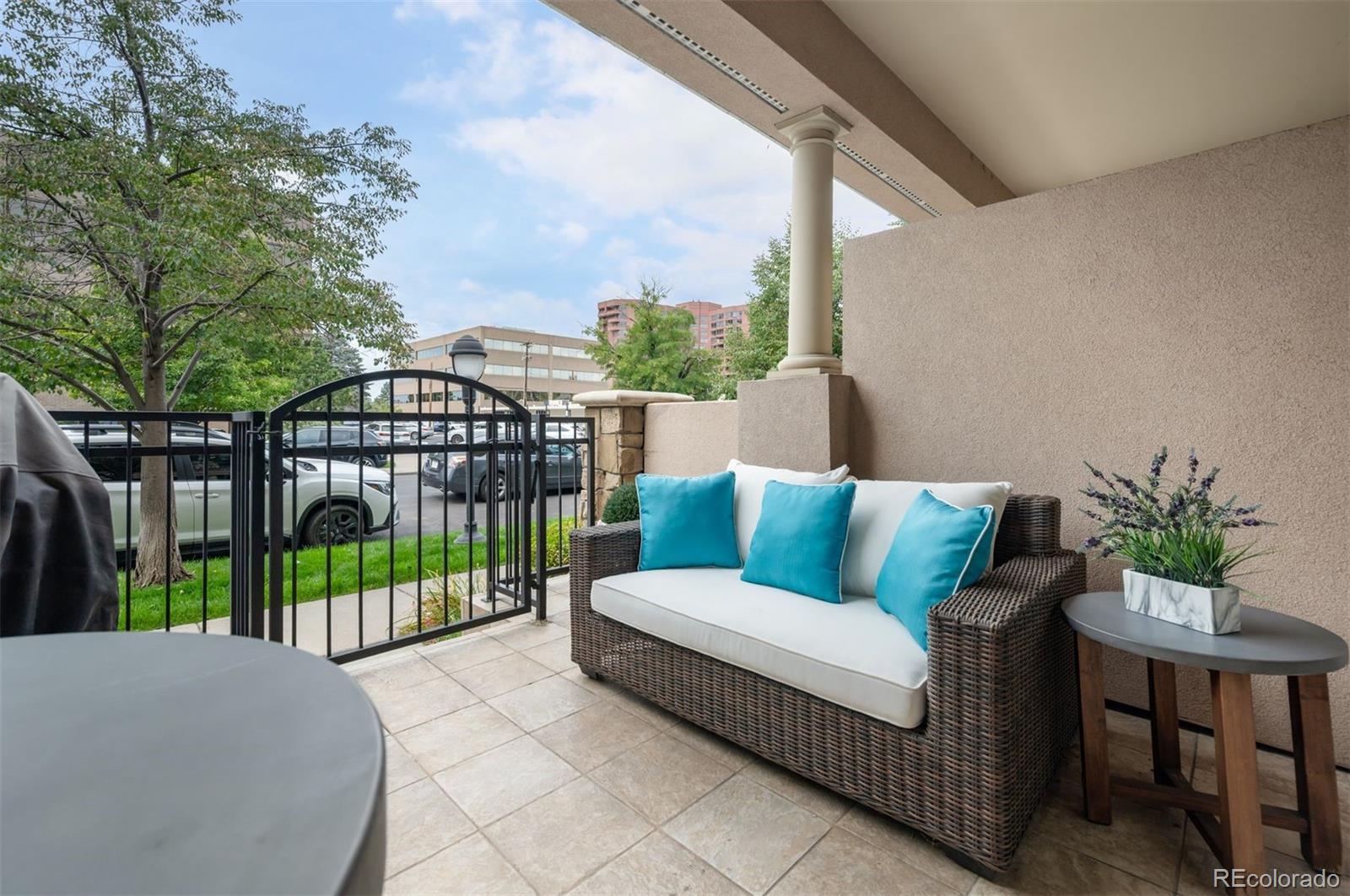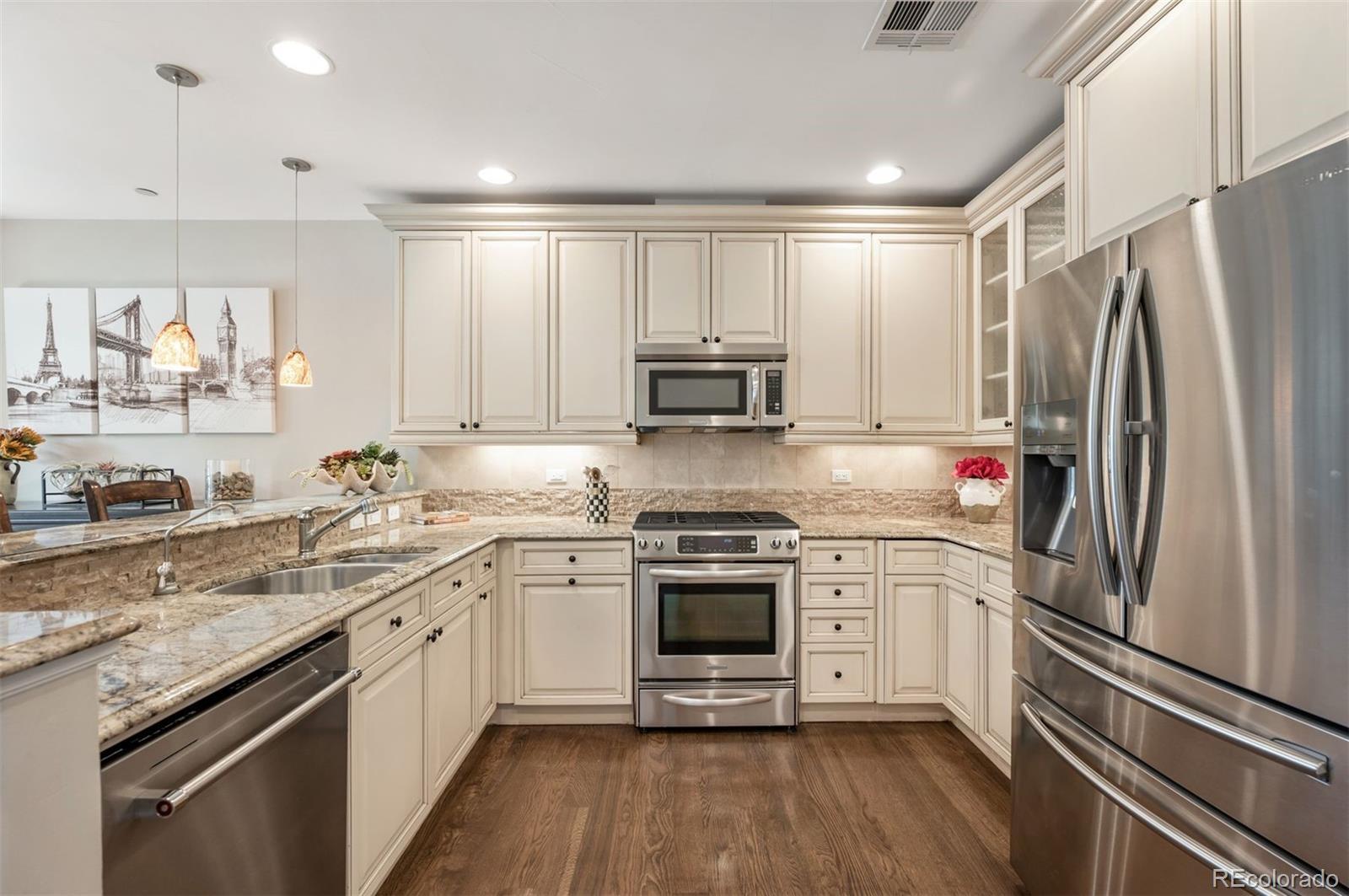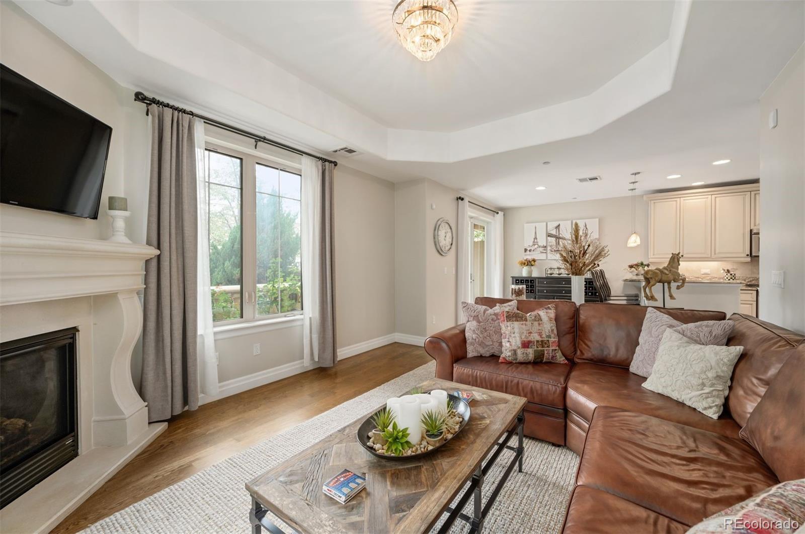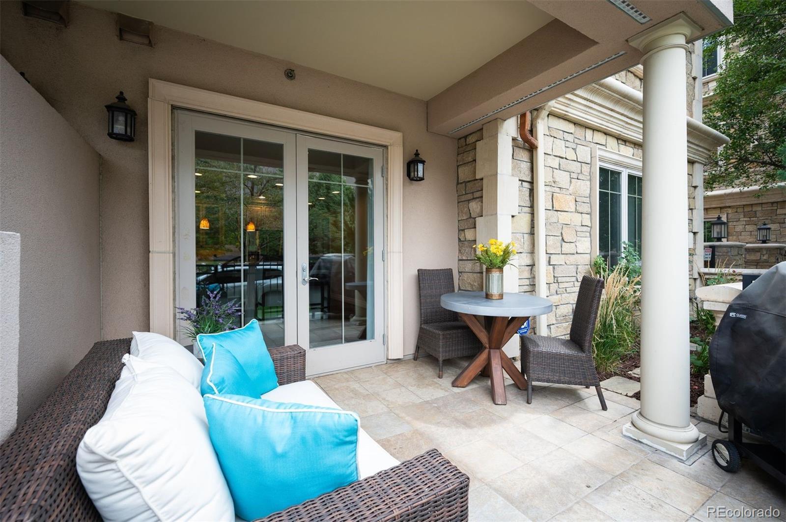 Cherry Creek perfection, ideally located close to world-class dining and shopping, plus parks, trails, downtown and more. This elegant condo features an open floorplan with beautiful kitchen showcasing stainless appliances, granite countertops, 42” cabinets, custom tile backsplash and breakfast bar. You’ll love the ambiance that the coffered ceiling and cozy gas fireplace creates in the great room. Entertaining is a dream with the French door off the dining area onto your covered patio that creates your own entrance without going through the lobby. The primary suite features a five-piece bath with custom shower and walk-in closet. The second bedroom, hall bath and laundry complete the layout. Two garage parking spaces and a storage closet provide plenty of room for all your gear. This delightful home is move-in ready, all you have to do is unpack and start enjoying that Cherry Creek lifestyle!