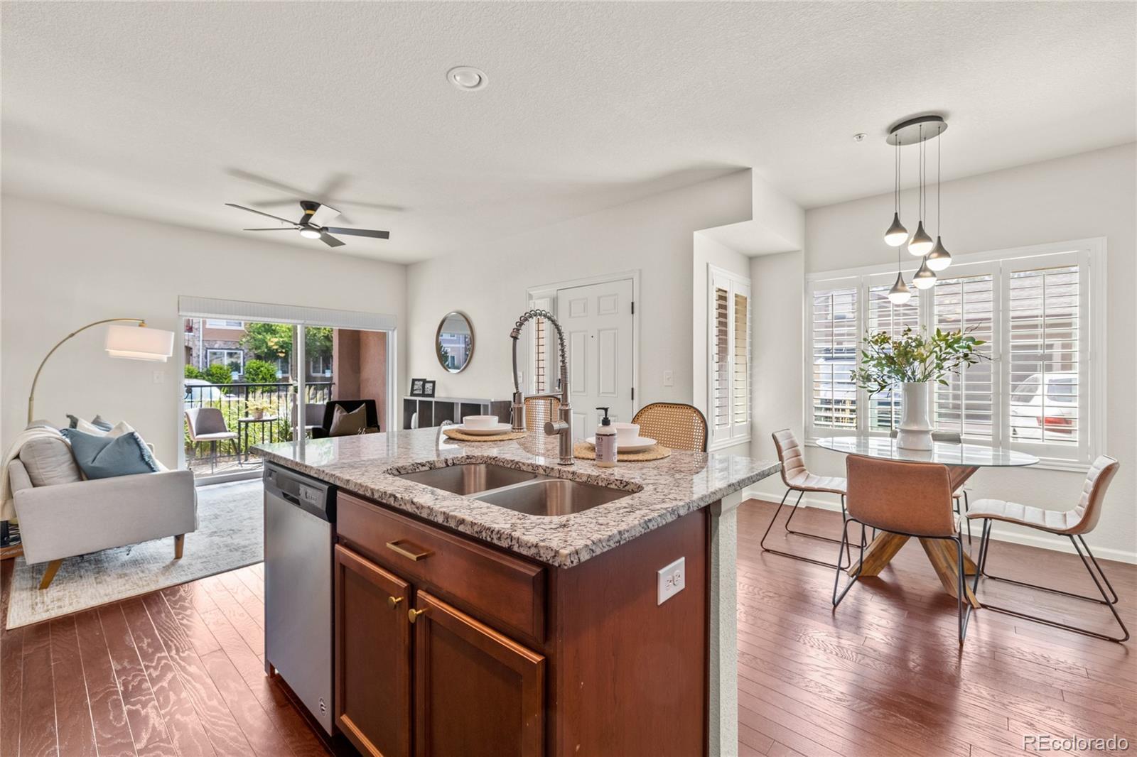** This property may qualify for multiple down payment assistance and homebuyer grant programs, including City of Aurora down payment assistance (up to 4–10% for qualifying buyers), CHFA programs, and select lender grant opportunities. Ask listing agent or your lender about eligibility ** Welcome home to this beautifully updated 2-bedroom, 2-bath garden-level condo in Aurora — priced to sell and packed with rare advantages. Offered at the same price as the unit above, but with the added bonus of a detached 1-car garage — one of only 20 units in the entire community with this highly sought-after feature — this opportunity truly stands out. In addition to the garage, the unit also includes a deeded parking space, giving you flexibility, storage, and long-term value that most units simply don’t offer. Inside, you’ll find an inviting open floorplan designed for both comfort and convenience. Recent updates include fully refreshed bathroom fixtures, brand-new hardware throughout, and custom plantation shutters that add timeless style and privacy. The spacious living and dining areas flow seamlessly to your private patio — perfect for morning coffee or evening relaxation. Recent community improvements include new roofs and windows completed in 2025, offering added peace of mind for years to come. Located just 1.5 miles from Anschutz Medical Campus (Children’s Hospital, VA, and UCHealth) and with easy access to I-225 and I-70, commuting and weekend travel are effortless.