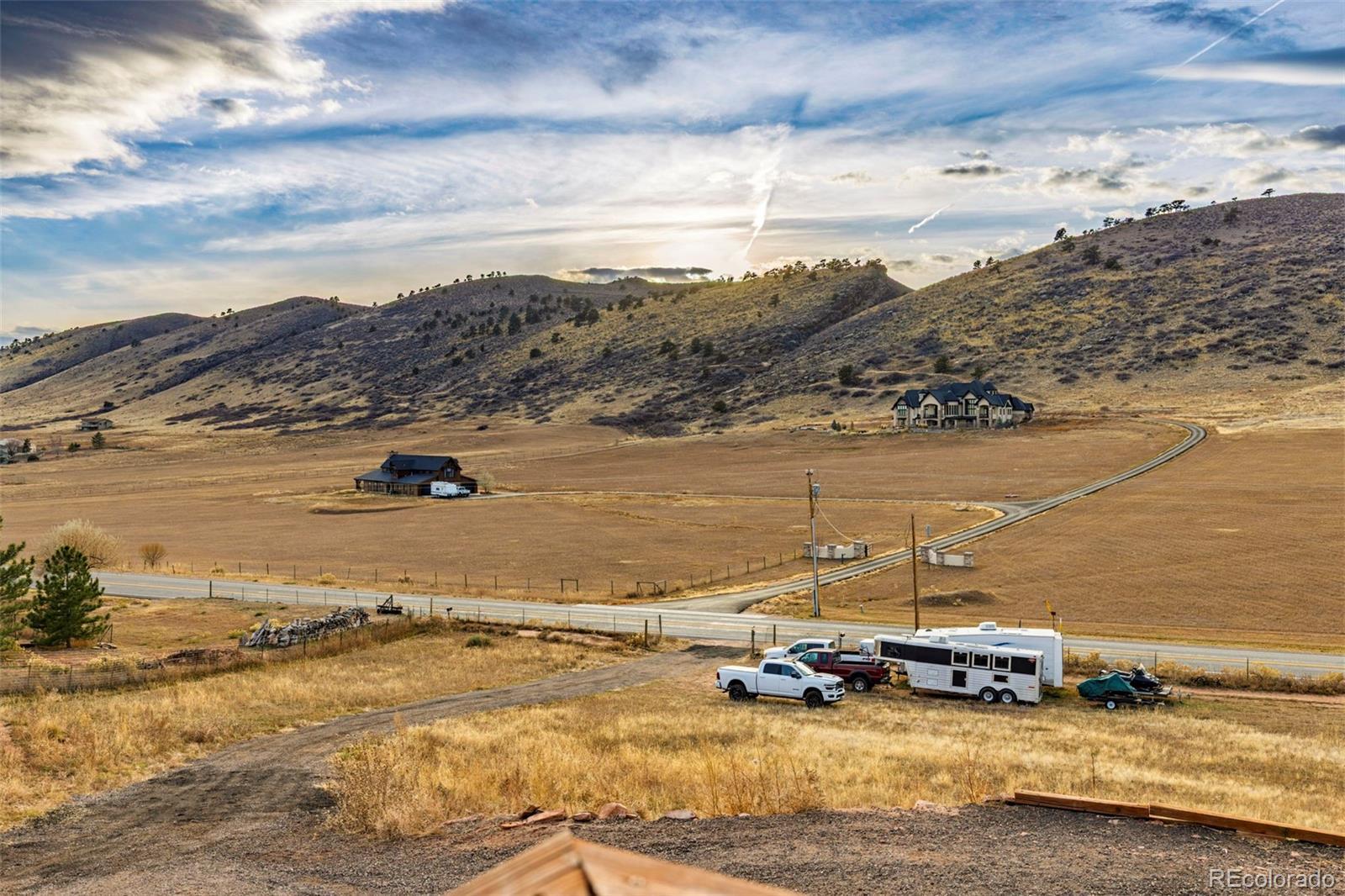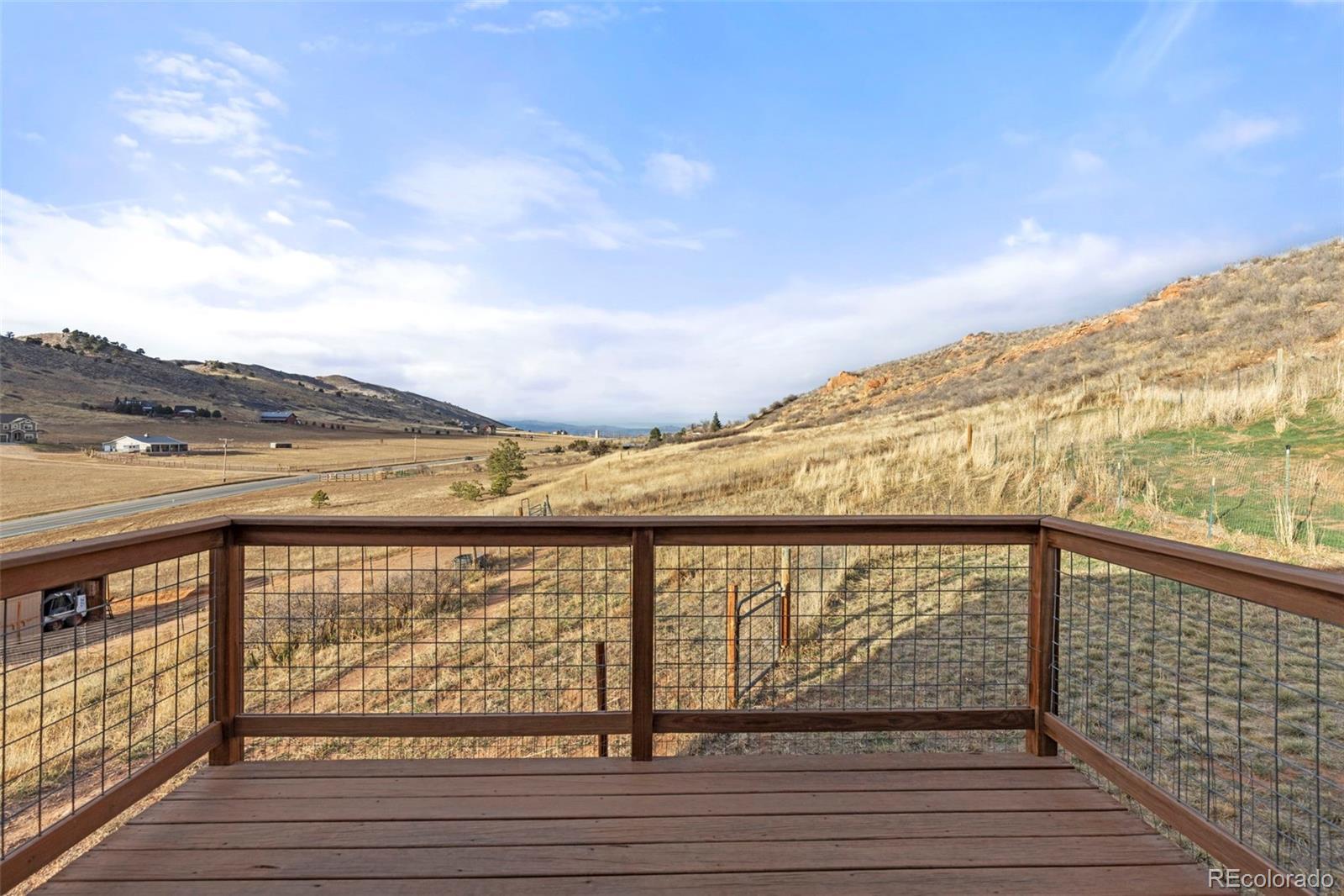 Experience the beauty of Northern Colorado from this raised-ranch home on 6 acres with sweeping foothill views and a peaceful country setting just outside Loveland and Berthoud. The exterior has been recently painted, vinyl plank flooring has been added, creating a welcoming feel throughout. The main level offers warm living spaces, including vaulted tongue-and-groove ceilings in the family room and two wood-burning fireplaces-one in the family room and one in the living room. Large windows capture the surrounding scenery, bringing light and views into the home. Outdoor spaces are a true highlight, with a large front porch and a back wood deck overlooking the fenced yard-perfect for enjoying sunsets, open skies, and the tranquil Colorado landscape. The property also includes a fenced area for horses along with an additional storage building, providing flexibility for animals, equipment, or hobbies. All set in a highly desirable western location, just 10 minutes from Carter Lake and 16 minutes to Downtown Loveland for restaurants, shopping, and local amenities. This property offers room to roam, stunning natural surroundings, and convenient access to everything Northern Colorado has to offer.
