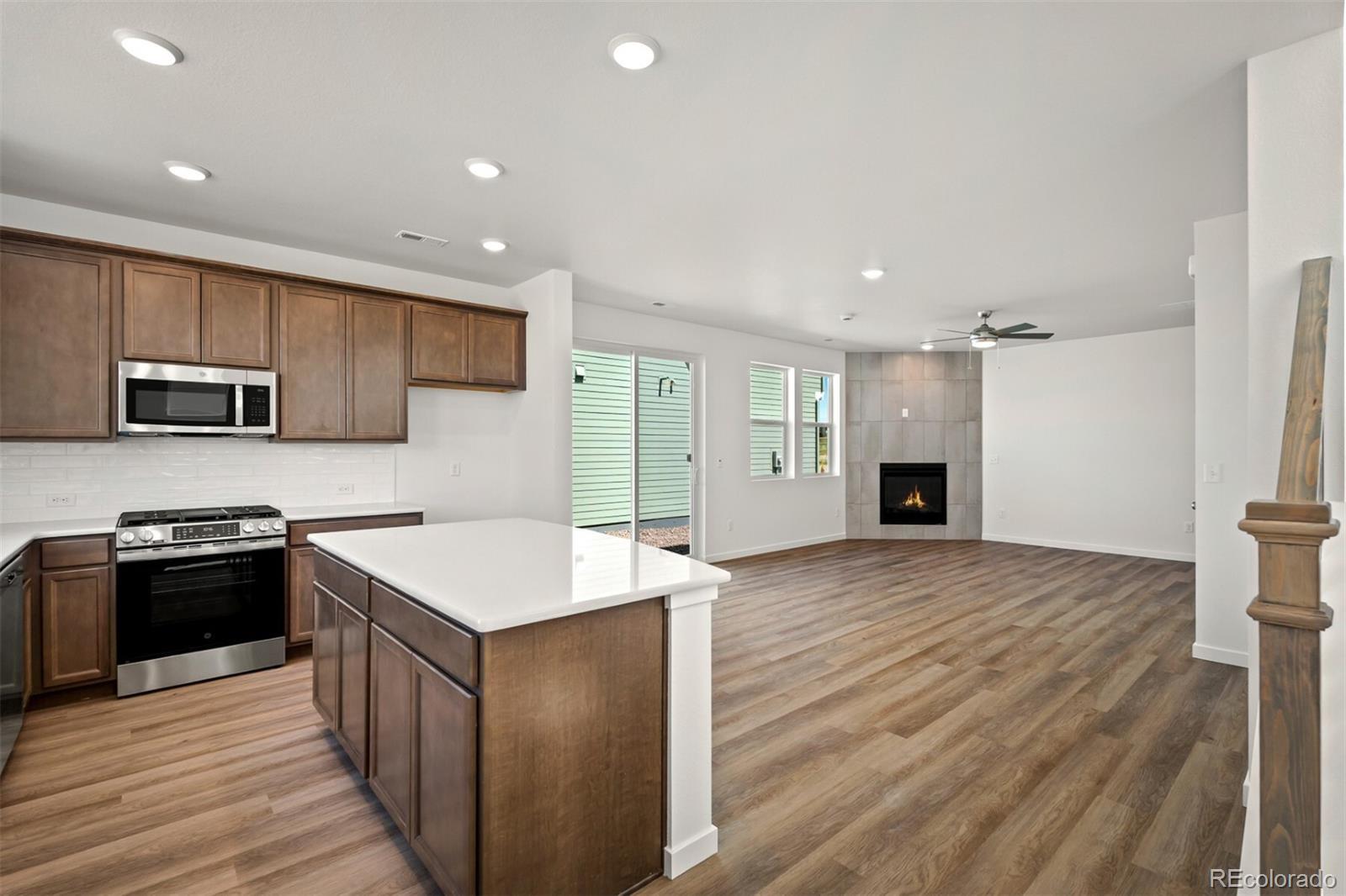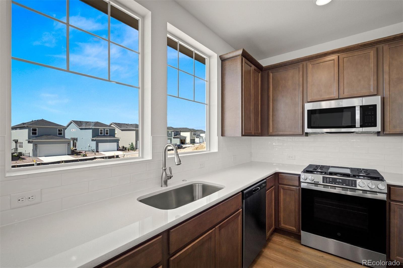 Welcome to your private retreat in the heart of Wolf Ranch, where sophisticated design seamlessly blends with exceptional convenience in this thoughtfully crafted two-story home. Nestled within the highly desirable District 20 school district in Colorado Springs, CO, this home boasts three bedrooms, two and a half baths, and a host of luxurious features that elevate everyday living. Upon entering, you’re immediately welcomed into a warm and inviting atmosphere. Rich luxury vinyl plank flooring flows gracefully throughout the main level while expansive windows and a sliding glass door bathe the living area in natural light, creating a bright and airy space perfect for both relaxation and entertaining. The chef-inspired kitchen serves as the heart of the home, showcasing elegant 42-inch upper cabinetry, pristine quartz countertops, and a spacious island—ideal for meal prep or casual gatherings. Premium GE stainless steel appliances offer both style and functionality, making cooking a true pleasure. The adjoining dining area provides a perfect setting for meals, while the open-concept design effortlessly flows into the cozy living room, perfect for quiet evenings or hosting friends. Step outside to the private xeriscaped side yard, an outdoor haven designed for minimal upkeep and maximum enjoyment. When it’s time to unwind, the spa-like Owner’s Retreat offers a true haven. Indulge in the spa-inspired Super Shower, where high-end finishes transform your daily routine into a rejuvenating experience. Thoughtful upgrades and meticulous details throughout the suite create a serene atmosphere, ensuring a peaceful escape at the end of each day.