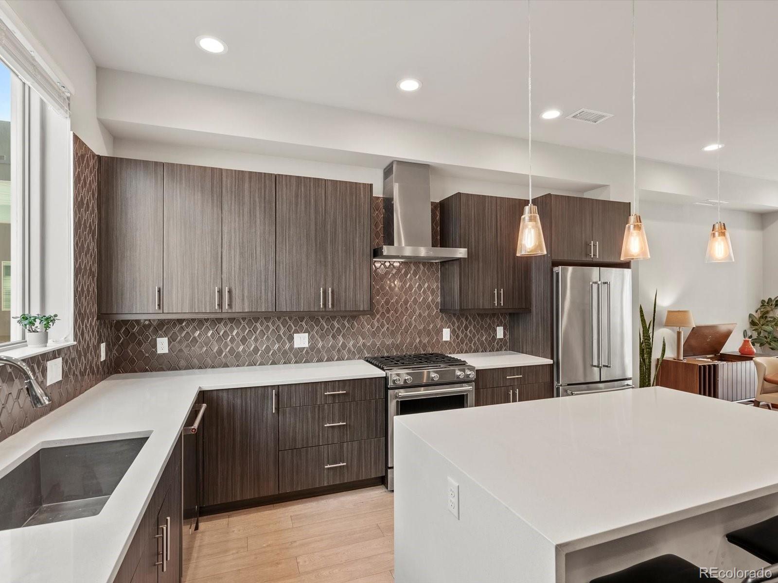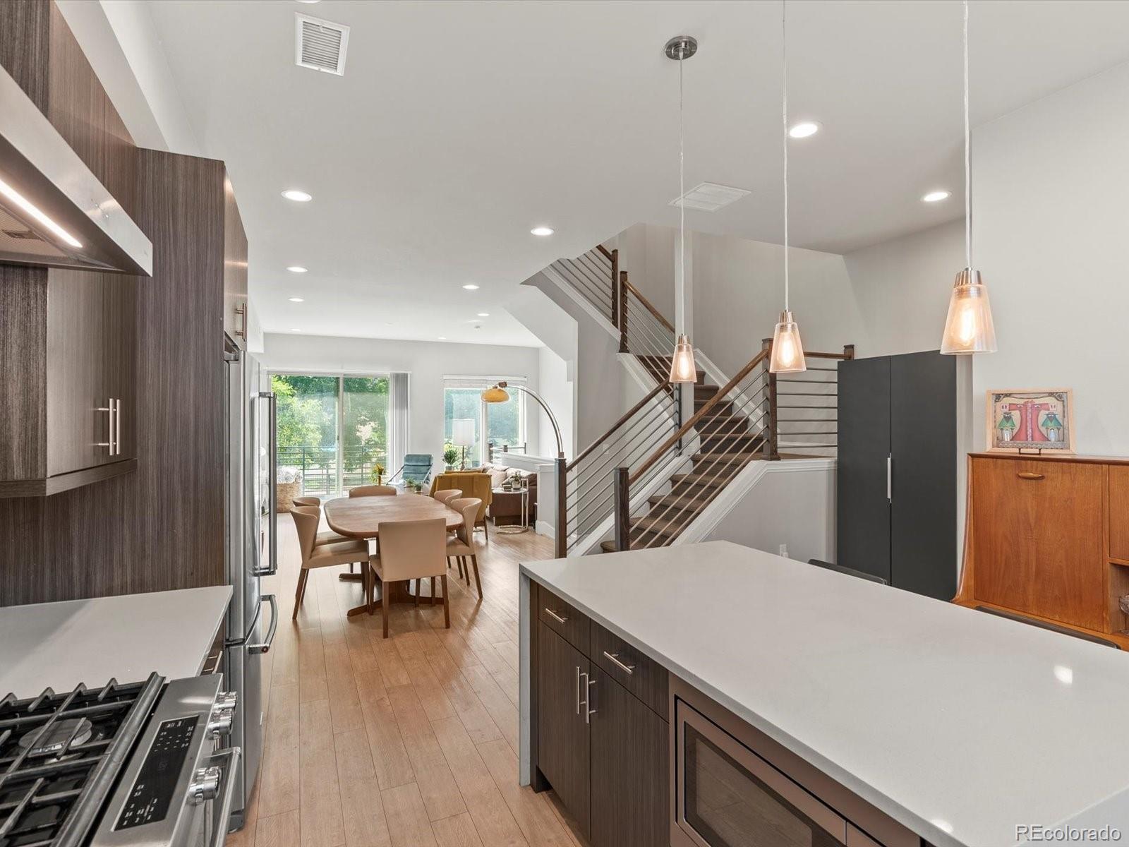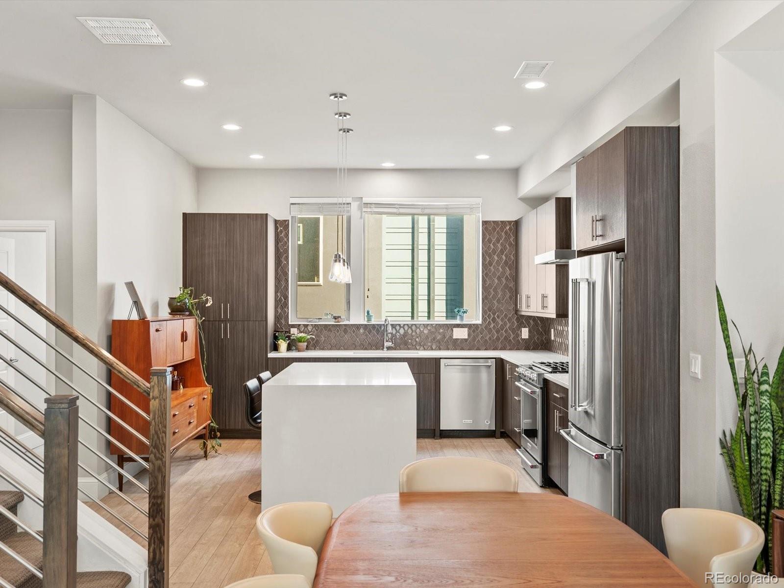 Welcome to 1014 Acoma Street, a modern 3-bedroom, 4-bath townhome in the heart of Denver’s Golden Triangle. As you enter, you’ll find a first-floor bedroom with a private bath, ideal for guests or a home office that’s separate from the main living area. The main floor features a gourmet kitchen with a large island, modern cabinetry, high-end KitchenAid appliances, and quartz counters with plenty of workspace. The kitchen flows seamlessly into the open living and dining areas, along with a convenient half bath for guests. Upstairs, both the primary suite and additional bedroom offer large, bright windows, walk-in closets, and spa-like ensuite baths, with laundry located just outside the bedroom doors. The rooftop patio delivers iconic views of the mountains and Downtown Denver, and is ready for your hot tub! Additional features include an attached 2-car garage, central A/C - newer furnace, and your party wall agreement includes water and grounds maintenance. The Golden Triangle offers unmatched access to Denver’s top cultural, dining, and entertainment destinations. Tree-lined streets lead to art galleries, museums, and some of the city’s most celebrated restaurants and coffee shops. Spend your afternoons exploring the Denver Art Museum, enjoying festivals in Civic Center Park, or catching a Rockies game at Coors Field. Evenings offer the choice of relaxing on your rooftop with sunset views, sampling the latest restaurants, or experiencing the neighborhood’s distinctive nightlife. With a constant buzz of new development, the area blends historic charm with modern energy, offering an urban lifestyle surrounded by culture, dining, and events, all just minutes from Colorado’s outdoor adventures. Be sure to check out the exciting Acoma Street redevelopment project, part of the city’s visionary 5280 Trail, which will bring even more connectivity and vibrancy to the neighborhood.
