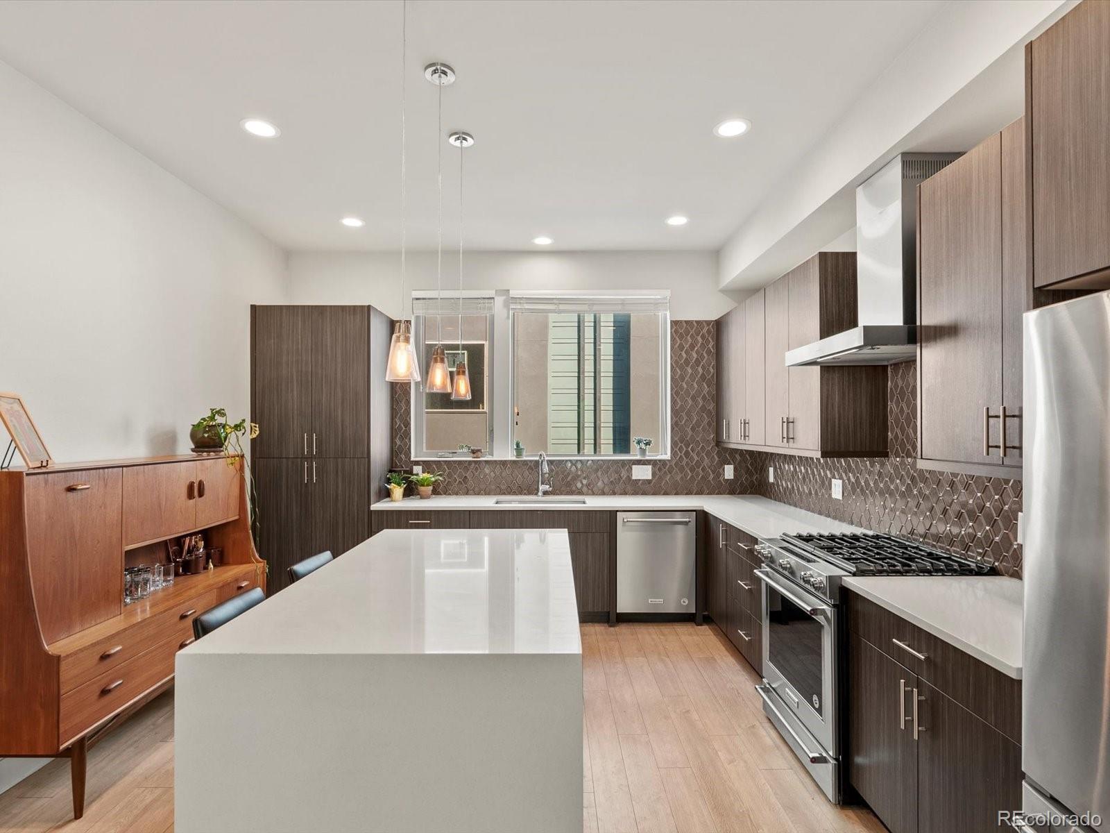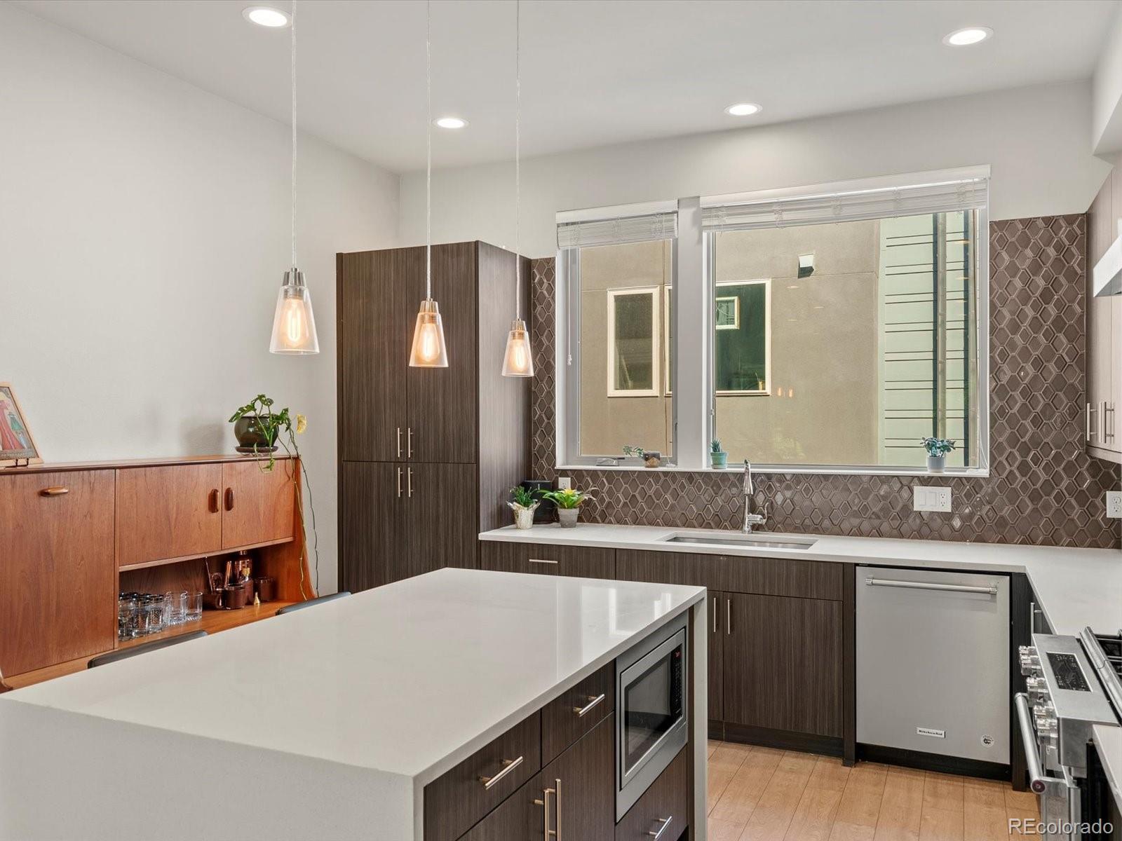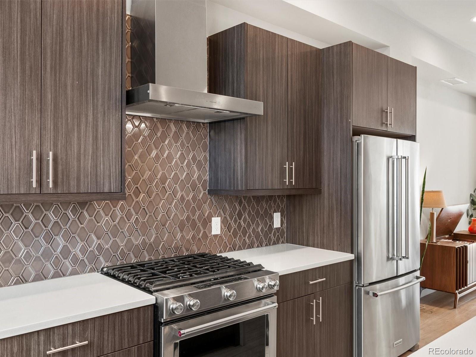 Welcome to 1014 Acoma Street, a modern 3-bedroom, 4-bath townhome in the heart of Denver’s Golden Triangle. As you enter, you’ll find a first-floor bedroom with a private bath, ideal for guests or a home office that’s separate from the main living area. The main floor features a gourmet kitchen with a large island, modern cabinetry, high-end KitchenAid appliances, and quartz counters with plenty of workspace. The kitchen flows seamlessly into the open living and dining areas, along with a convenient half bath for guests. Upstairs, both the primary suite and additional bedroom offer large, bright windows, walk-in closets, and spa-like ensuite baths, with laundry located just outside the bedroom doors. The rooftop patio delivers iconic views of the mountains and Downtown Denver, and is ready for your hot tub! Additional features include an attached 2-car garage, central A/C - newer furnace, and your party wall agreement includes water and grounds maintenance. The Golden Triangle offers unmatched access to Denver’s top cultural, dining, and entertainment destinations. Tree-lined streets lead to art galleries, museums, and some of the city’s most celebrated restaurants and coffee shops. Spend your afternoons exploring the Denver Art Museum, enjoying festivals in Civic Center Park, or catching a Rockies game at Coors Field. Evenings offer the choice of relaxing on your rooftop with sunset views, sampling the latest restaurants, or experiencing the neighborhood’s distinctive nightlife. With a constant buzz of new development, the area blends historic charm with modern energy, offering an urban lifestyle surrounded by culture, dining, and events, all just minutes from Colorado’s outdoor adventures. Be sure to check out the exciting Acoma Street redevelopment project, part of the city’s visionary 5280 Trail, which will bring even more connectivity and vibrancy to the neighborhood.