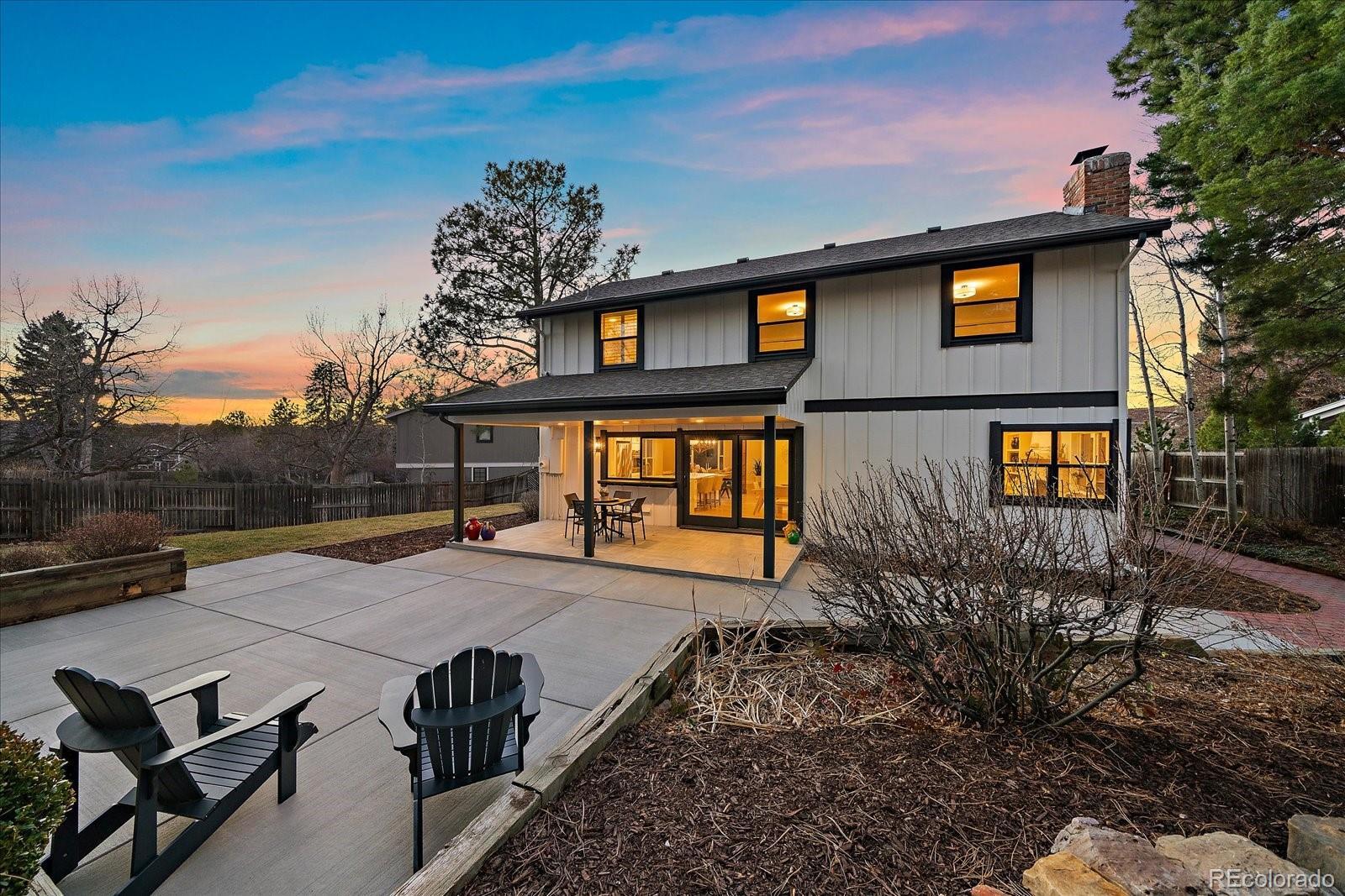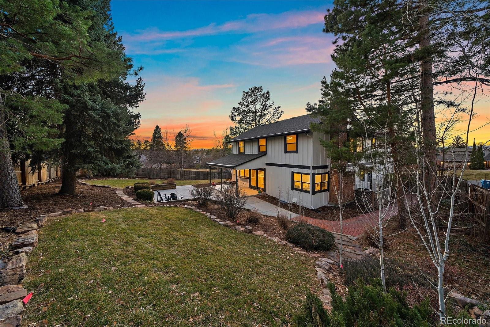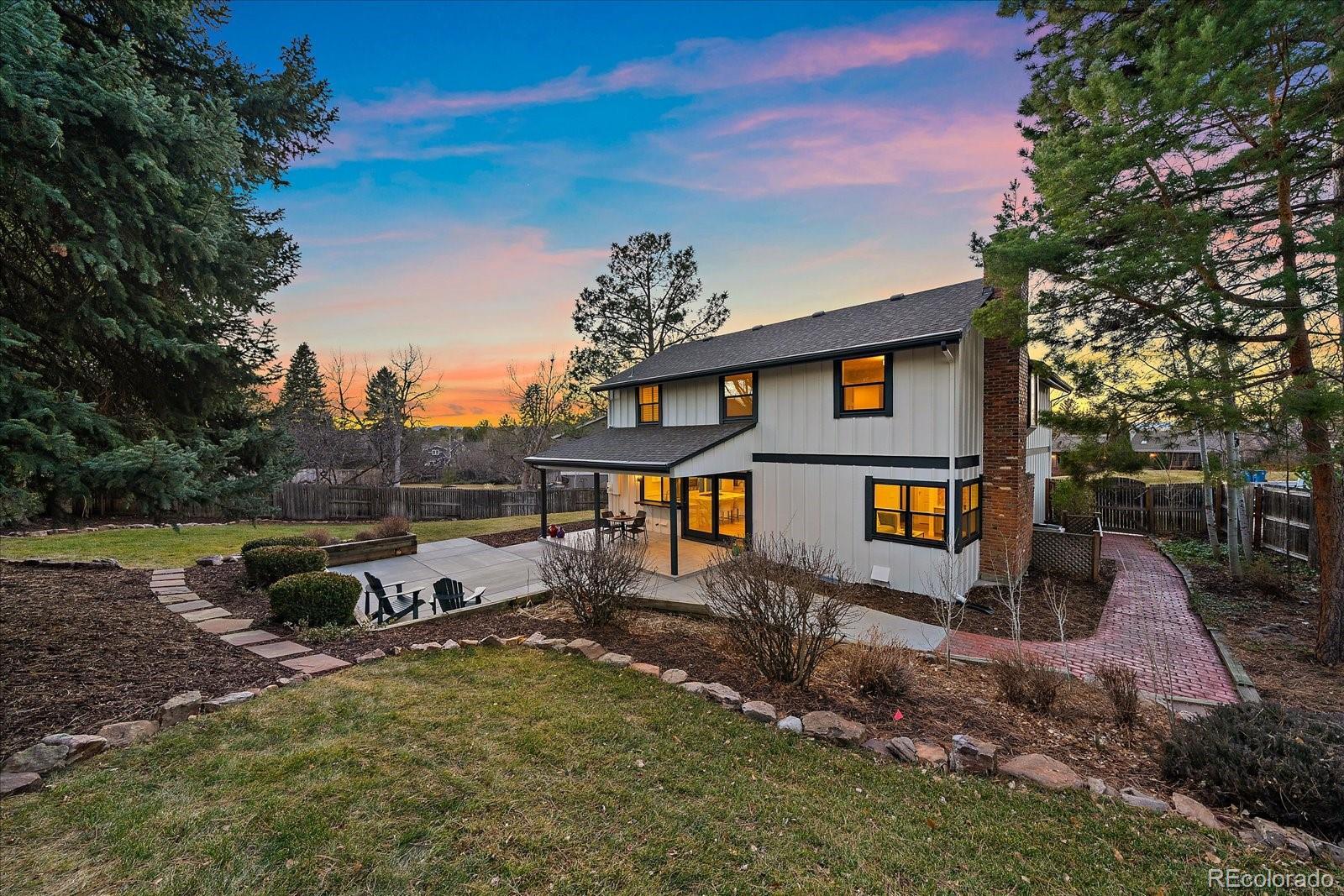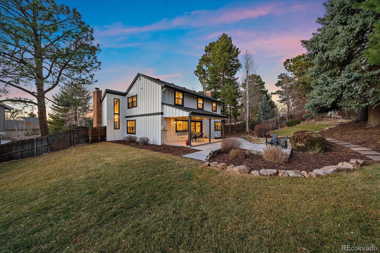Stunning modern renovation in The Knolls with mountain views. This custom two-story home features an open concept floor plan perfect for entertaining with white oak hardwood floors throughout. Upon entering the home, your eyes will be drawn to the beautiful custom fireplace and beautiful beams. Large Chef’s kitchen with high-end appliances and an over-sized Island open to dining room. Primary suite has a large walk-in closet with custom shelving and en-suite bath with oversized shower with dual rain heads and handhelds. Second level features three additional bedrooms, one includes an en-suite bath, second full bath and laundry with washer/dryer. All new windows. Spacious entertaining patio and a large backyard with all new landscaping and storage shed. The finished basement includes abundant space with a full bath, wet bar and storage. Home is steps away from greenbelt and the Dry Creek Trail, Cherry Knolls Park, neighborhood pool, tennis/pickleball courts and top-rated LPS schools.