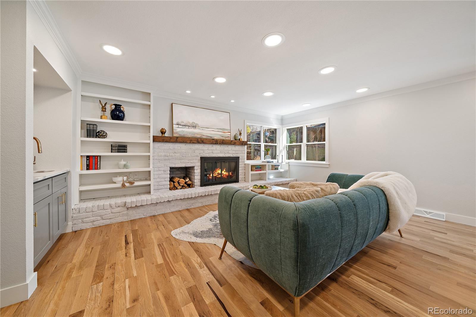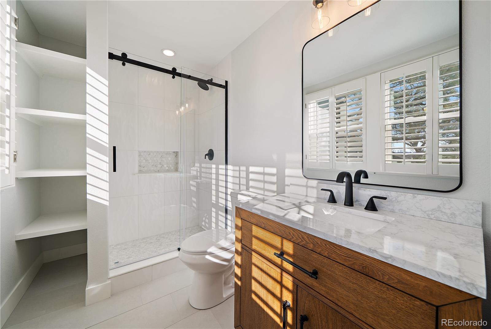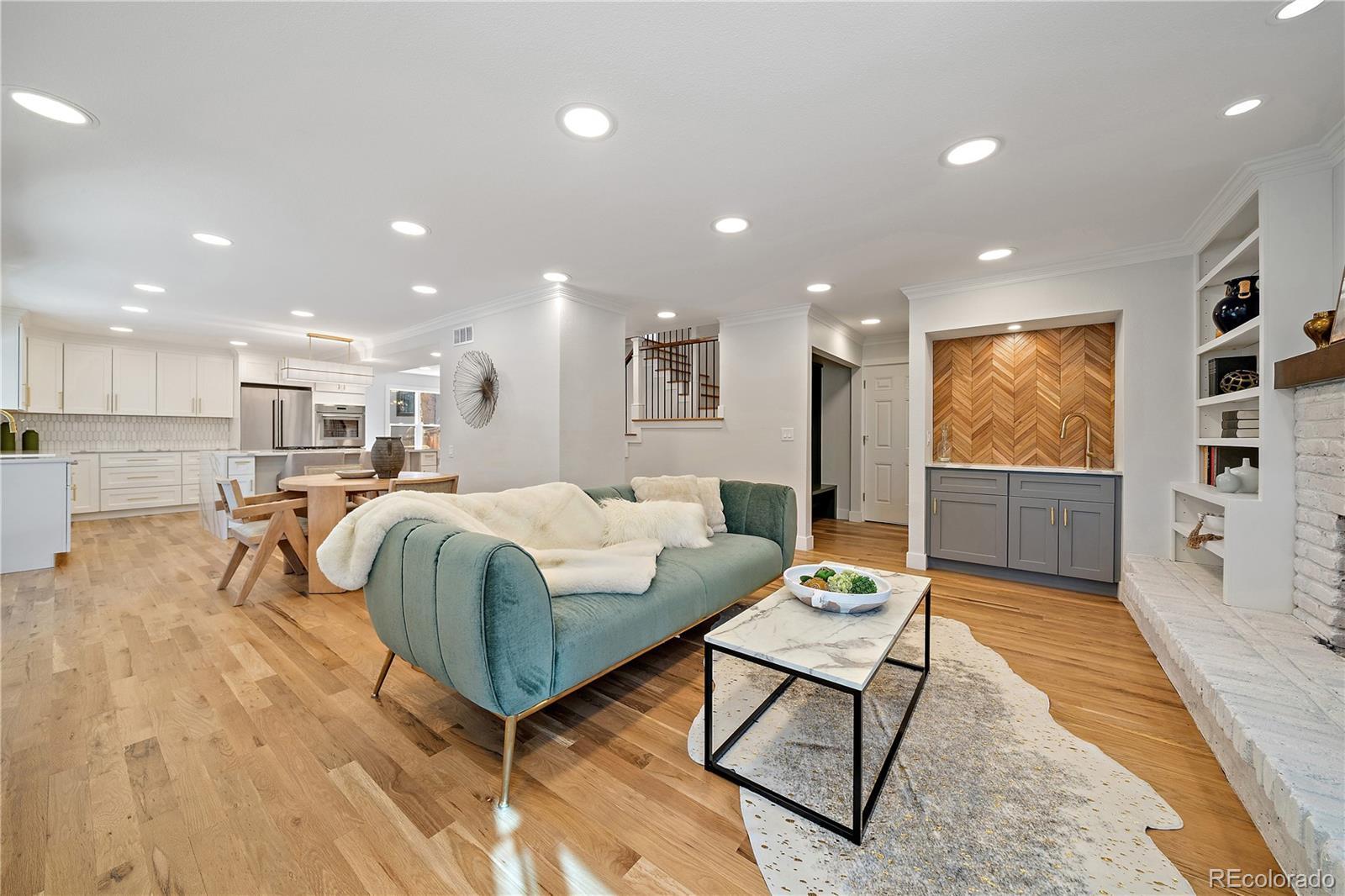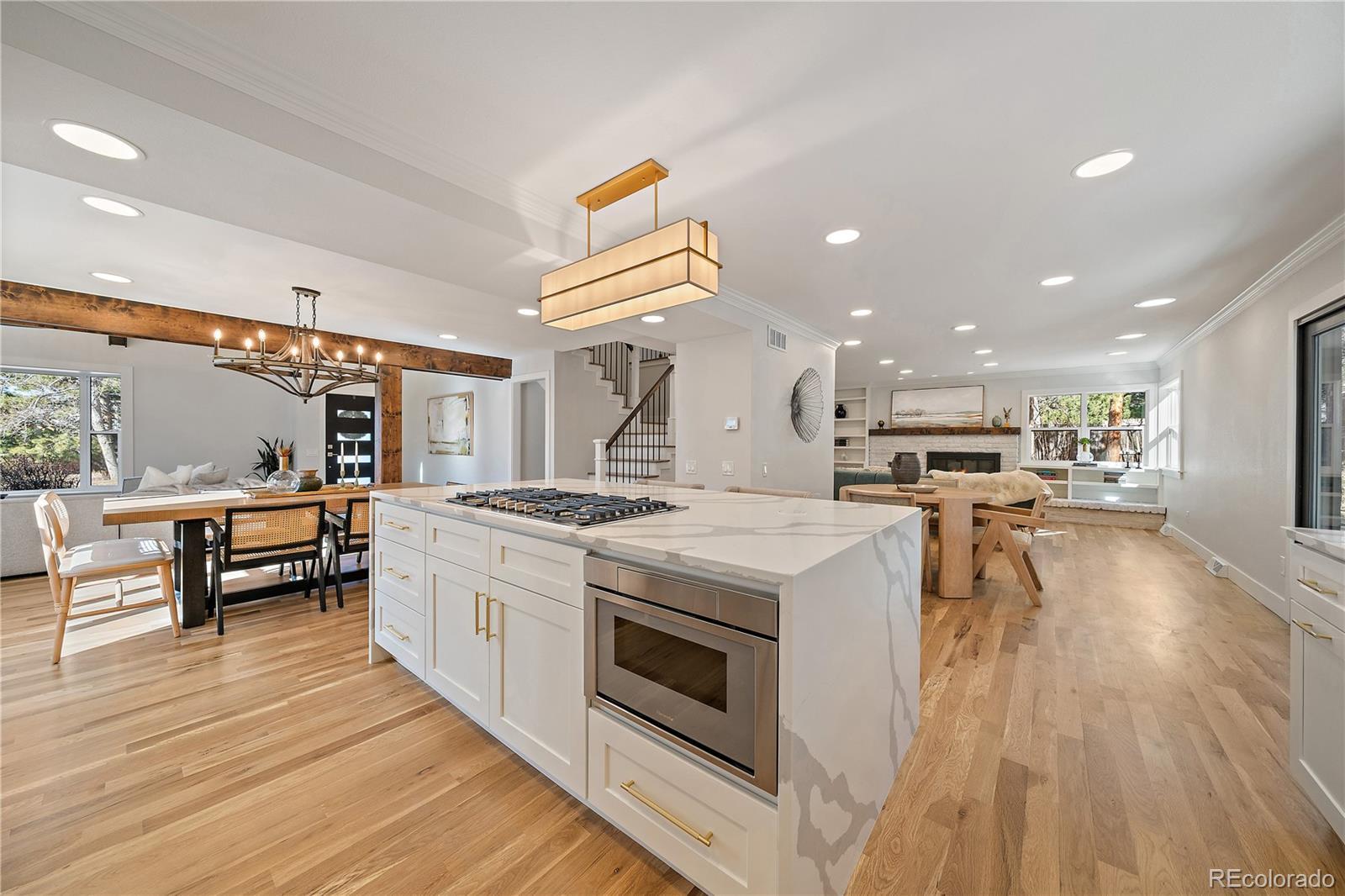 Stunning modern renovation in The Knolls with mountain views. This custom two-story home features an open concept floor plan perfect for entertaining with white oak hardwood floors throughout. Upon entering the home, your eyes will be drawn to the beautiful custom fireplace and beautiful beams. Large Chef’s kitchen with high-end appliances and an over-sized Island open to dining room. Primary suite has a large walk-in closet with custom shelving and en-suite bath with oversized shower with dual rain heads and handhelds. Second level features three additional bedrooms, one includes an en-suite bath, second full bath and laundry with washer/dryer. All new windows. Spacious entertaining patio and a large backyard with all new landscaping and storage shed. The finished basement includes abundant space with a full bath, wet bar and storage. Home is steps away from greenbelt and the Dry Creek Trail, Cherry Knolls Park, neighborhood pool, tennis/pickleball courts and top-rated LPS schools.