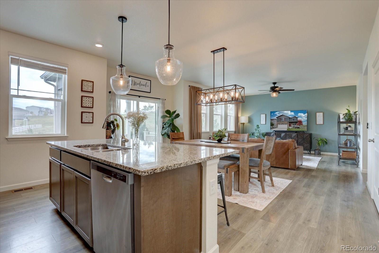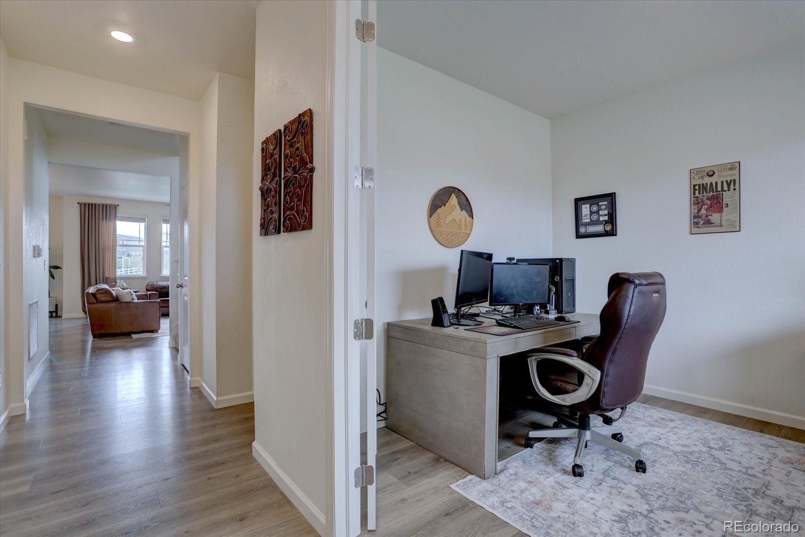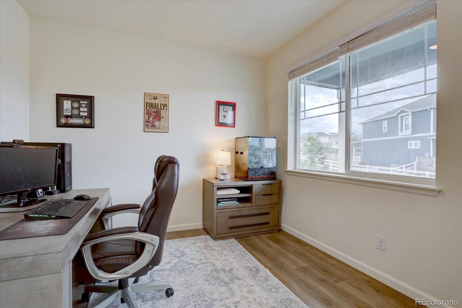 Positioned on a quiet cul-de-sac in Crystal Valley, this home delivers a coveted greenbelt setting, generous natural light, and a floor plan built for modern functionality. The main level thoughtfully unites the living room, dining area, and a sleek kitchen, while a main-floor office supports focused work. Outdoor spaces include a covered front porch and a rear patio oriented to morning light and open views. The upper level offers a multi-use loft, three well-sized secondary bedrooms, and a private primary suite with an en suite bath and walk-in closet. The backyard has been newly finished with a concrete pad and professional landscaping. Enjoy walkable access to the neighborhood rec center with a pool, fitness center, and playground, as well as proximity to local parks, trails, and Castle Rock amenities. Location perks you’ll love: a nearly complete new I-25 interchange is set to streamline trips to Denver and the DTC, with a new Costco and a large King Soopers Marketplace coming soon.* Minutes to Philip S. Miller Park & MAC (incline, zip lines, trails), Rhyolite Regional Park, Gateway Mesa Open Space, Rock Park, and the East Plum Creek Trail. Quick access to downtown Castle Rock restaurants, coffee, and boutiques, plus the Promenade and Outlets at Castle Rock. Weekend wanderers will appreciate nearby Castlewood Canyon State Park. Seller will provide a seller concession at Closing in the amount of Ten Thousand Dollars ($10,000), useable toward Buyer’s allowable closing costs, prepaid items, discount points, and, if permitted by Buyer’s lender, an interest rate buydown.