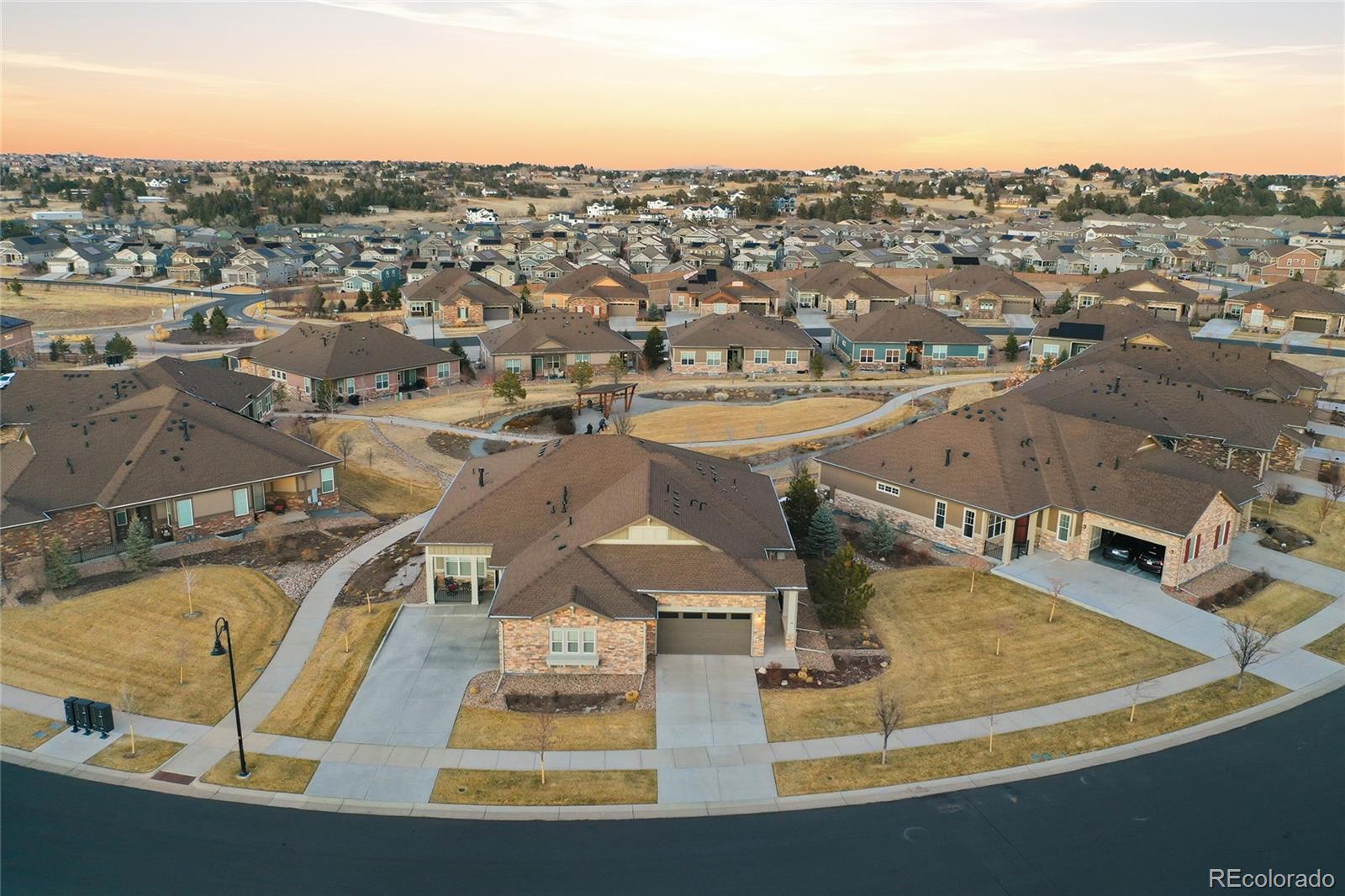 **OPEN HOUSE! Sat 2/7, 1-3**Experience elevated main-level living at the edge of Colorado’s iconic Black Forest! Lovingly maintained by its original owners in coveted Whispering Pines, this ranch-style patio home is made for low-maintenance luxury with custom touches, an open floor plan, and an enviable finished basement. The covered front porch and zero-step entry welcome you, leading into sunlit living spaces with soaring ceilings and generous windows. With a layout designed for entertaining, enjoy quiet evenings unwinding in the living room, or host lively dinners in the adjacent dining area. The eat-in kitchen is perfect for every chef, featuring a spacious island with apron sink, a dedicated pantry, striking rich wood cabinetry with custom drawer pulls, a butler’s pantry, and a barn door connecting to the main-level laundry room. Spend lazy Saturdays in the sprawling primary suite, offering open space views, a ¾ en suite bath with walk in shower, and an oversized walk-in closet with custom built-ins and laundry room access. A second bedroom and nearby full bath complete the main level. Downstairs, the fully finished basement is ideal for guests or multigenerational living. Boasting 9-foot ceilings, built-ins, and a wet bar with a full-sized fridge, the rec room is perfect for game nights, movie marathons, or long weekends with loved ones. The private basement bedroom features a spacious walk-in closet and full bath just steps away. A tucked-away sleeping or reading nook adds a whimsical touch, while a nearby room with built-in storage flexes as an office or craft space. In the backyard, a private covered space with sunshades extend the living area for year-round enjoyment with park views. Beyond the home, miles of trails invite daily walks and sunset strolls, while the resort-style pool and clubhouse are made for sunny afternoons. With snow removal and lawn care included, this is true lock-and-leave living, all set within a serene, master planned community.