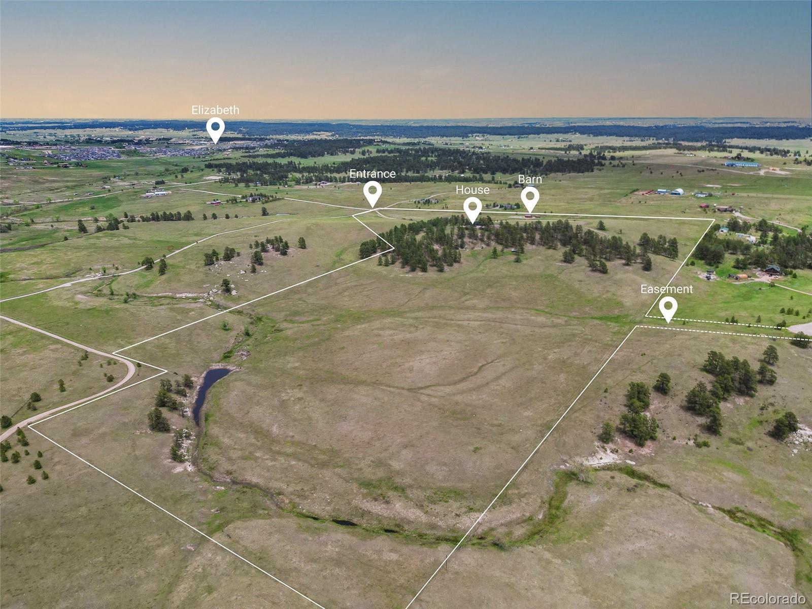 See more at: www.1752PrivateRoad130.com Welcome to Halbrook Ranch—one of the most compelling land offerings in Elbert County. Set on 75 pristine acres just 3.5 miles from the town of Elizabeth, this property showcases classic Colorado beauty with rolling hills, expansive meadows, natural draws, striking rock outcroppings, two seasonal ponds, and miles of unbroken mountain views. This land truly speaks for itself. With no HOA, no covenants, and AG-A zoning, the ranch offers exceptional freedom and versatility—whether you're building a family legacy, creating a weekend retreat, or exploring future development possibilities. At the heart of the acreage sits a well-maintained walk-out ranch-style home, thoughtfully positioned at the top of a hill to capture sunlight, privacy, and panoramic vistas. The home's orientation was intentionally aligned with Pikes Peak—a unique design detail that immediately sets the property apart. Offering nearly 5,100 square feet, the residence is ready for your personal touch and features flexible living options, including a full walk-out basement suite with its own garage, kitchen, living area, bedrooms, and private entrance—ideal for multi-generational living or an exceptional guest retreat. The south section of the property includes independent access via a recorded 60-foot easement through Bluebird Estates, creating a valuable opportunity for an additional homesite, resale potential, or strategic long-term planning. With multiple outbuildings, a permitted domestic/livestock well, and expansive room to roam, this is a rare chance to own a remarkable Colorado ranch with unmatched setting and possibility. Don’t miss this one-of-a-kind offering.