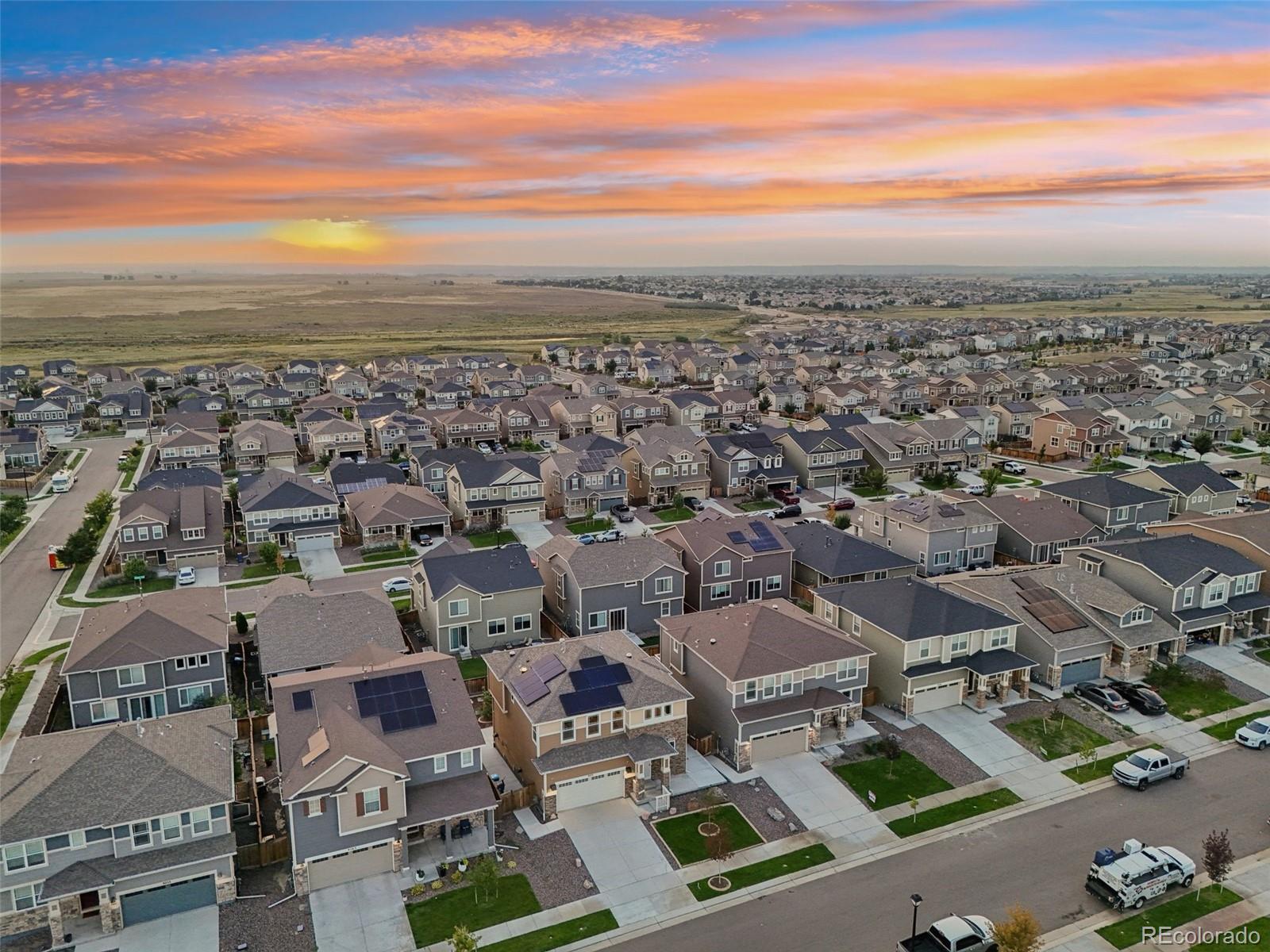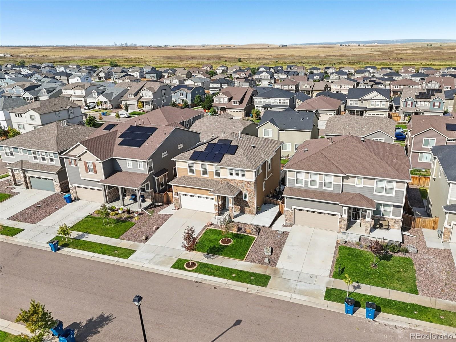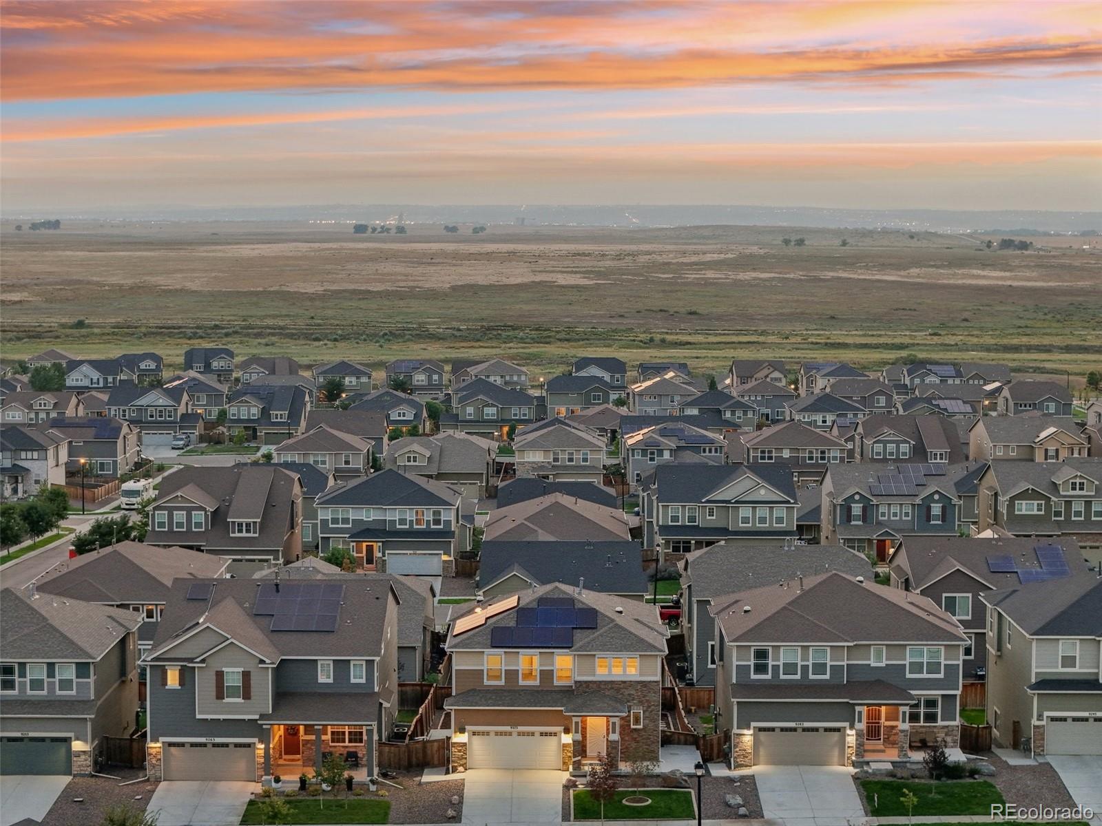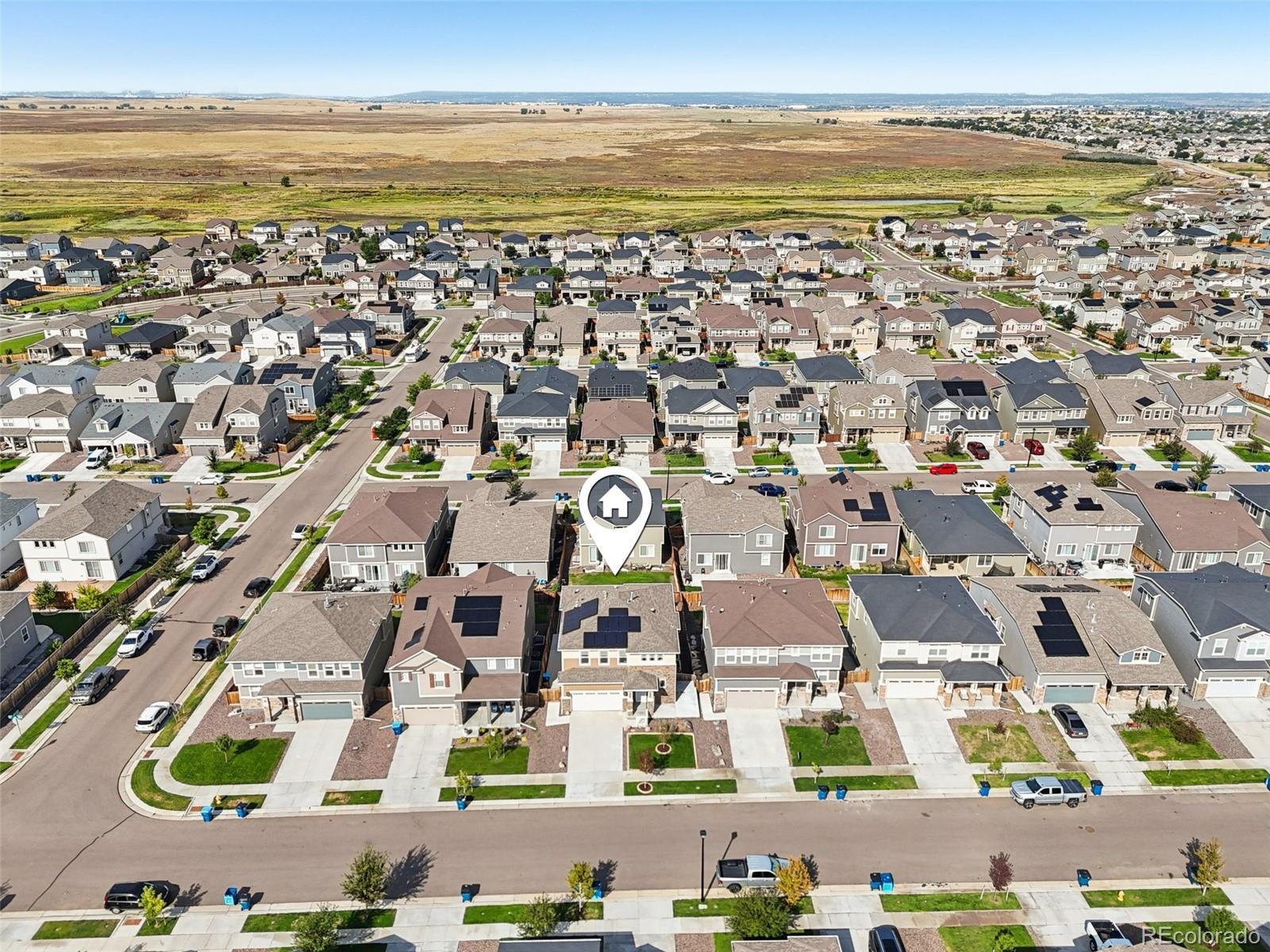 Stunner in Buffalo Highlands! This delightful two story home with a finished basement has been extensively upgraded for the new owner! The main level features a gourmet kitchen with stainless appliances, granite counters, stylish cabinets, large island with ample seating, bullnose corners, separate dining space, great room and patio with views ideal for entertaining. The upper level floor plan is perfect with its large primary suite with mountain views, a spa-like shower and walk in custom closet system. Additionally there are 2 more bedrooms upstairs plus a 5 piece full hallway bathroom, loft and office space that is bright and cheery. The finished garden level basement was fully permitted and offers an additional bright and open flex space complete with TV, gorgeous electric fireplace, microwave and fridge. Complete updates include: fully PAID solar with battery backup, owned security system, solar tube lighting, retractable awning for deck, fully landscaped backyard, gardens, extra trees/shrubs for privacy, tankless water heater and softener, sump pump, additional concrete walkway/patio, decorative stone window well covers, new garage door and opener with its own camera. Inside the home you will appreciate the quality plantation shutters, bullnose corners, custom blinds throughout, some new windows, additional ceiling fans, custom tile work, custom closet systems and more. Enjoy easy access to DIA, Rocky Mountain Wildlife Preserve, downtown Denver & Brighton Crossing. Up and coming with new dining, shopping & entertainment options coming as well as a brand new neighborhood school and multiple community events throughout the year. Every surface of this home has been improved and upgraded, don't miss out on the chance to make this beautiful home yours today!