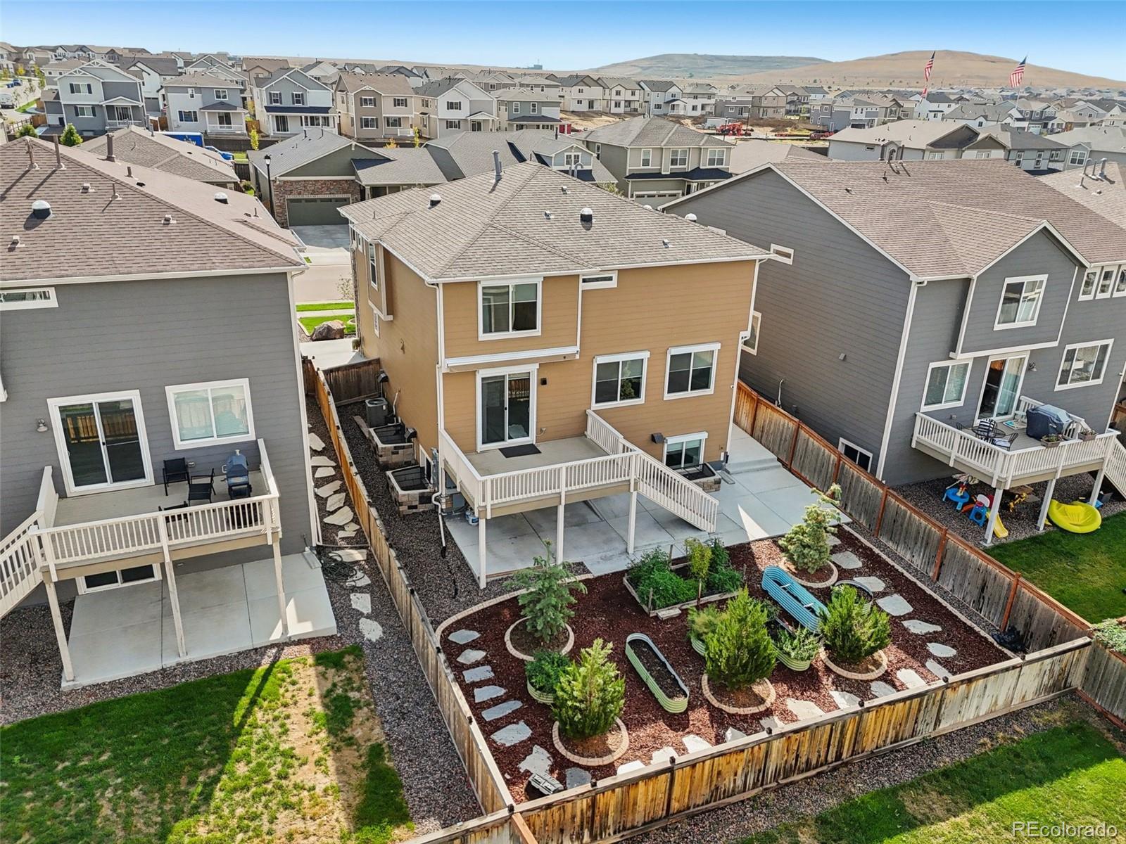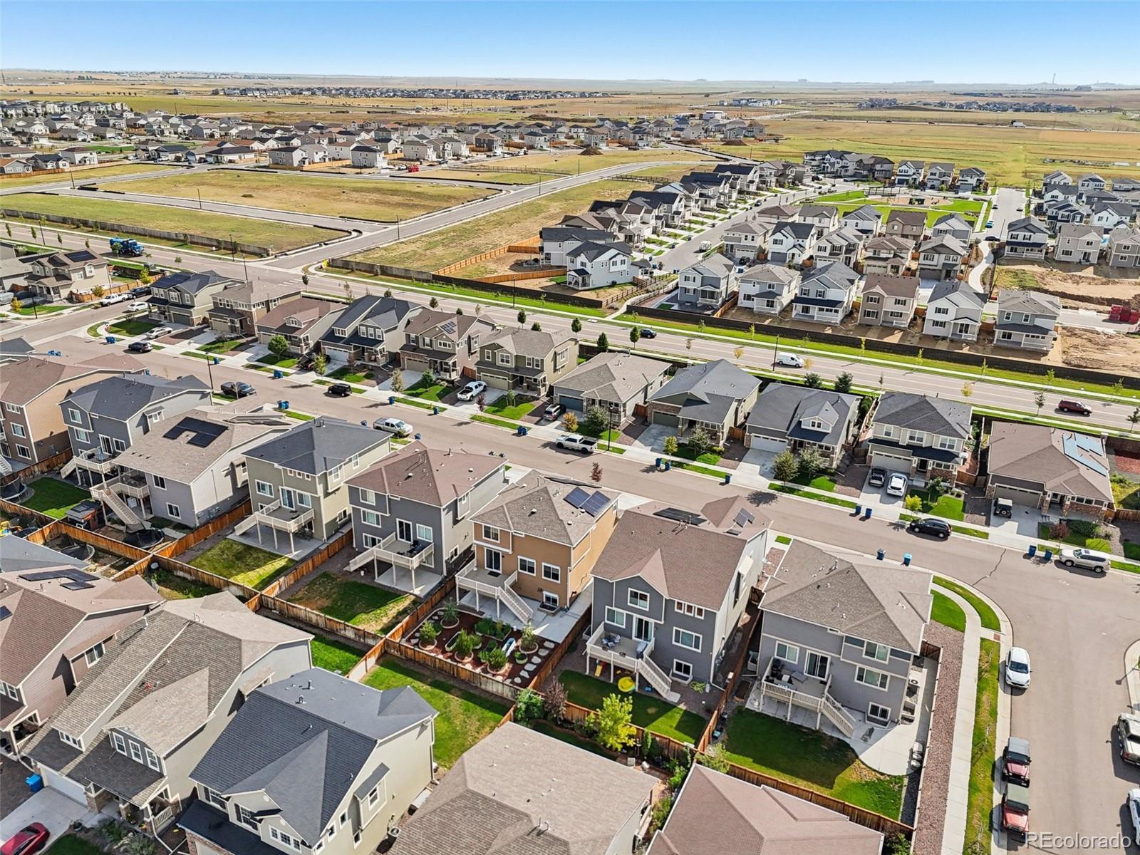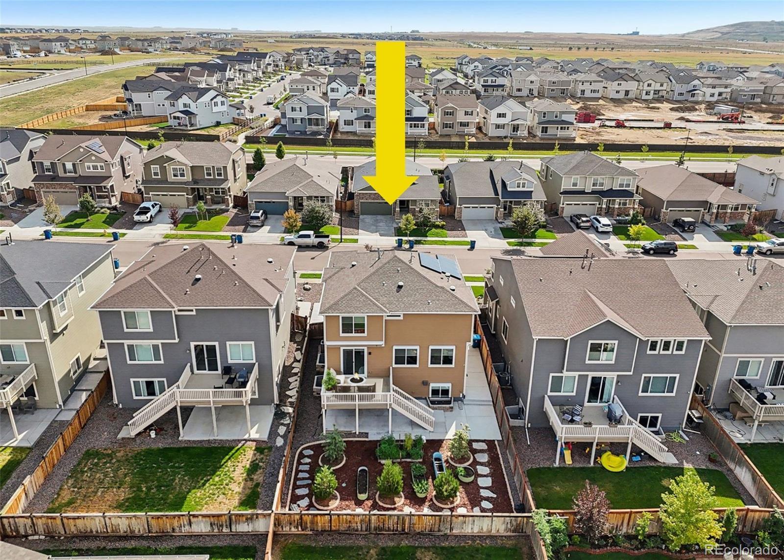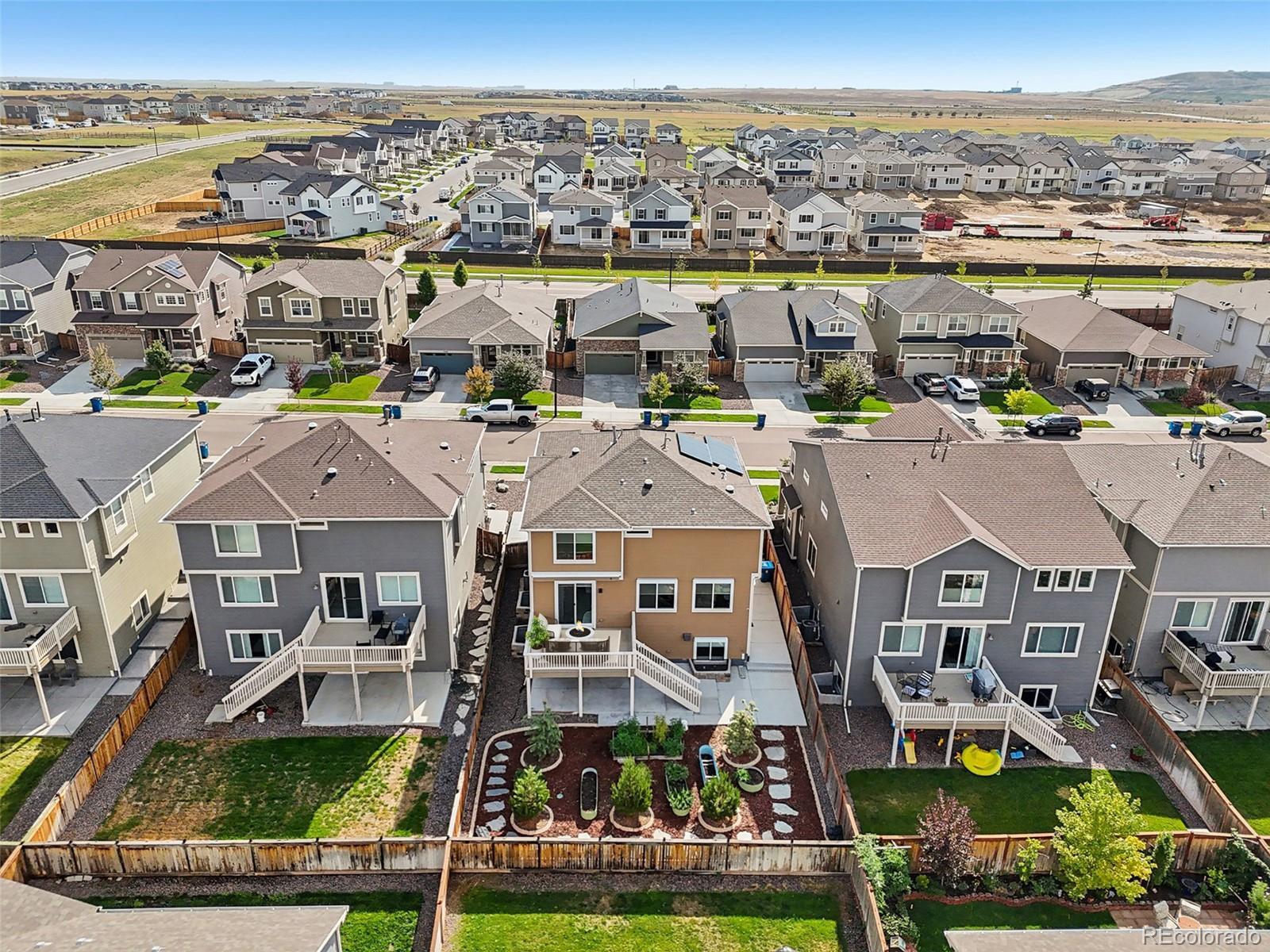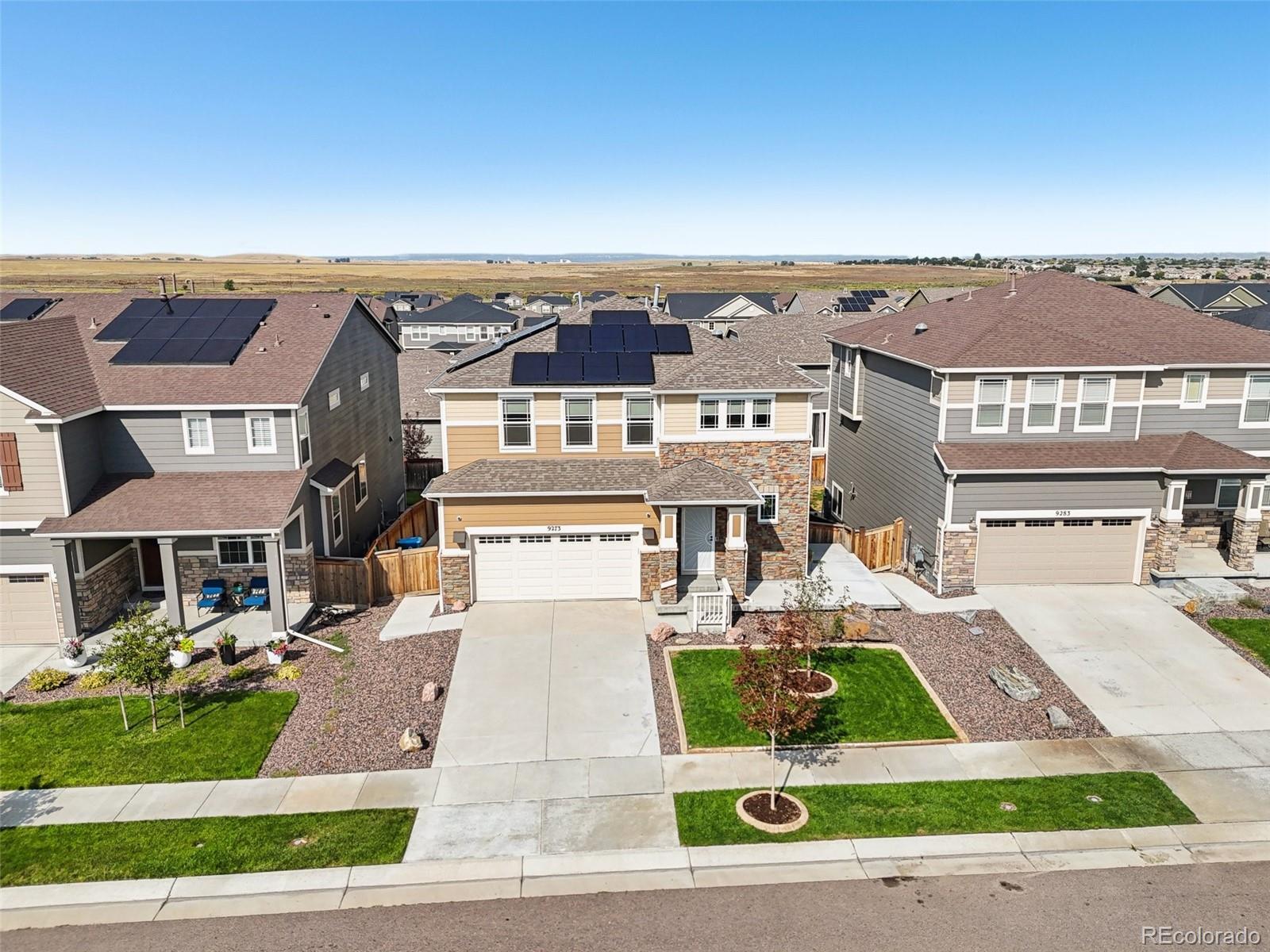 Stunner in Buffalo Highlands! This delightful two story home with a finished basement has been extensively upgraded for the new owner! The main level features a gourmet kitchen with stainless appliances, granite counters, stylish cabinets, large island with ample seating, bullnose corners, separate dining space, great room and patio with views ideal for entertaining. The upper level floor plan is perfect with its large primary suite with mountain views, a spa-like shower and walk in custom closet system. Additionally there are 2 more bedrooms upstairs plus a 5 piece full hallway bathroom, loft and office space that is bright and cheery. The finished garden level basement was fully permitted and offers an additional bright and open flex space complete with TV, gorgeous electric fireplace, microwave and fridge. Complete updates include: fully PAID solar with battery backup, owned security system, solar tube lighting, retractable awning for deck, fully landscaped backyard, gardens, extra trees/shrubs for privacy, tankless water heater and softener, sump pump, additional concrete walkway/patio, decorative stone window well covers, new garage door and opener with its own camera. Inside the home you will appreciate the quality plantation shutters, bullnose corners, custom blinds throughout, some new windows, additional ceiling fans, custom tile work, custom closet systems and more. Enjoy easy access to DIA, Rocky Mountain Wildlife Preserve, downtown Denver & Brighton Crossing. Up and coming with new dining, shopping & entertainment options coming as well as a brand new neighborhood school and multiple community events throughout the year. Every surface of this home has been improved and upgraded, don't miss out on the chance to make this beautiful home yours today!