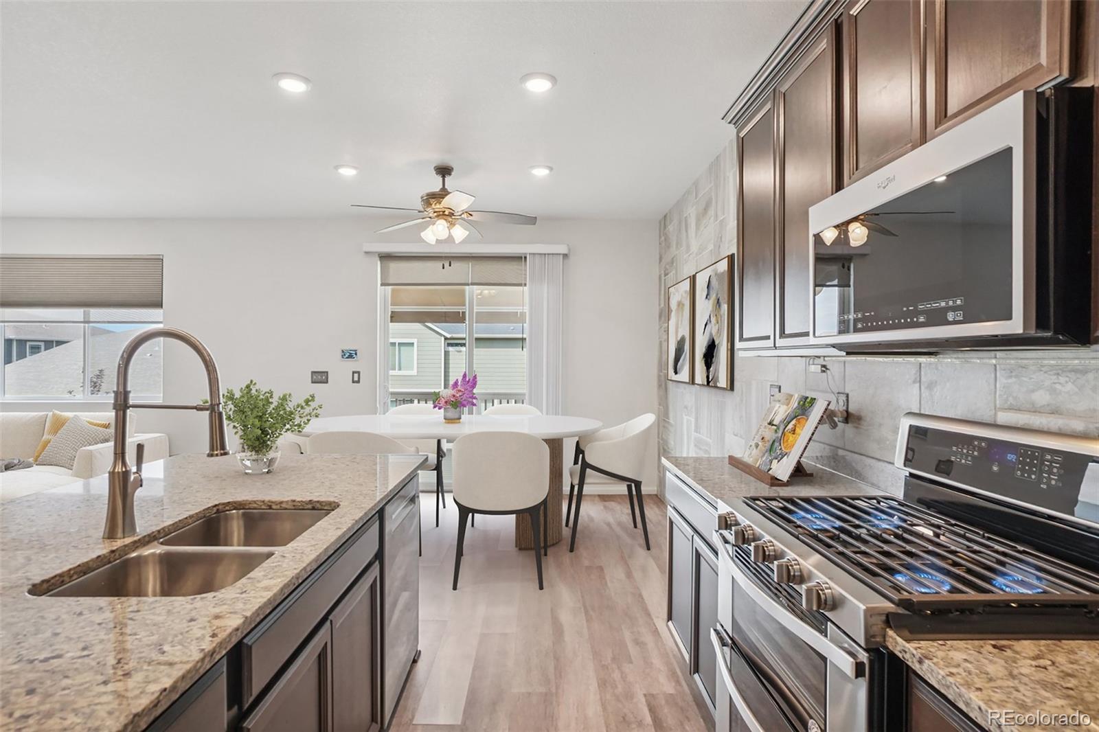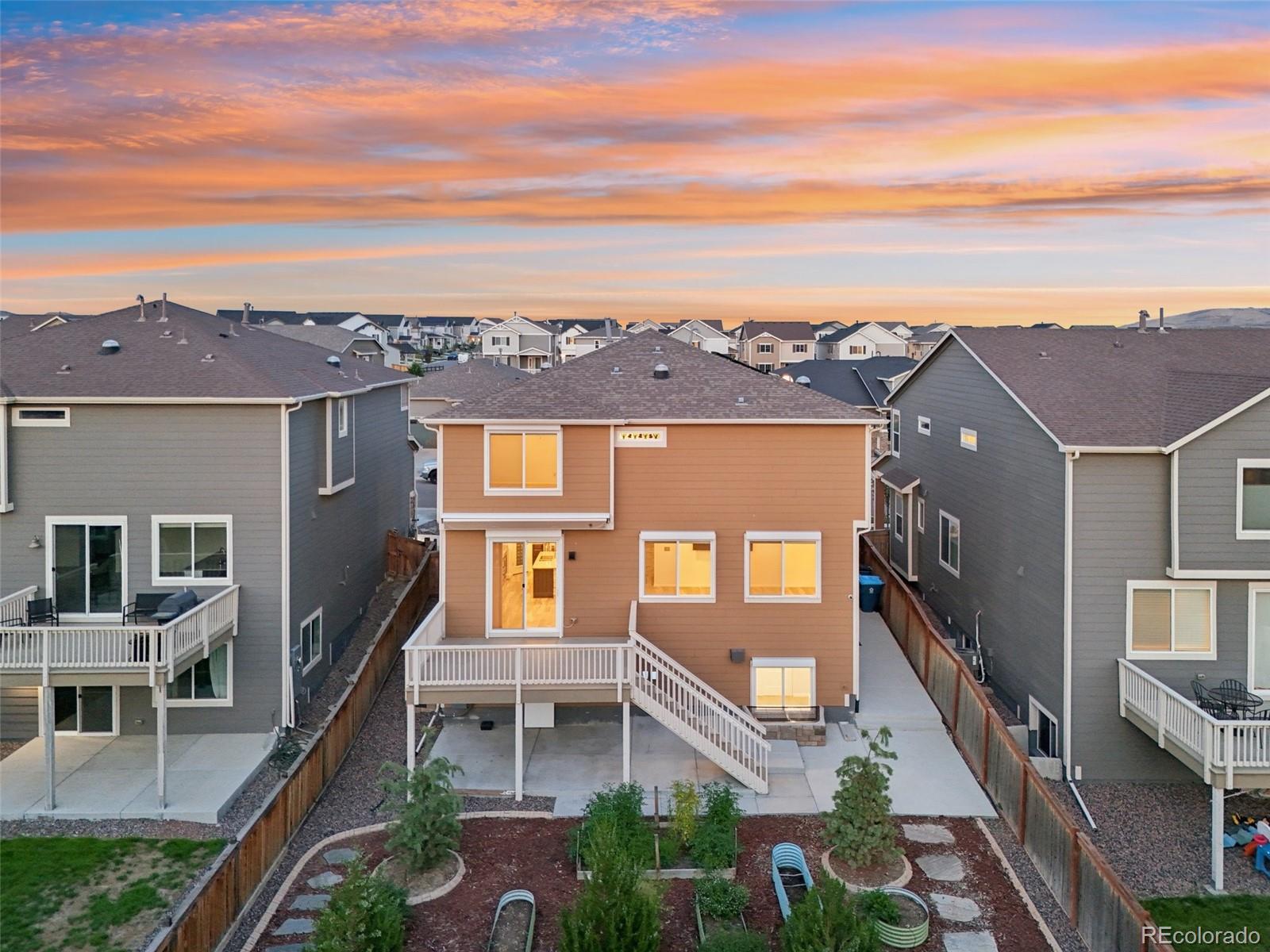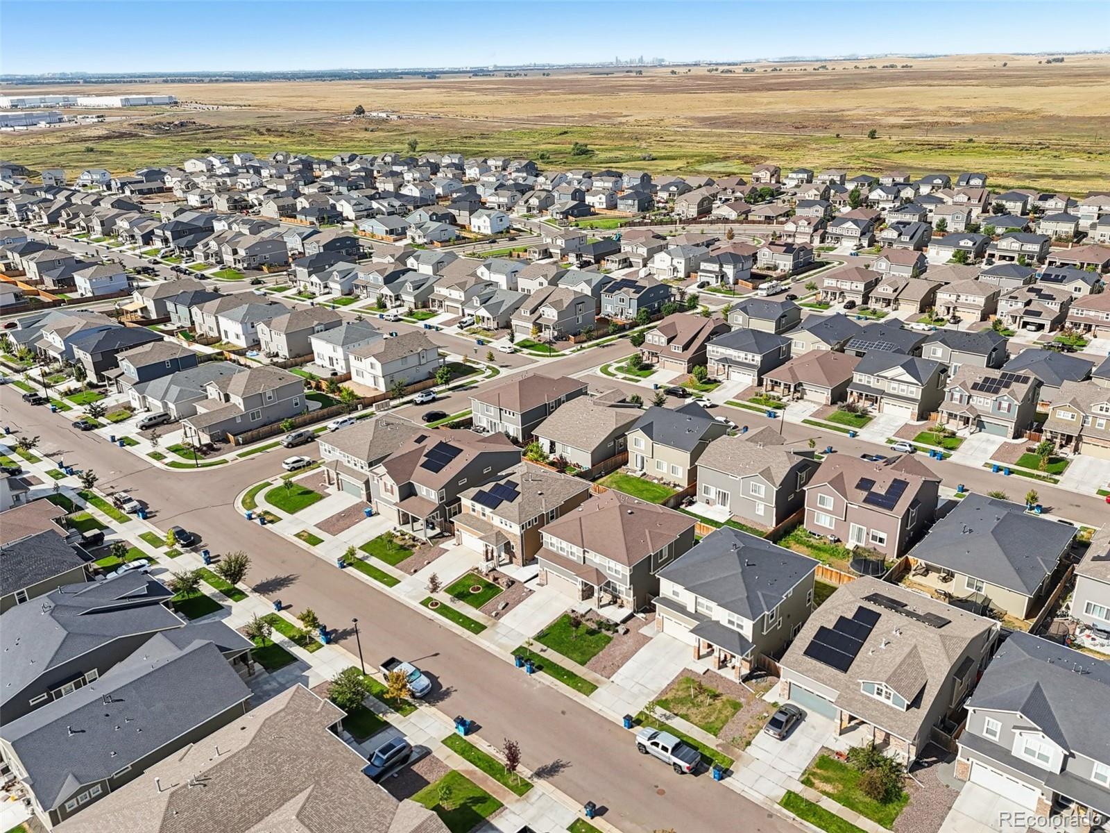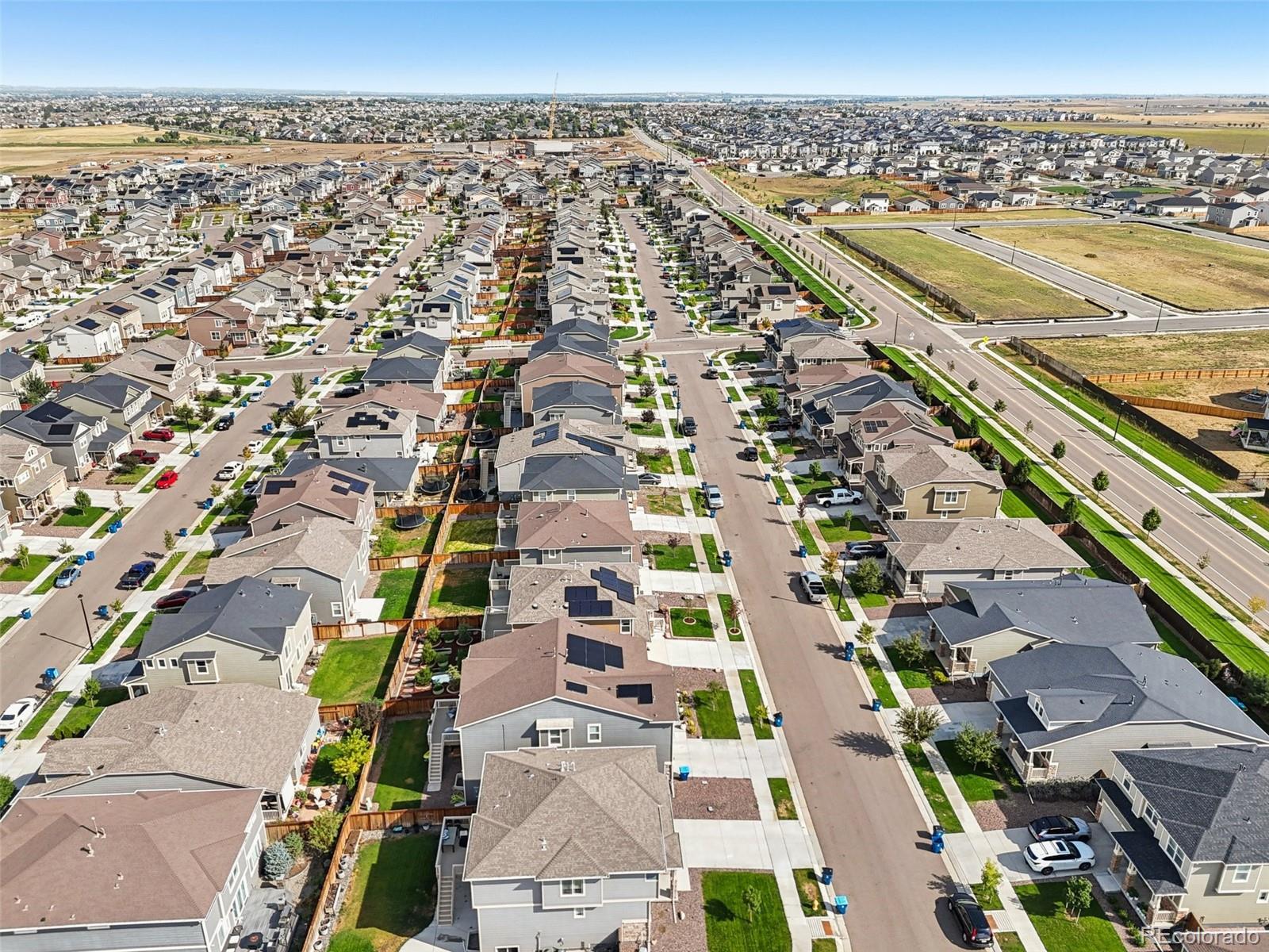 Stunner in Buffalo Highlands! This delightful two story home with a finished basement has been extensively upgraded for the new owner! The main level features a gourmet kitchen with stainless appliances, granite counters, stylish cabinets, large island with ample seating, bullnose corners, separate dining space, great room and patio with views ideal for entertaining. The upper level floor plan is perfect with its large primary suite with mountain views, a spa-like shower and walk in custom closet system. Additionally there are 2 more bedrooms upstairs plus a 5 piece full hallway bathroom, loft and office space that is bright and cheery. The finished garden level basement was fully permitted and offers an additional bright and open flex space complete with TV, gorgeous electric fireplace, microwave and fridge. Complete updates include: fully PAID solar with battery backup, owned security system, solar tube lighting, retractable awning for deck, fully landscaped backyard, gardens, extra trees/shrubs for privacy, tankless water heater and softener, sump pump, additional concrete walkway/patio, decorative stone window well covers, new garage door and opener with its own camera. Inside the home you will appreciate the quality plantation shutters, bullnose corners, custom blinds throughout, some new windows, additional ceiling fans, custom tile work, custom closet systems and more. Enjoy easy access to DIA, Rocky Mountain Wildlife Preserve, downtown Denver & Brighton Crossing. Up and coming with new dining, shopping & entertainment options coming as well as a brand new neighborhood school and multiple community events throughout the year. Every surface of this home has been improved and upgraded, don't miss out on the chance to make this beautiful home yours today!