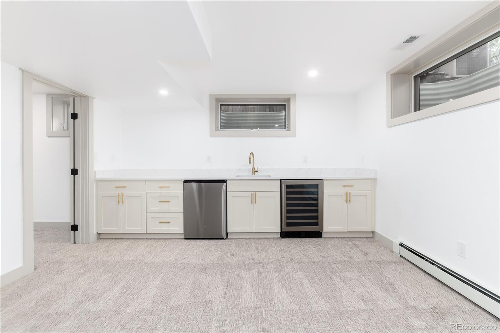 Fully Furnished Lease – Move-In Ready! This property comes completely furnished, offering a turnkey living experience with everything you need from day one. Don’t miss this fully permitted, professionally remodeled home in the heart of the coveted Wellshire neighborhood, just two minutes from award-winning Slavens K-8! Set on a beautifully landscaped lot with mature trees, this bright and spacious ranch combines timeless elegance with modern comfort. The open floor plan features vaulted ceilings, new skylights, and abundant natural light that flows seamlessly throughout the home. Every system is new—including the furnace, A/C, electrical panel, electrical system, roof, sewer line, plumbing, kitchen, bathrooms, and basement, ensuring true move-in readiness. At the heart of the home, the stunning kitchen showcases custom cabinetry, quartz countertops, and high-end appliances. The main-floor primary suite offers a walk-in closet and a luxurious en-suite bath with dual vanities and a custom glass shower. The dining room opens directly to the backyard, creating effortless indoor-outdoor living with access to the covered patio and private yard—perfect for entertaining or relaxing. Two additional bedrooms, a remodeled full bath, and a powder room complete the main level. The fully finished basement expands the living space with a large recreation room featuring egress windows and a wet bar—ideal for movie nights or gatherings. Two conforming bedrooms with egress windows, a beautifully updated full bath, and a dedicated laundry room with a new washer, dryer, and utility sink complete the lower level. Enjoy quiet Colorado evenings on the covered patio surrounded by fresh landscaping and a fully fenced yard. A two-car garage with an EV charger adds both convenience and storage. Located near Wellshire Golf Course, the High Line Canal, Cherry Creek, and the Denver Tech Center, this one-of-a-kind home offers design-forward living in one of Denver’s most desirable neighborhoods.