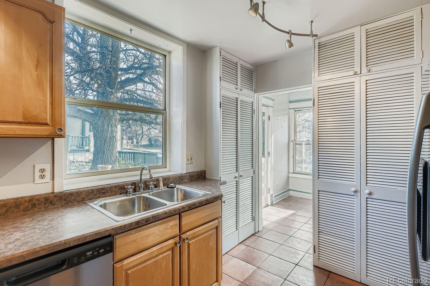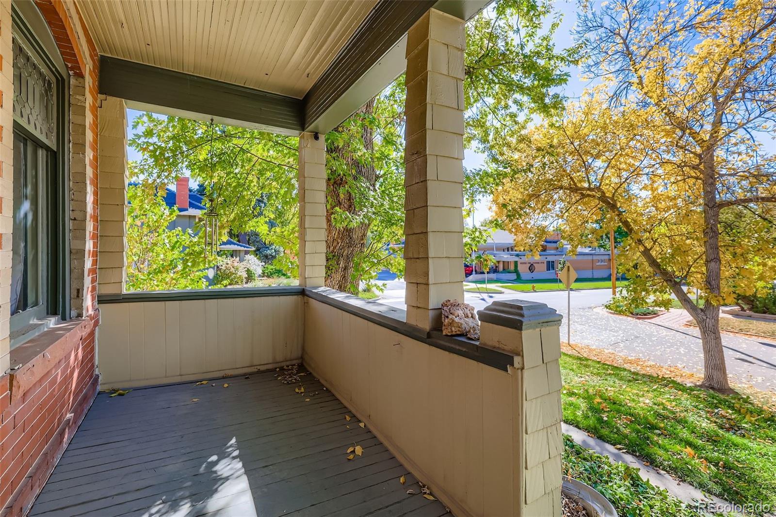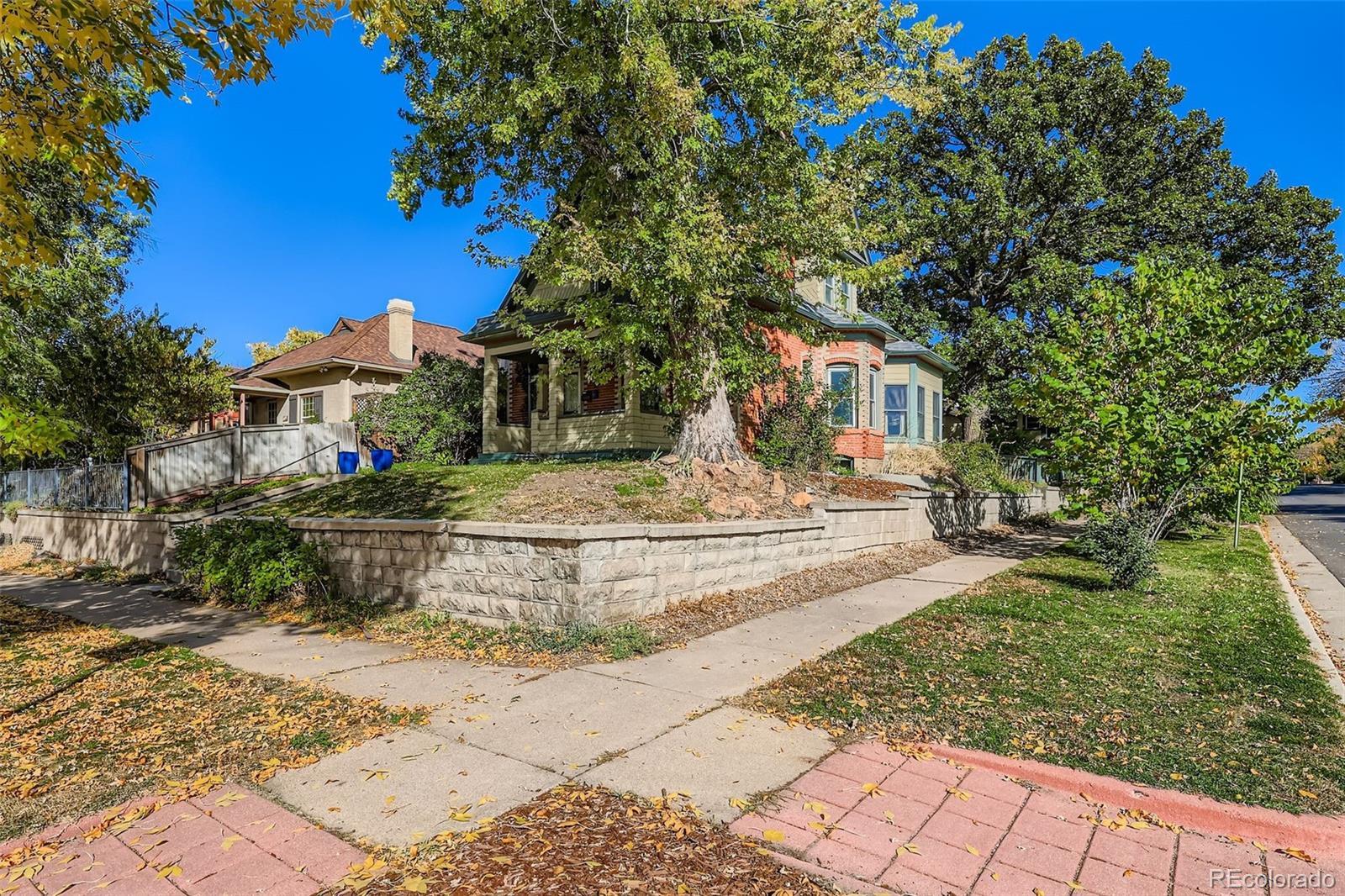 Perched at the highest point of Platt Park, this stately Victorian overlooks one of Denver’s most charming neighborhoods. Built at the turn of the century, the home is rich with character and special details, including a light-filled sunroom, a brick surrounded bay window with seating, a hidden second-floor deck, and a picturesque front porch—plus so much more! The main floor features beautifully preserved wood floors, original wood and tile fireplace, and a warmth that carries throughout the space. The living and dining rooms flow together to create a large, open area with fireplace and tall ceilings, ideal for both everyday living and entertaining. Just off this space is one option for a main-floor primary bedroom, complete with a updated en-suite full bathroom. The updated kitchen with new appliances overlooks the lovely backyard and patio. On the south side of the home, just off the kitchen, is the sunroom, filled with an abundance of windows—perfect as a breakfast nook, reading room, or cozy home office. Upstairs are two bedrooms. The front bedroom enjoys wonderful seasonal mountain views, while the generously sized rear bedroom could also serve as a primary. Off this room is a bonus room with large closets and the hidden deck, which overlooks the surrounding neighborhood. A fully updated bathroom completes this level. The lower level includes an additional finished room, laundry area, and mechanical room. The large yard offers privacy thanks to its elevated position above the street and is anchored by a majestic mature oak tree that provides shade and character. Sprinkler systems in front, back and side. At the back of the property, above the garage, is a 340-square-foot studio featuring a wood stove, electric heater and evaporative cooler—ideal for a creative space, guest retreat, or office. The home has been well maintained over the years; however, the seller intends to sell the property in as-is condition, which is reflected in the pricing.