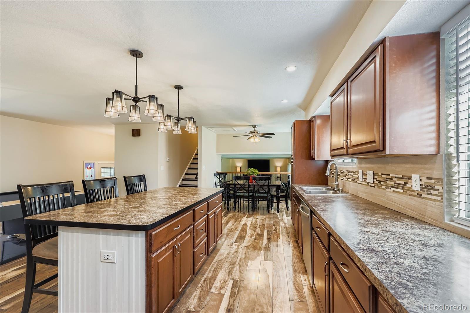 Welcome to this beautifully updated home tucked away on a quiet cul-de-sac in one of Littleton’s most desirable covenant-free neighborhoods with no HOA. Bring your RV, there’s parking for that too! The home features a brand-new roof and gutter system has been installed. A new radon mitigation system, and a newer HVAC for peace of mind. Inside, the spacious primary suite boasts stunning bamboo floors and an updated ensuite bathroom. Secondary bedrooms feature wainscoting, ceiling fans, and bamboo flooring, and share a gorgeous full bathroom remodel. The updated kitchen is a true highlight with recessed lighting, tile backsplash, stainless steel appliances, a large island with seating, and an adjoining dining area. The open-concept main floor living area with beautiful hardwood floors is perfect for entertaining, while the lower-level family room with cozy gas fireplace provides access to the covered back patio. Outdoor living is equally impressive with a .21-acre lot featuring a shed, 2 story with playhouse with slide and monkey bars. A gardener’s delight with raised garden beds ready for your favorite herbs and vegetables. The covered patio is perfect for dining al fresco, and the newer driveway and front walk lead guests to the charming brick-front exterior. The location is second to none—within the highly rated Littleton Public Schools, only 0.4 miles to Puma Park and Lee Gulch Trail, 1 mile to King Soopers and plentiful dining spots. Under 2 miles to the Streets of Southglenn outdoor mall and AdventHealth Littleton Hospital! Mineral Light Rail Station is just 4 miles away for Denver commuting, and just 5 miles to Downtown Littleton with its shopping, dining, and community events. This home truly combines comfort, convenience, updates, and an unbeatable location—ready for its next chapter!